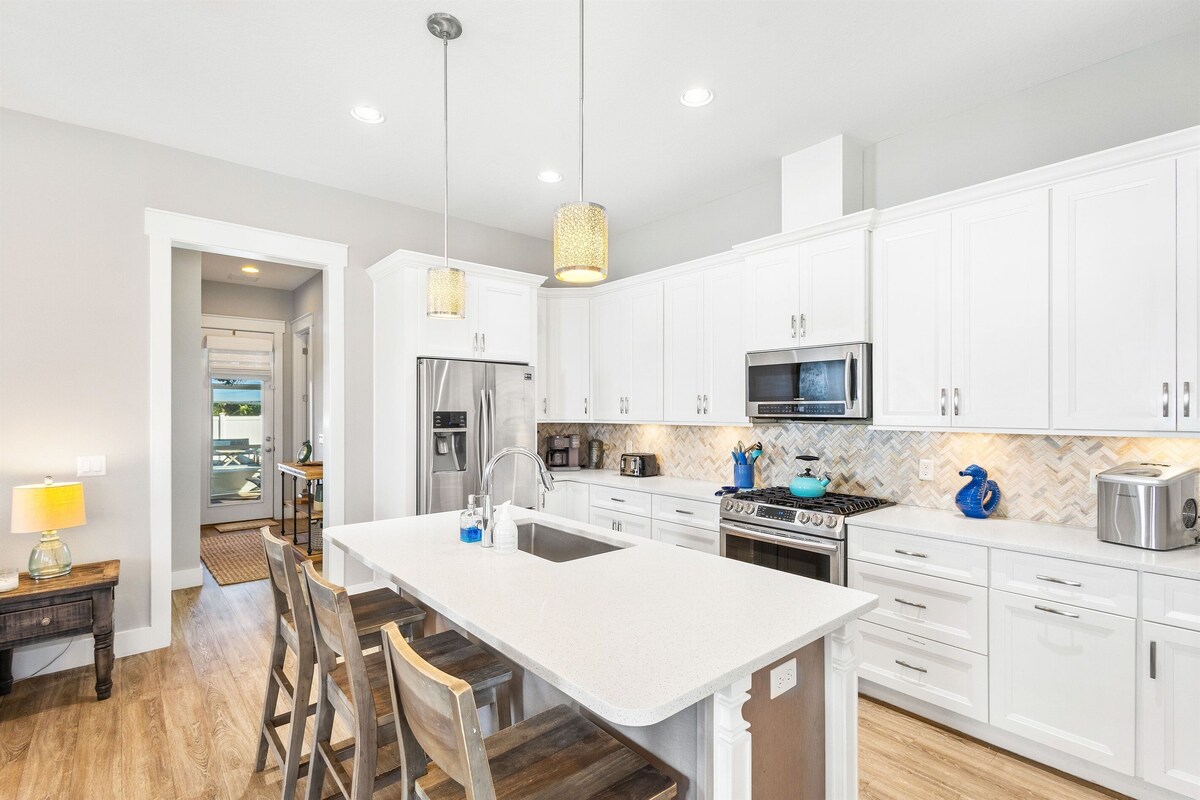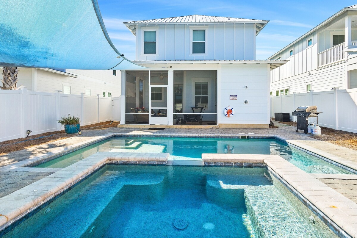 Welcome to 231 Sands St. – A Luxurious Beachside Retreat in Panama City Beach Warren Beach Rentals is thrilled to present 231 Sands St., a stunning 4-bedroom, 3.5-bathroom luxury home just steps away from the beautiful beaches of Panama City Beach. This gorgeous property offers a private pool and spa, creating the perfect atmosphere for relaxation and rejuvenation in an unbeatable location. Key Features of This Exclusive Home: Private Heated Saltwater Pool & Spillover Jacuzzi – Relax in your very own oasis with a sparkling pool and a soothing spa (additional charge for heating). Poolside Lounge Area – A shaded retreat perfect for unwinding and enjoying the serene surroundings. Open, Bright Interiors – Expansive 2,277 sq. ft. space featuring high ceilings, clean lines, and sophisticated finishes that bring comfort and style to every corner. Gourmet Kitchen – Equipped with sleek quartz countertops, stainless steel appliances, a gas cooktop, and all the kitchen essentials needed to prepare delicious meals. Two King Master Suites – Each suite boasts a luxurious king-sized bed, private ensuite bathroom with walk-in tiled showers, tray ceilings, and stylish design details for a truly restful experience. Bonus Loft Area – A cozy nook with children's games and a comfortable daybed, opening onto a breezy covered porch for peaceful moments. Modern Amenities – Stay cool with dual-zone air conditioning, enjoy endless hot water with a tankless gas water heater, and rest assured with hurricane-rated windows and doors for added safety. Prime Location – Ideally positioned just a short stroll to the beach, with picturesque beach views visible right from the driveway. Situated between Pier Park’s shopping and entertainment and the upscale dining and boutiques along Scenic Hwy 30A, offering a seamless blend of convenience, luxury, and laid-back beachside living. Whether you’re planning a family vacation, a romantic getaway, or a relaxing retreat, 231 Sands St. is the perfect home base for your coastal escape. Don’t miss the chance to experience the best of Panama City Beach in this exceptional property. Book your stay today and make lasting memories at 231 Sands St.! PETS (DOGS ONLY) ARE CONSIDERED... ONCE APPROVED, A $295.00 PLUS TAX WILL APPLY.. Our prices include all fees. No hidden fees.