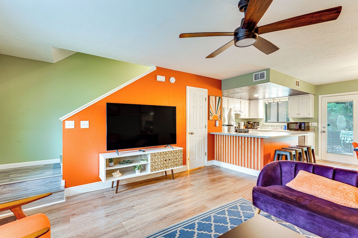 Gulf Highlands Beach Resort | Sunset Strolls on the Beach | On-Site Restaurants & Bars Experience Florida's sun-kissed charm at this 2-bedroom, 1.5-bath vacation rental in the Gulf Highlands Beach Resort of Panama City Beach. Unwind by the pools after visiting Ripley's Believe It Or Not! or indulging in a seafood feast at a local eatery. There's always a supply of fun from the tennis courts to the beach! At day's end, gather on the patio or watch the sunset from the balcony. -- THE PROPERTY -- VRC-53446 SLEEPING ARRANGEMENTS - Bedroom 1: 1 king bed - Bedroom 2: 1 full bunk bed w/ twin trundle - Additional Sleeping: 1 twin rollaway bed GULF HIGHLANDS BEACH RESORT - Private community beach access - 11 outdoor pools (heated & unheated) - 5 tennis courts, shuffleboard - 18-hole miniature golf course, putting green - Fitness center - Walking paths, playground - Gated community TOWNHOME FEATURES - Private balcony & patio w/ dining table - Charcoal grill - Smart TVs - Dining table & breakfast bar - Board games KITCHEN - Stove/oven, refrigerator, dishwasher - Microwave, toaster - Drip coffee maker & Keurig coffee maker (coffee provided) - Cooking basics, spices - Dishware/flatware - Trash bags & paper towels GENERAL - Free WiFi (laptop friendly) - Central A/C & heating, ceiling fans - Linens/towels, complimentary toiletries - Washer & dryer, iron/board, hair dryer - Keyless entry FAQ - 2 exterior security cameras (facing out) - Pet fee (paid pre-trip) ACCESSIBILITY - 2-story townhome, 1 step to enter PARKING - Designated parking spaces (2 vehicles) - Trailer/RV/boat/jet ski parking prohibited on-site -- THE LOCATION -- - Resort-style complex w/ on-site beach access & proximity to shopping & dining - 0.2 miles to Panama City Beach Public Beach Access - 1 mile to Ripley's Believe It or Not! - 6 miles to St. Andrew State Park Pier - 11 miles to Science & Discovery Center of Northwest Florida - 15 miles to Rosemary Beach - 18 miles to Northwest Florida Beaches Int'l Airport -- REST EASY WITH US -- Evolve makes it easy to find and book properties you’ll never want to leave. You can relax knowing that our properties will always be ready for you and that we’ll answer the phone 24/7. Even better, if anything is off about your stay, we’ll make it right. You can count on our homes and our people to make you feel welcome — because we know what vacation means to you. -- POLICIES -- - No smoking - Pet friendly w/ $250 fee (+ fees & taxes) - No events, parties, or large gatherings - Must be at least 25 years old to book - Additional fees and taxes may apply - Photo ID may be required upon check-in ADDITIONAL INFORMATION - This 2-story townhome requires 1 step to enter; additional stairs are required to access the bedrooms and full bathroom on the 2nd floor - Your safety matters. This property features 2 exterior security cameras: 1 camera is located on the back patio facing out, and there is a Ring doorbell device with an exterior security camera facing the front outdoor entry. The cameras are outward facing and do not look into interior spaces. The cameras record video and sound when activated by motion Our prices include all fees. No hidden fees.