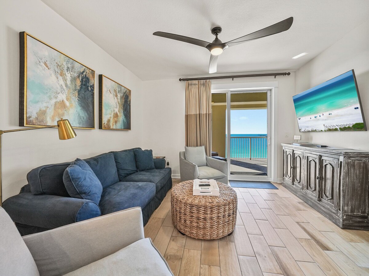 Grand Panama 1307 – Gulf-Front Elegance Awaits at “Royal Retreat” Welcome to Grand Panama 1307, Royal Retreat is a stunning, newly remodeled Gulf-front condo nestled in the heart of Panama City Beach. Presented by Warren Beach Rentals, this luxurious retreat offers breathtaking, panoramic views of the emerald waters and sugar-white sands from its 13th-floor perch in the prestigious Grand Panama Beach Resort. A truly “Royal Retreat” even includes VIP beach service in season, with 2 chairs and umbrella set up daily from March 15-October a $500 weekly value, FREE! This thoughtfully designed 2-bedroom, 2-bath condo blends modern style with ultimate comfort, creating the perfect home base for your beach getaway. Grand Panama 1307 boasts: Gulf-Front King Master Suite: Wake up to the soothing sounds of the waves in your private oasis, featuring balcony access, an ensuite bathroom, and a luxury mattress with adjustable base. Queen Guest Bedroom: A cozy space for family or friends with convenient access to the second bathroom and a luxury mattress for guests. Bunk Alcove: Twin over Full bunks tucked away for the kids or extra guests. Ample sleeping accommodations for up to 7guests. Upscale Amenities & Thoughtful Touches A fully equipped kitchen, stocked with a coffee maker, blender, toaster, and everything needed to prepare delicious meals. High-speed WiFi and flat-screen TVs for staying connected or enjoying movie nights. A spacious Gulf-front balcony, perfect for sipping your morning coffee or sharing a sunset dinner. Resort-Style Living in Paradise The Grand Panama Beach Resort is known for its outstanding amenities and unbeatable location, including: A sparkling beachfront pool and a relaxing hot tub with direct views of the Gulf. Convenient access to local attractions, restaurants, and entertainment, all within walking distance. A well-maintained property with secure parking and 24/7 guest services. Pets (dog only) considered up to 25 lbs with the exception of emotional support pets. There is a $225 plus tax additional pet cost per dog and the pet must be registered in advance through the HOA. Grand Panama is the ONLY pet friendly modern condo on the gulf. Grand Panama HOA additional costs: The resort cost is 55.00 The resort cost includes 1 parking pass and wristbands for everyone in your reservation 13 and older. Wristband replacement is 10.00 Motorcycle parking is 55.00. Trailor Parking is 55.00(only during bike week). An additional parking pass can be purchased for 35.00 during registration. Only two parking passes are allowed per unit. Guests bringing a pet to a Pet Friendly unit must register the pet in guest registration system. Pet Sleeves are 25.00 per sleeve. The Warren Beach Rentals Advantage: Warren Beach Rentals is a LOCAL, award winning and privately owned property management company that specializes in high-end, luxury beach rentals. We hand-select each and every property and we spend lavishly to make sure the property you rent from us is top-notch and in perfect working order. We are local, everyone knows this area and can answer your questions and help you plan your vacation! Guests love the special touches we provide like keyless check-in which means you go straight to your property with no waiting or lines. We continuously monitor and inspect our properties prior to your arrival to ensure the property looks exactly like it does in the pictures. We use fresh, high-end linens with high thread count sheets, plush towels and as well as high-end starter supplies. Most importantly, we are here for you 24/7 throughout your entire stay to make sure you have the best vacation ever! Important Rental Policies Guests must be 25 years or older to reserve. No high school, college, or party groups are allowed ie \ . Maximum occupancy must be adhered to at all times. This is a non-smoking/vaping property. Whether you're seeking a tranquil escape or an adventure-filled getaway, Grand Panama 1307 offers the perfect blend of luxury, convenience, and Gulf-front beauty. Book your stay today and experience the best of Panama City Beach! Our prices include all fees. No hidden fees.