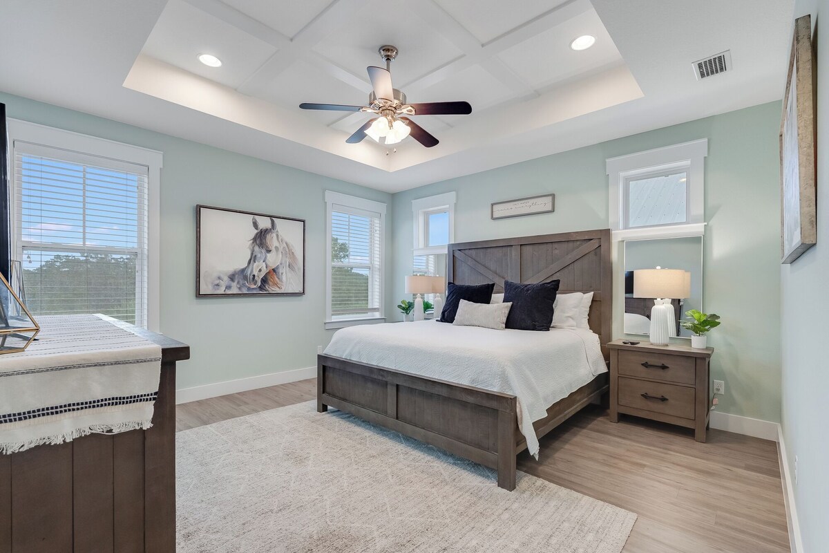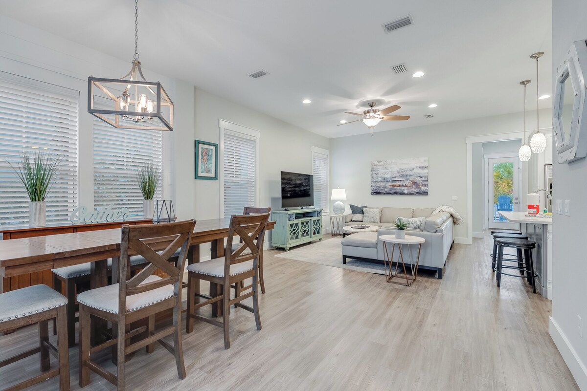Welcome to Coastal Sands located at 219 Sands Street, a stunning two-story beach home located just a block from the pristine shores of Panama City Beach. This spacious retreat is designed for the perfect family vacation, accommodating up to 12 guests with its four beautifully appointed bedrooms and 3.5 bathrooms. Step inside to discover a warm and inviting ambiance, where modern comforts meet coastal charm. The open-concept living area is perfect for gathering with loved ones, featuring ample seating and large windows that fill the space with natural light. The fully equipped kitchen boasts modern appliances and plenty of counter space, making meal preparation a breeze. Outside, enjoy your own private oasis with a sparkling pool, the pool can be heated for a nominal additional fee, ideal for cooling off after a day at the beach. The outdoor space is perfect for sunbathing or enjoying a family barbecue, creating unforgettable memories under the Florida sun. This home is not just about comfort; it also offers a range of amenities to enhance your stay. Stay connected with high-speed internet, and enjoy the convenience of in-home laundry facilities. The back door has a pool alarm to ensure small kids can't access the backyard without notification with the alarm sounding. Located near popular attractions, you'll find plenty to explore, from local dining and shopping to water sports and outdoor activities. Whether you're lounging by the pool, taking a short stroll to the beach, or discovering the vibrant local scene, 219 Sands Street is the perfect base for your vacation. Don't miss out on this incredible beach getaway—book your stay at 219 Sands Street today and create lasting memories with your family and friends! Parking for up to 4 small cars or 2-3 larger vehicles. We manage the house right next door also so your big family or group can rent two houses side by side! INITIAL SUPPLIES - UPON ARRIVAL RentMyBeachPlace stocks a few essential items for you to utilize until you can get to the grocery store. Initial Supplies include: Dishwasher soap, small washing machine powder, each bathroom has amenities (like hotel but NOT restocked) shampoo, conditioner, soap bar and body wash. One roll of toilet paper in each bathroom & one paper towel roll in the kitchen. All bed linens & towels are provided. We encourage guests to bring beach towels for use at the pool and beach. Property allows up to two small dogs (20 lbs or less) per stay with a $150 per dog, non-refundable dog fee. The dog fee does not cover any damage a dog causes or additional pest cleanup fees resulting from a dog. Dog owners affirm that their dog is in good health and current on all vaccinations Our prices include all fees. No hidden fees.