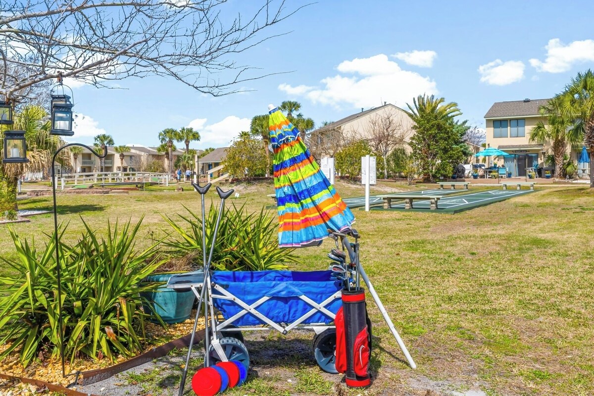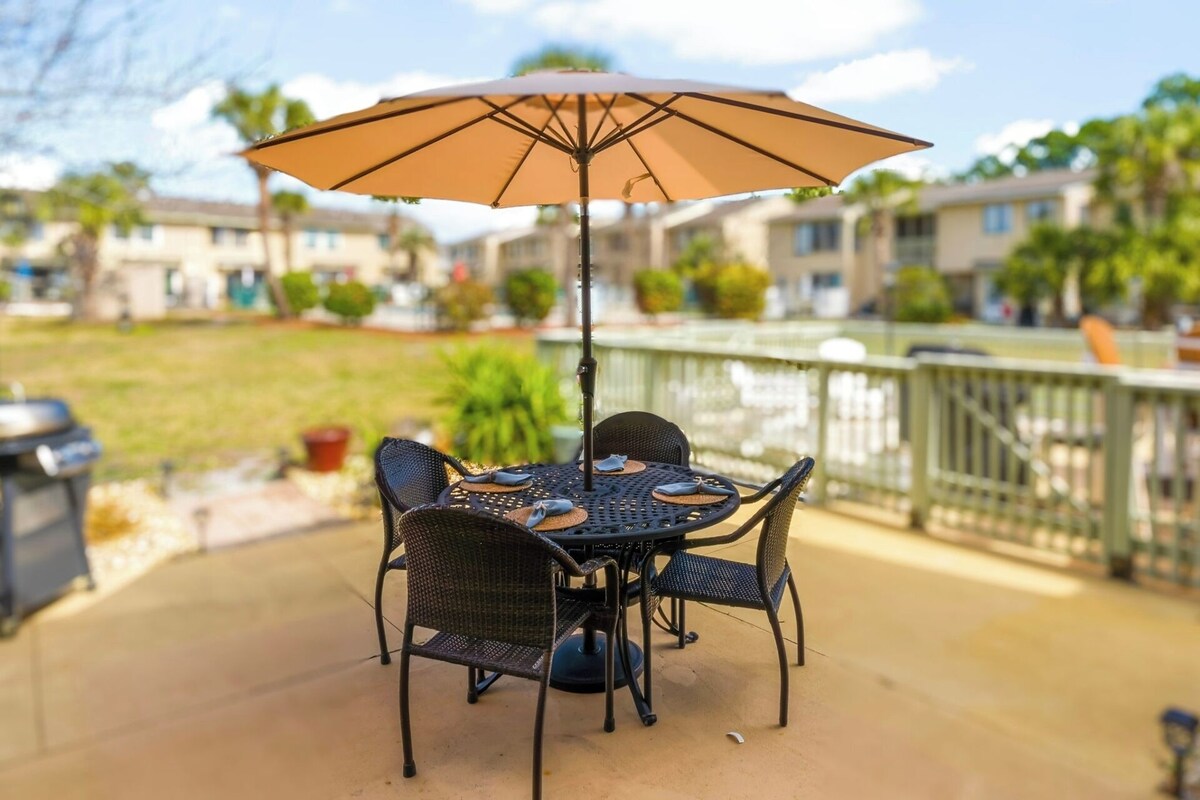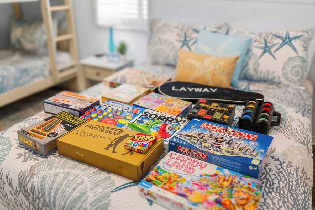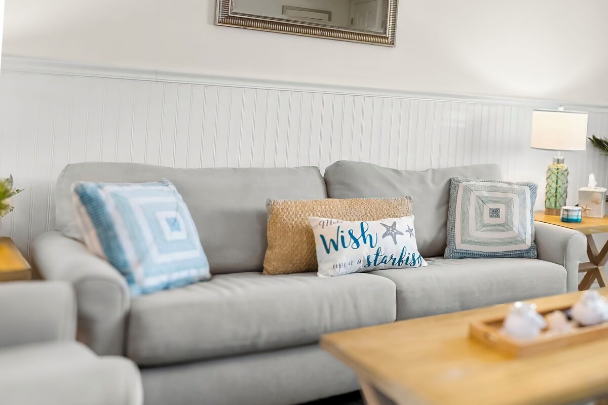 The White Sandy Beach Retreat is a renovated townhome that is self-managed in the Gulf Highlands Beach Resort in Panama City Beach. We have ample space for 6 in two bedrooms and 2 1/2 baths plus tons of bonus amenities like a Florida room, reading room, fire pit, 3 beach bikes, beach towels, tennis, pickleball & shuffleboard equipment, golf clubs, games, puzzles and more. Unlike many places, we accept up to two well-behaved pets per stay:) Sheila is a very attentive host and is readily available by phone, text or direct messaging. With easy self-check-in and lots of privacy, this townhome feels like your home away from home. You've arrived in beach paradise as soon as you step inside our newly renovated two-story White Sandy Beach Retreat. Downstairs, you'll enjoy a spacious living area with comfortable seating, smart TV, large well-equipped kitchen, new appliances, bar seating, all small appliances, coffee bar, dining table, and half bathroom. A gorgeous Florida room in the back has seating, a ceiling fan, and access to our private patio with a flat-top grill. Out front is a fire pit with Adirondack chairs. Upstairs, the main bedroom features a queen bed, smart TV, closet with hangers, and ensuite bathroom with a walk-in shower. The second bedroom upstairs has a queen bed plus twin bunk beds, smart TV, closet with hangers, and access to the second bathroom with a tub/shower combo. Downstairs is a queen-sized sleeper. For convenience and to bring your vacation up a notch, we include complimentary WIFI, a washer/dryer, golf clubs, pickleball & shuffleboard equipment, three beach bikes, hair dryer, dog bowls, a reading room, lamps & nightstands with charging ports, plastic wear/baby gate/pack-n-play for kids, games/puzzles, beach towels, hand soap, dish soap, shampoo/conditioner/bodywash, and more. And we also include starter amenities like TP, paper towels, dishwasher, laundry detergent and coffee pods so that your arrival is as smooth as possible! The White Sandy Beach Retreat has a pool, putt-putt course, and shuffleboard courts right behind it. Golf carts are available for rent on property and we have two dedicated parking spaces right outside our front door without parking fees. Gulf Highlands is a gated resort community with 24/7 security and incredible amenities including 11 swimming pools (5 heated seasonally), tennis courts, pickleball courts, 18-hole putt-putt, shuffleboard, playground, and a restaurant with a pool and bathrooms is directly on the Gulf of America with no steps needed to get to the beach. Primary renter must be at least 25 years old, sign a rental agreement within 48 hours of booking, be present for the duration of the stay, and agree to provide the host a credit card on which a $200 damage deposit hold will be placed prior to arrival and then released after his/her uneventful stay. No smoking or parties allowed inside the townhome or screened in areas. Booking includes parking passes for two vehicles. No additional passes are allowed, no trailer or boat parking is available. Pets are limited to two with a non-refundable $150 fee. Our prices include all fees. No hidden fees.