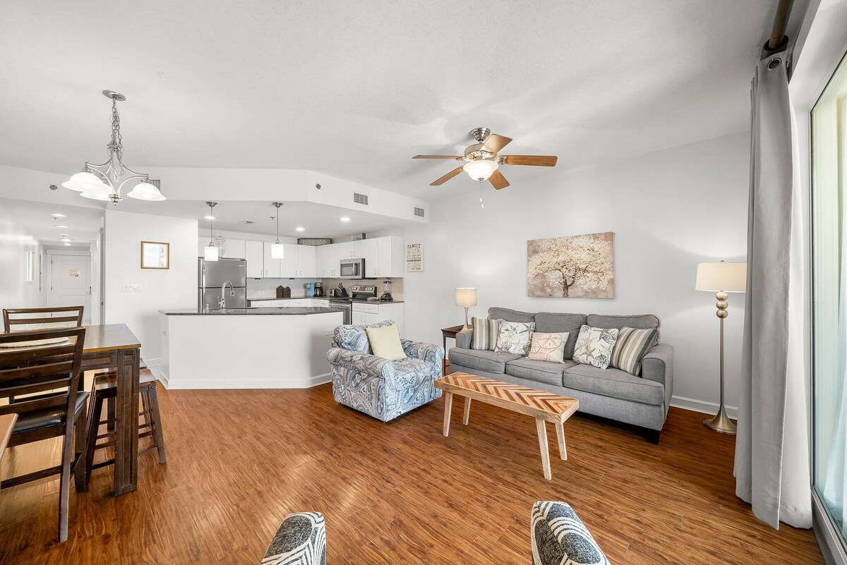 Relax and Unwind in this Beautiful Gulf-View Condo at Grand Panama Tower II Welcome to your home away from home! This stunning 1-bedroom, 2-bathroom condo on the 11th floor of Grand Panama Tower II has everything you need for a relaxing beach getaway. With beautiful Gulf views from your furnished balcony and comfortable accommodations for up to 6 guests, you’re in for an unforgettable vacation. Inside the Condo: Step inside and enjoy a bright, open layout perfect for both relaxation and entertaining. The fully equipped kitchen features bar seating and a Keurig coffee maker—ideal for slow mornings before hitting the beach. The spacious living room offers a sleeper sofa and flat-screen TV, all framed by gorgeous Gulf views. The master bedroom includes a plush king-size bed, flat-screen TV, and a private bathroom with a luxurious walk-in tile shower. A cozy bunk area in the hallway features twin-size bunk beds (perfect for the kids), and there's an additional full bathroom with a tub/shower combo. You'll also have your own washer and dryer for added convenience. Condo Highlights: Private, furnished balcony with stunning Gulf views Living room with sleeper sofa and flat-screen TV Fully equipped kitchen with bar seating and Keurig coffee machine Master bedroom with king-size bed, TV, and private en-suite bath Twin-size bunk beds in hallway nook (Max weight on top bunk: 120 lbs) Second full bathroom with tub/shower combo In-unit laundry with washer and dryer FREE high-speed internet and cable Pet-friendly! ($150 + tax per dog; max 2 dogs per stay) Resort Perks at Grand Panama Beach Resort: Located on 35 acres of beautiful beachfront property, Grand Panama Beach Resort offers a wealth of amenities to make your stay extra special. Please note: Tower II is located across the street from the beach, but all resort amenities are available to Tower II guests. Private beach access Outdoor Gulf-front pool + tropical deck Heated rooftop pool and hot tub Two Gulf-side hot tubs & kiddie pool 2 seasonal tiki bars Fitness center & jogging/biking paths Community BBQ grills and picnic areas Common area WiFi Know Before You Go: A resort registration fee is due at check-in at the Grand Panama Beach Resort office The primary renter must be at least 25 years old This condo is perfect for couples, small families, or anyone looking to relax in style with all the comforts of home—plus a whole lot of sunshine. Book your stay today and get ready to make memories at one of Panama City Beach’s most loved resorts! Our prices include all fees. No hidden fees.