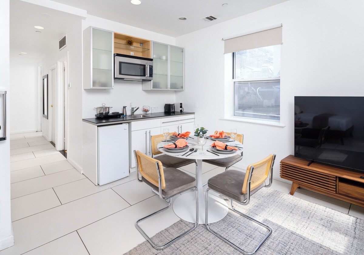 Beautifully Brownstone-designed apartment features 2 bedrooms, each with a Queen-size bed, comfortably accommodating up to 4 guests. Enjoy the perfect blend of style and convenience, located right off Grand Central Metro Station. Walking distance to Times Square, Central Park, and the Metropolitan Museum of Art. Surrounded by trendy bars, restaurants, and coffee shops. Nestled in one of the safest neighborhoods in NYC, next to the United Nations. Relax and unwind in the privacy of your own patio, perfect for seating and enjoying a tranquil moment. Inside, find everything you need for a seamless stay, including: - Linens and towels - Pots and pans - Fridge - And more! This spacious 2-bedroom apartment is ideal for families, groups of friends, or solo travelers seeking a comfortable and convenient NYC getaway. With two separate bedrooms, you'll have plenty of space to relax and recharge during your stay. Our prices include all fees. No hidden fees.