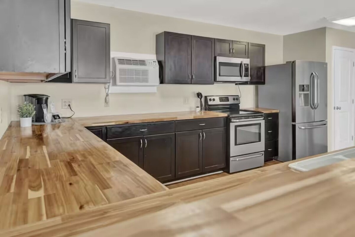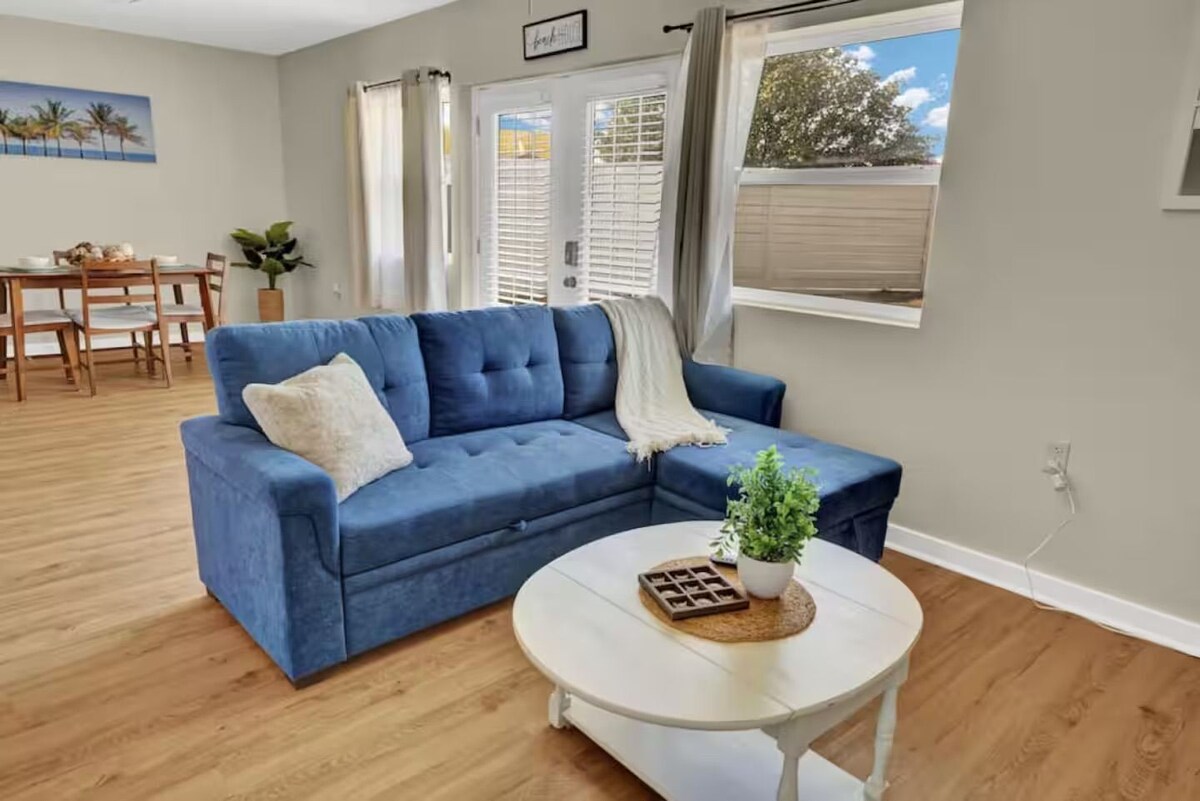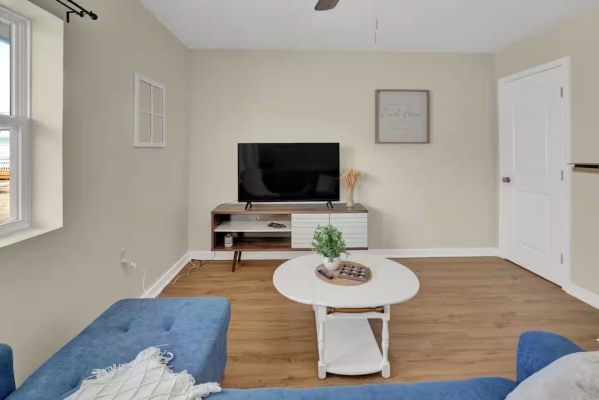 Relax & Unwind | Bright 1BR Coastal Suite Spacious & Stylish 1-Bedroom Suite – Perfect for Families or Groups Welcome to your home-away-from-home, where comfort meets convenience in this beautifully designed 1-bedroom suite. The open-concept layout flows effortlessly from the living and dining areas to the fully equipped kitchen, making it easy to cook, gather, and relax together. The bedroom features two plush queen beds, comfortably sleeping up to four guests, while a convertible sofa in the living area provides extra flexibility for an additional guest. Whether you’re traveling with family, friends, or on a work trip, you’ll find thoughtful touches throughout to make your stay seamless. Enjoy a dedicated workspace for remote work, a modern bathroom with fresh finishes, and a smart TV for movie nights or catching up on your favorite shows. Please note that internet service in our area can be spotty at times — while we use the best provider available, guests may occasionally experience low or intermittent signal while on the property. Our prices include all fees. No hidden fees.