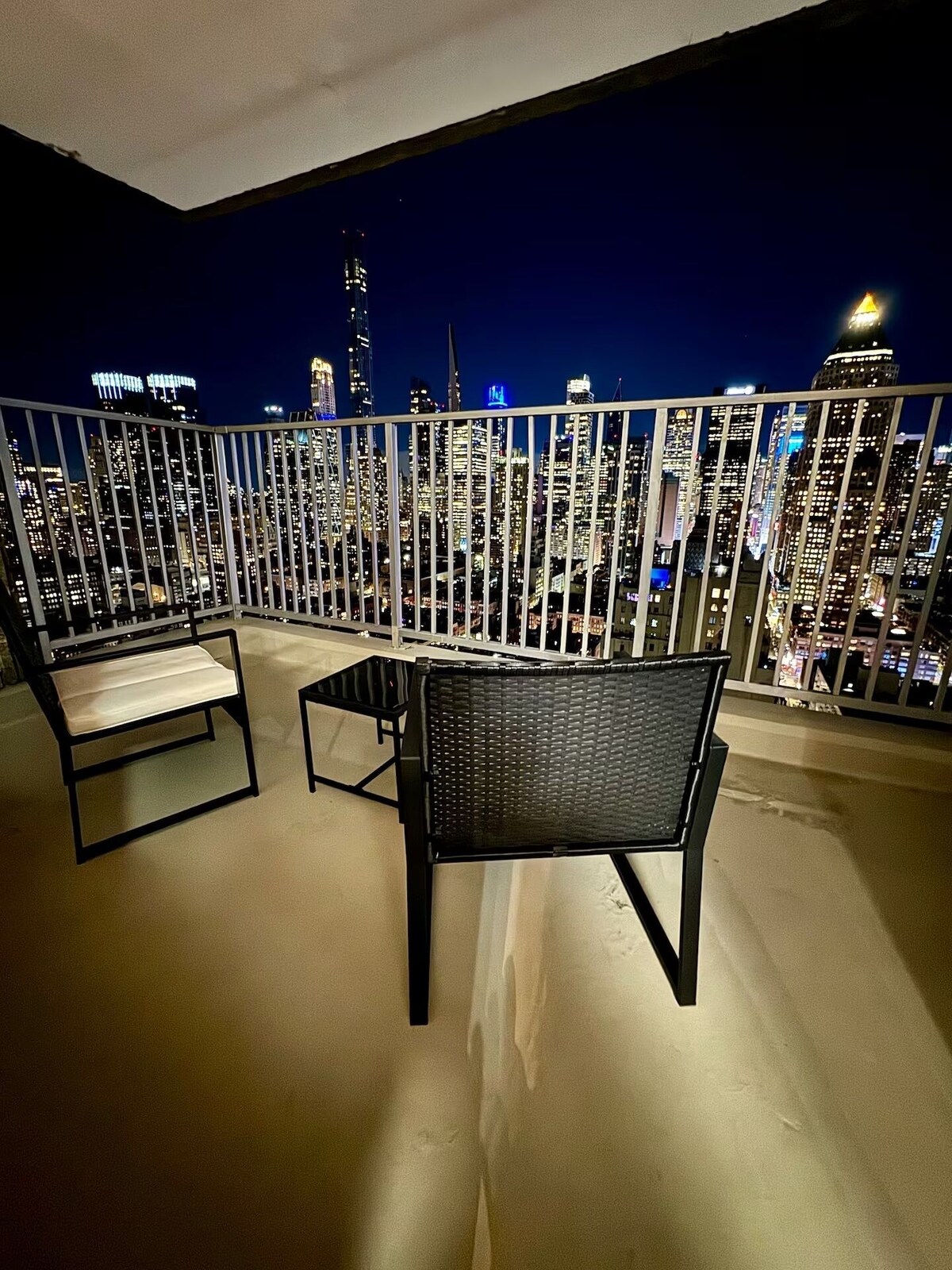 Discover the magic of central Manhattan from the comfort of our two-bedrooms corner apartment! We're excited to share this exceptional quality apartment with you. Book your stay with us, and let us be your gateway to the best of Manhattan living. We can't wait to host you! Welcome to luxury living at its finest in this amazing corner 2-bedroom apartment with panoramic city views! Each room boasts windows that showcase stunning south and east exposures, allowing you to bask in the beauty of this magic city skyline night and day. The highlight of this home is undoubtedly the breathtaking panoramic view from both bedrooms, the living room, dining room and the patio. Situated on a high floor close to 40th floor, you'll feel like you're on top of the world as you gaze out at the iconic cityscape. Words can't describe it, and photos won't do it justice—you have to see the stunning view in person to truly appreciate it! Unlike the densely packed concrete jungle of NYC, this apartment offers unobstructed views from every window, allowing guests to undress with complete privacy. Our stylish apartment places you right in the center of the city, surrounded by an array of fantastic eateries. After a day of exploring, unwind in our luxurious rain shower bathroom and sink into brand new comfortable beds with designer beddings. Experience the perfect blend of comfort and convenience in the heart of New York City. Step into the gourmet kitchen, equipped with everything you need to whip up delicious meals. Indulge your inner chef in the modern kitchen outfitted with the latest electronic stoves, oven and other stainless steel appliances including a dishwasher for effortless culinary creations. Plenty closet spaces ensure that your belongings are neatly organized. Entertain in living room with new 55\ ,