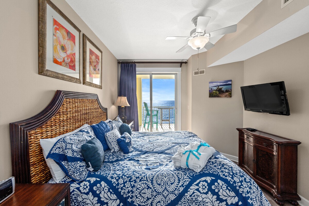 This beachfront paradise offers amazing floor-to-ceiling windows and plenty of living space with comfortable seating. The Gulf-front living area features ample seating for everyone, a Queen sofa sleeper, and a HUGE flat-screen TV for your viewing pleasure after a long day at the beach. The formal dining area and breakfast bar allow everyone to enjoy meals together. The fully-equipped kitchen includes a full range of cookware and high-end furnishings with granite countertops, steel appliances, and custom tile accents. The private balcony is furnished for comfortable lounging and offers a breathtaking view of the Gulf Coast. New for 2025 - bring your pup! There are local laws regarding dogs on the beach, but our condo is dog-friendly! Details below. The Gulf-front master with private balcony access offers a King bed, flat-screen TV, and private en suite bath. The Master Bath features a walk-in shower, separate deep tub, dual granite vanities, and great closet spaces. The Guest Bedroom offers a Queen bed, great windows bringing in the Florida sunshine, and private access to the Guest Bath. In the hall alcove, you will find a Twin Day bed with a pullout trundle (limit of 100 pounds) so that this condo will comfortably accommodate up to eight guests. The laundry center is located just off the hall access across from the Guest Bath. Your Guest Bath features a tub shower combination for ultimate convenience. The Grand Panama Beach Resort is centrally located on the East end of Panama City Beach convenient to the best of area attractions. This distinguished condominium opened in 2007, built on 35 acres of dazzling beachfront property. The resort grounds feature impressive landscaping with beautiful gardens, fountains, and waterfalls, as well as an impressive list of amenities. Guests of all ages will appreciate the extras that grant all the comforts of home with added extravagance. Guest will need to pre-register online and pay for parking passes and armband BEFORE arrival. There is a two car limit per reservation. Guests with service dogs will also need to visit the Grand Panama Beach Resort website to view their animal policies and to complete the required animal registration form. If you have any further question you can call the Blue Swell office to speak with a reservationist. SLEEPING ARRANGEMENTS (SLEEPS 8) • Master Bedroom: King Sized Bed • Guest Bedroom: Queen Sized Bed • Bonus: Queen Sleeper Sofa in Living Room • Nook Area: Twin Daybed with Twin Trundle **Please Note: ALL Top Bunks have a weight limit of 100lbs Dog-Friendly! (additional fees will be applied at booking) **Maximum of two dogs **No cats or other animals are allowed. Dogs must be under the 25lbs weight limit. ALL rules must be followed regarding your pets or a fine will occur. **Resort rules regarding dogs must be followed - please inquire for more info about resort rules. **Fee due to both host and Grand Panama Resort. RESORT AMENITIES: • Private Beach Access • Gulf Front Pool in Tower One • Two Gulf Front Hot Tubs • Heated Rooftop Pool in Tower Two with Hot Tub and Gulf Views • Two Seasonal Tiki Bars Blue Swell Vacation Rentals is a boutique property management company that specializes in top-of-the-line, luxury beach rentals from PCB, 30A, and Destin. Our loyal guests come back year after year because of the exclusive homes and condos we offer as well as the excellent service we provide. Our keyless entry, premier linens with 300 thread count sheets, plush towels, and high-end starter supplies are just the beginning of the convenient amenities we provide for every guest. Most importantly, Blue Swell’s phone service allows our guests to experience the best vacation ever with less stress. It is always a SWELL day at the beach! Our prices include all fees. No hidden fees.
