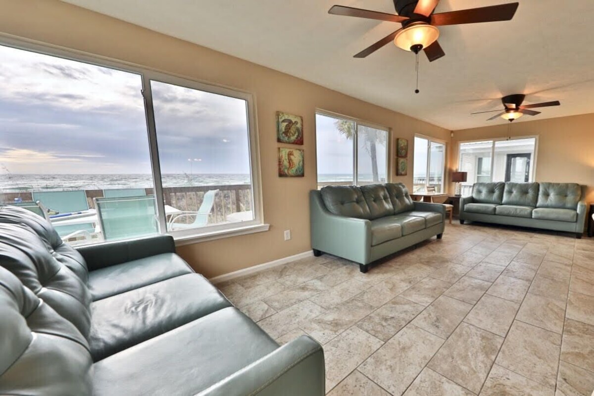 Limited Time Early Booking Discount Offer! Enjoy your Emerald Coast Destinations PCB vacation in our oceanfront Sea Ease Beach House! Book now for your 2026 PCB vacation with a 10% Discount Included! Prices shown will increase by 10% on 02/01/26. Reserve your dates now before they sell out! Enter Your Dates No of Guests Click on \ to view a detailed quote including taxes with Instant Booking Confirmation! This house is very popular so don't wait to book or it may already be gone for your week! 5 BR 4 BA Gulf Front beach house Best Beach House location in PCB. Across from Pier Park Mall 3/4 to Frank Brown Park Next to the only dog friendly beach within 75 miles. Sleep Safe: All linens and towels are included and are 100% commercially sanitized and disinfected after every stay by System Laundry Management Co. Pets up to 60# OK 3 Dog Limit. Our pet fee is $150 + tax 1 dog + $75 each for 2nd & 3rd dogs will be added to the total shown.. For Family Reservations a $500.00 Refundable Security Deposit is Required Ages 18-25 a total of $1,200 Refundable Security Deposit is required and will be adjusted after you book it. Stainless Fridge 2 Ice makers, No Carpet All Tile, New Windows New Rear Deck, Completely Repainted Inside & Out All Rooms Have Cable TVs Sleeps 16 in Beds: 1st floor2800 square feet - Master BR Oceanfront En-suite BA, 2 Queen Beds. - 2nd BR 2 twin beds Oceanfront views adjoining full bath - 3rd BR 2 sets built-in bunks Twin XL pillow top mattresses full bath - 5 Leather Queen Size sofa sleepers 2nd floor 2 BRs ocean front views full bath in hall - 4th BR king bed, - 5th BR sleeps 4 2 Double beds Directly on the beach the sand is your back yard. Hot Tub and Pool (Heated 11/15-3/31) Across the street from Pier Park Mall shopping and entertainment center with specialty shops, seasonal events, concerts The Sky Wheel, many restaurants and music venues. Jimmy Buffett's Margaretville, live country music all day at Tootsies Orchid Lounge, non-stop sports at Buffalo Wild Wings and much morel. All Non-smoking Handicap accessible No Stairs for first floor or back deck, NOT ADA compliant. Parking for up to 6 vehicles. AUTOMATIC PAYMENT PROCESS FOR RESERVATION REQUESTS Thank you for choosing Emerald Coast Destinations Inc. - ECDI Please review the payment terms for your reservation below: RESERVATIONS MADE MORE THAN 30 DAYS PRIOR TO THE CHECK-IN DATE: - Vrbo will separately charge their Traveler's Service Fee to the card provided. - Our ECDI $300 Down Payment will be automatically charged within 24 Hours to the card provided. Confirmation emails will be sent. - Final Payment: The remaining balance will be automatically charged to the same card 30 days prior to your check-in date. - Final confirmation email with all necessary instructions for your stay will be sent on the same day. - Please check your spam folder. RESERVATIONS RECEIVED 30 DAYS OR LESS IN ADVANCE OF THE CHECK-IN DATE: - Vrbo will separately charge their Traveler's Service Fee to the card provided. - Remaining ECDI total amount due will be automatically charged to the card provided. - Final confirmation email with all necessary instructions for your stay will be automatically sent on the same day. - Please check your spam folder. Until confirmed, rates are subject to change without notice- Extra person charges will apply if the total number of people is increased after the initial reservation. Keywords: :Family Spring Break Panama City Beach, Spring Vacation Rental 2024, Pet Friendly Beach House Rental Panama City Beach, Vacation Rental Panama City B Our prices include all fees. No hidden fees.