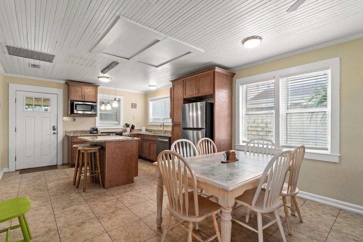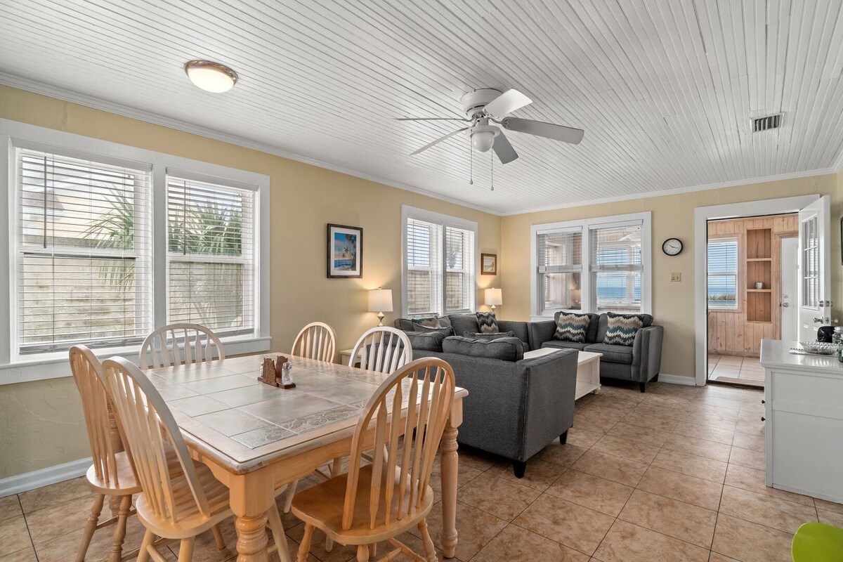 A Charming Beachfront Retreat \ is a quintessential Old Florida beach house, blending nostalgic charm with modern comforts. Located directly on the beach, this charming 4-bedroom home features breathtaking views of the Gulf, spacious indoor and outdoor living areas, and a laid-back atmosphere for the ultimate beach vacation. Perfect for families or groups, this home comfortably accommodates up to 12 guests. Why You'll Love This Home - Direct beachfront access—just 15 steps to the sugary white sands. - Two large living areas, perfect for entertaining. - Expansive outdoor patio with ample seating, custom fire pit, and breathtaking sunset views. - Memory gel mattresses for added comfort. The Space Main House - Living & Dining Areas: Vintage-style dining area and two spacious living rooms with comfortable furnishings for gatherings. - Kitchen: Fully stocked with sleek stainless-steel appliances and plenty of counter space for meal preparation. - Master Bedroom: King bed with private en suite bathroom. - Guest Bedroom 1: Two queen beds with access to a shared bathroom. - Florida Room: Two daybeds, perfect for kids or additional sleeping arrangements. Guest Wing (Accessible via Breezeway) - Guest Bedroom 2: Two twin beds with a private en suite bathroom. - Guest Bedroom 3: Queen bed with access to a half bath via the breezeway. These separate bedrooms are ideal for older kids or guests seeking additional privacy. Outdoor Features - Beachfront Patio: Enjoy stunning Gulf views, a custom fire pit, and plenty of seating for family barbecues or sunset gatherings. - Direct Beach Access: Steps away from the sand—perfect for beach lovers. Activities & Nearby Attractions - Relax on the serene beaches right outside your door. - Explore local dining, shopping, and attractions in Panama City Beach. - Unwind with spectacular sunsets from the comfort of the back patio. Important Things To Know - Parking: Space for up to 4 vehicles. - Beach Chairs/Accessories: Not included. Rentals available through Live The Gulf Coast. - Pool: None - Golf Carts: Allowed but not included. Rentals available through Live The Gulf Coast. - Bikes: Not included. Rentals available through Live The Gulf Coast. - Baby Gear: Not included. Rentals available through Live The Gulf Coast. - Pets: Allowed with a $150 non-refundable fee per pet (maximum 2 pets under 35 lbs; breed restrictions apply). No cats. Restricted Breeds: Akita, Australian Blue Heeler, Boxer, Bull Mastiffs, Chow, Dalmatian, Doberman, English Bulldog, German Shepherd, Great Dane, Husky (any type), Malamute, Mastiff (any variation), Pit Bulls, Presa Canarios, Rottweiler, Saint Bernard, Wolf-dog Hybrid. Booking Information - Check-in Time: 4:00 PM - Check-out Time: 10:00 AM - Age Restrictions: Guests must be at least 25 years old to book and stay in the property for non-family groups. - Cancellation Policy: No refunds. - Mid-stay Clean Fee: Applies to reservations of 21+ days. For additional rentals such as beach chairs, golf carts, bikes, or baby gear, please contact Live The Gulf Coast. Our prices include all fees. No hidden fees.