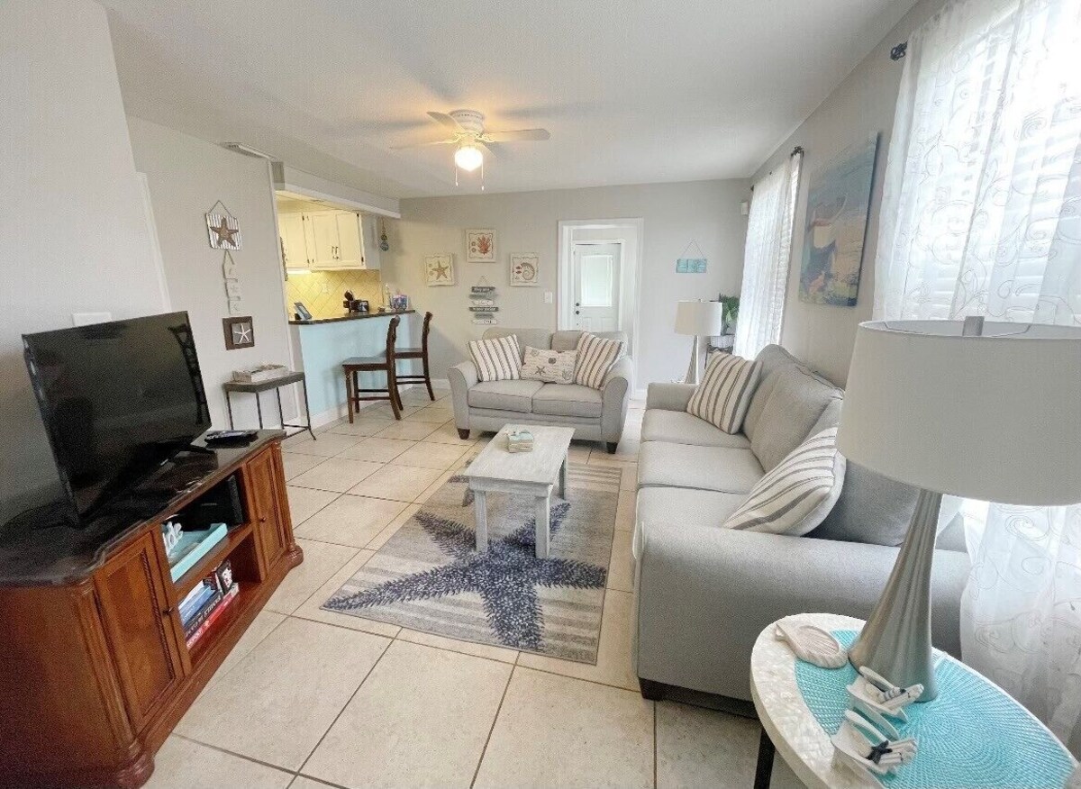 Guests tell me how comfortable this beach house is-fully stocked. Beach decor throughout. Full kitchen supplies! One of the best features of this location is the quiet beach - yet so close to all the action. Minimal traffic compared to other Front Beach locations and ECP airport is close to SeaRenity. Easy walking distance to Runaway Island Restaurant, Senor Frogs, Local Steamer, Funland Arcade, Moe's BBQ and Hidden Lagoon Super Track and Golf - all down the street on Front Beach\