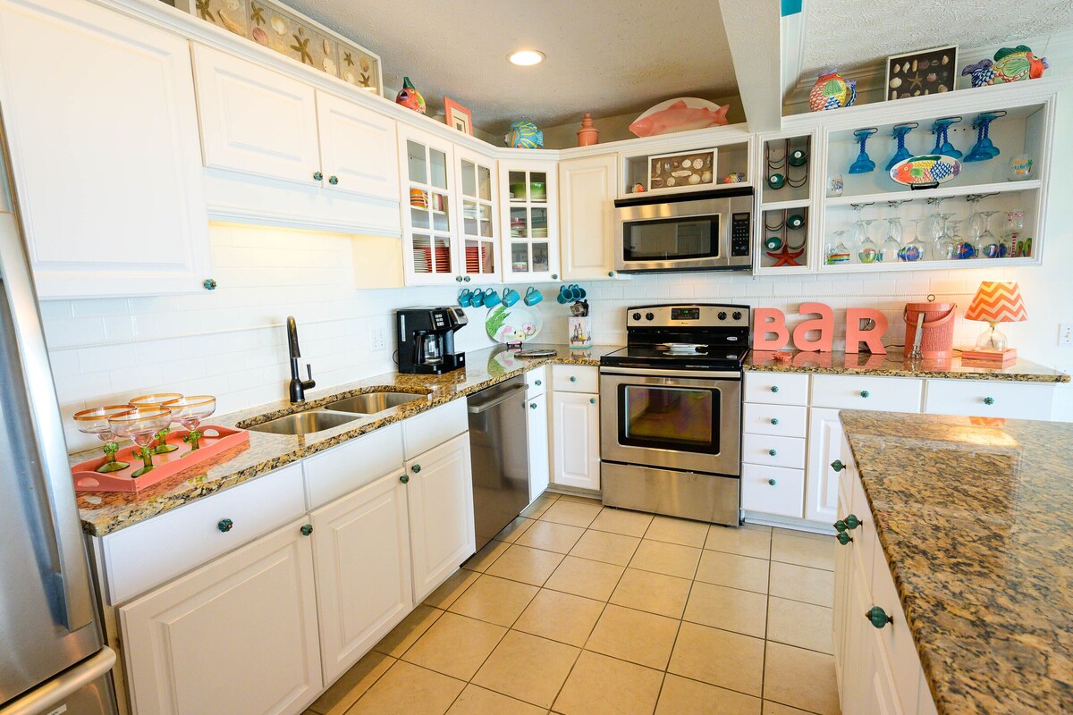 Seeing is believing! Spectacular sunsets, dancing dolphins, crystal blue EMERALD waters, shimmering sugar sand pet friendly, privately-owned, open concept LUXURIOUS very light, airy, and large Gulf FRONT ( direct beach access); 3-bedroom, 3-full bathroom, 1st floor (lower), condominium in a LOW RISE complex having only 20 condos. It has been RENOVATED kitchen with bar area, bathroom W Hollywoodmske up mirrors, granite counter tops, wood stainless appliances, 2 bedroom suites w en-suite walk in rain showers, AMENITIES Beach-side covered 40 FOOT deck DIRECT BEACH ACCESS Take five steps down & YOU ARE ON THE BEACH Take a westward stroll on two miles of dedicated, uninhabited beach. Walk to PCB LANDMARK Thomas Donuts (fresh hot donuts and homemade bisquits every morning) 10 minutes east or west to large grocery store (Winn Dixie/east, Publix/west); Carousel Grocery, Wine Liquor and Gifts 1/4 miles west (BEST WINE PRICES IN FLORIDA); 7 minutes west to 30A Rosemary, Alyce & Seaside; 20 minutes to San Destin and the Silver Sands Outlet Shopping Center; 7minutes east to Pier Park for shopping, entertainment (amusement park rides) and food (Margueritaville, Back Porch, Buffalo Wild Wings, Five Guys Burgers, Dave & Busters, and movies 15 minutes to Thomas Drive area (Captain Andersons Marina and restaurant, Pineapple Willys, Schooners (last local beach bar), GOLF, GOLF, GOLF: many great courses in PCB (Bay Point,, Holiday, Signal Hill) 25 minutes to Destin for the golf mecca with hundreds of courses. Fishing A PLENTY: 10 minutes to the pier at Pier Park or 15 minutes to harbor at Captain Andersons for deep sea fishing Antiquing/Flea Marketing: Vist Historic St Andrews in Panama City (Harrison Avenue only 20 minutes) or Ft Walton Antiques and Flea Market District (Eglin Parkway 30 minutes) Relax on comfortable stools at the wine/coffee bar overlooking the gulf; Enjoy chillin' with a cold drink in the outside dining area PRIVATE covered deck conversation area surrounded by tropical plants. Step out the front door to private parking 10 steps out front door to a large pool with ample lounges and chairs. CONDO FEATURES: 40 FEET OF GLASS FOR 'TO DIE FOR\ ,