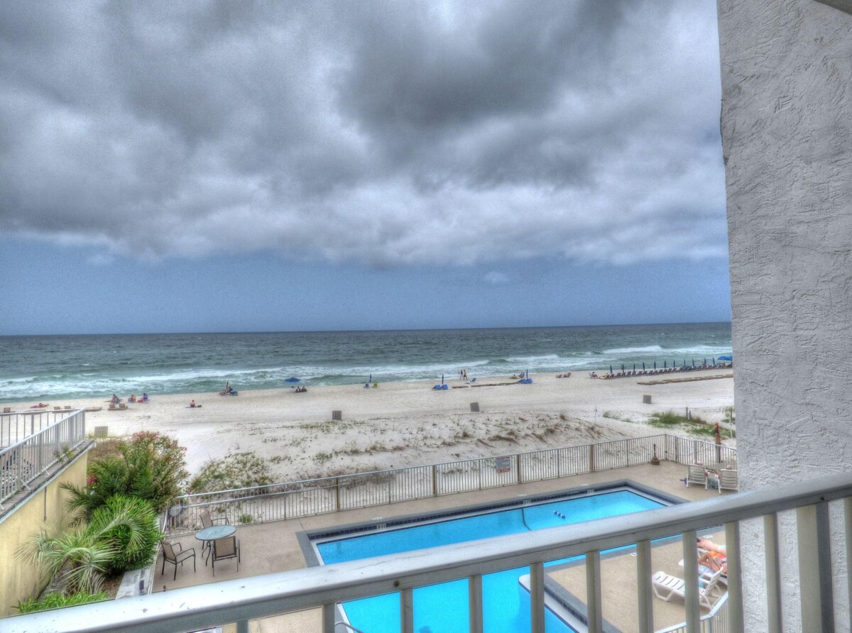 This Beach front home is just steps away from the Gulf of Mexico. This pet-friendly property also features a sleeper sofa, a full bathroom, and the perfect size kitchenette. The unit overlooks the beach, Gulf, and pool with a private deck/patio. Located in the Ambassador Complex with an outdoor pool, hot tub, BBQ area, outdoor shower, and coin-op washers and dryers. This property is a short walk to Pier Park, Shuckums Oyster Pub, Gulf World, Barefoot Hide A Way Grill and Sharky's. No car no problem! Just walk or take the Bay Town Trolley. Panama City Beach was just named one of the best beaches in the world! We are PET-FRIENDLY! Pets 50bs and under are only allowed per the HOA rules. Additional pet fee per pet. Check out the wonderful onsite pet park. Our prices include all fees. No hidden fees.