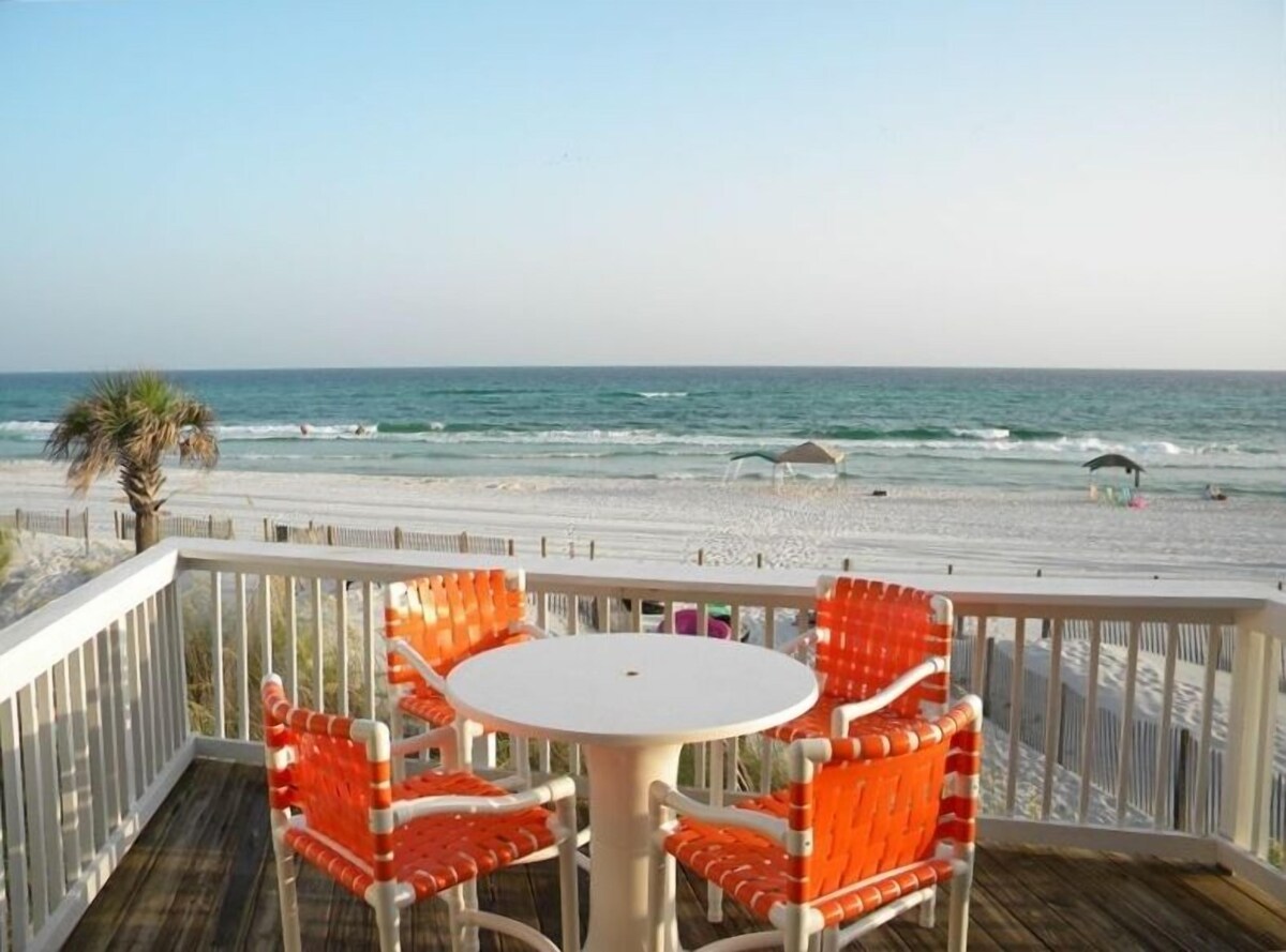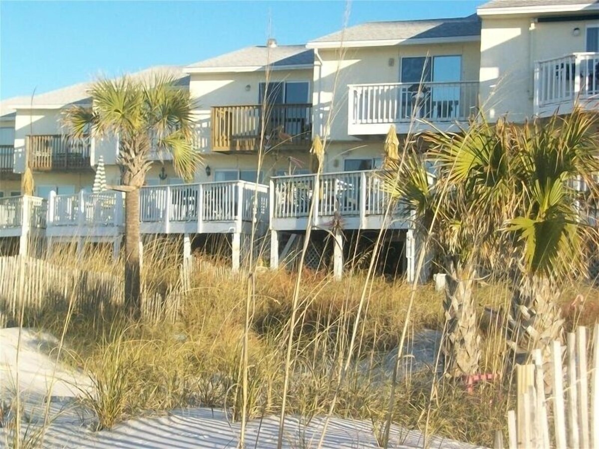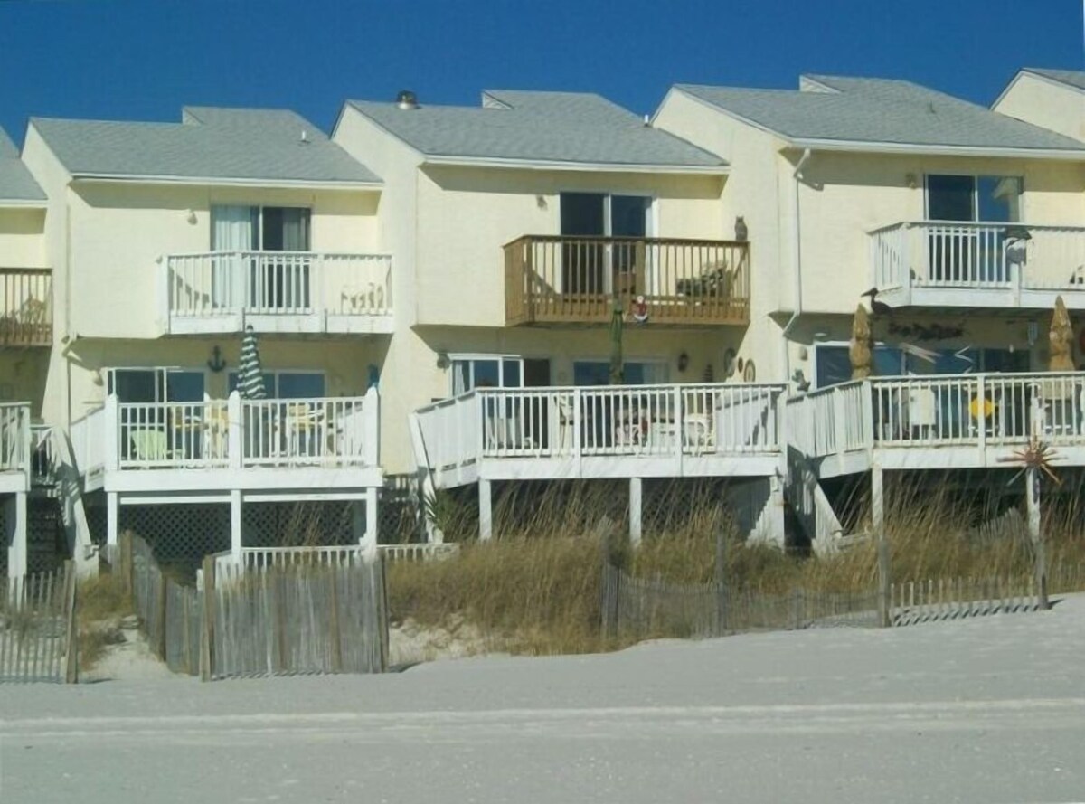 Click VIDEO above picture at the very top GULF FRONT walk off your own private deck and stick your feet in pure white sand. This Townhome villa has two bedrooms upstairs with master baths in each. Park 6 steps from your front door.PETS WELCOME We DO have Pet FEES Depending size And type ..The renovation brought all new granite tops in all bathrooms/kitchens/and bedrooms.Wood floors thru out. Mirrors Galore with Stain glass windows.All bedroom furniture is built in the walls with granite counters.New showers with rain drop heads comming out of the ceilings.New leather living area furniture with leather pull out sofa sleeper to sleep total 5 This is a 'FIVE STAR VILLA' not for the price shoppers.CHECK OUT VIDEO AT TOP OF PICTURE This is a two level two bedrooms with master baths upstairs.Living area has,fully equipped kitchen,and half bath. DON'T, forget to Bring FIDO. PET FEES APPLY Per PET FIDO wants a vacation too. We are \ \ \ ,