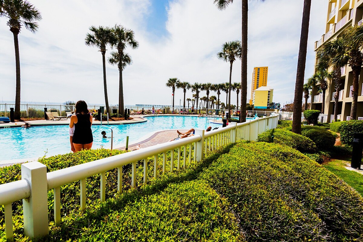 Dive into paradise with this stunning poolside condo on the ground floor room 1-104 in Panama City Beach, FL! NO! need to walk through the unit with our gated entry from the beach or pool. Gulf views from your patio. Enjoy seamless indoor-outdoor living just steps from the sparkling pool, with the sugar-white sands and emerald waves of the Gulf Coast right at your doorstep. Perfect for relaxation or adventure—your beachside escape awaits! Limited availability—book your sunny escape today! This Condo offers great Gulf Views and pool side. Step out the back slider through your personal gate to enjoy your large pool access and only a few steps to the white sandy beach. This beautiful condo was recently renovated with comfort and taste. Grand Panama Beach Resort, is one of the newest and most luxurious resorts in Panama City Beach Florida. Upon arrival at Grand Panama you will notice the quality and special touches that this fantastic property has to offer. Our beachfront unit 104 is on the 1st floor, with a poolside gated patio exclusive to your unit. Just steps away from the BBQ Grill/Pool /Beach/ Tiki Bar and Hot Tub. No waiting for elevators! Everything in the unit is new and was professionally decorated. This is a fully furnished 2 bedroom, 2 bath unit, with bunk alcove area built in . This unit offers a TV in each bedroom as well as WiFi access through out the Condo. You will enjoy this upscale resort and all the amenities. The beach is beautiful and the property is stunning with fantastic tropical landscaping and is located within 1/2 mile from M.B Miller Fishing Pier. It's also located within walking distance to Shipwreck Island Water Park, Shopping and Wine/Spirit Store as well as local Restaurants. You can spend a day at the beach, dine out, do some shopping, exercise or swim in one of the 2 awesome pools. There is roughly 55,000 square feet of retail shopping within Grand Panama for you to enjoy. Nearby are many attractions for your family enjoyment. You can stay home and cook in the fully furnished kitchen if you desire, or check out one of the many restaurants or eateries nearby or on property. The views from the private gated access Patio are fantastic and unobstructed. And only steps away from the Tiki Bar! (open seasonally) Enjoy many on-site amenities including a full service Tiki bar, seasonal beach service, water sport activities and an on-site fitness center with two pools for guest use. Roof top pool is heated in the winter months. In addition to the amenities listed, we also offer the following: 24-hour security Covered Parking Jacuzzi tubs and Kiddie pool On-site shopping and dining in the village of Grand Panama within walking distance Pedestrian walk-over to shops and covered parking There is a one time fee of $35 for parking per vehicle for up to 2 vehicles and swimming pool passes for the entire party that is paid at check in. Our prices include all fees. No hidden fees.