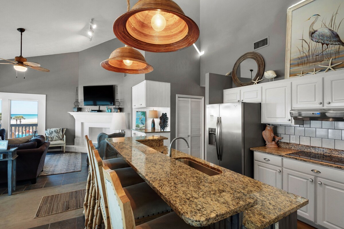 THE MINIMUM AGE LIMIT FOR RENTING THIS CONDOMINIUM IS 25 YEARS. IN THEIR RENTAL AGREEMENTS FOR THIS PROPERTY, THE OWNERS HAVE A \ SECTION THAT PROVIDES A DETAILED \ WHICH IS FAIR TO BOTH THEM AND THEIR GUESTS. THE RENTAL AGREEMENT ALSO HAS A \ SECTION THAT PROVIDES A DETAILED DISCUSSION ABOUT \ POLICIES INCLUDING \ CLAUSES, AND THE WEB SITES FOR NUMEROUS TRAVEL INSURANCE COMPANIES THAT PROVIDE SUCH POLICIES. This Listing is for UNIT #20 of Bonita Beach, a CORNER (END) UNIT, 2nd floor, 3-bedroom, 3-bathroom, condo. These owners also own UNIT #8 in the 20-unit Bonita Beach complex, which is a 1st floor (lower) unit in the same complex (also 3-bedroom and 3-bathroom with spectacular views of the ocean) (VRBO Listing No. 889889). It may be available when UNIT #20 is not available. UNIT #20 is a privately-owned, open concept, 1650 square foot, 2nd floor (upper), END (CORNER) UNIT in a 2-story (low-rise) complex of 20 condos. It is oceanfront (right on the beach), has 3 bedrooms and 3 full bathrooms, and has more beachside windows and sliding glass doors, significantly more ocean and beach views, and a far larger WRAP-AROUND BALCONY, in comparison with inner unit condos at the same complex. UNIT #20 has absolutely spectacular, expansive, UNOBSTRUCTED straight on AND western views of the beach and ocean year round from 12 floor-to-ceiling windows and sliding glass doors in the kitchen, living room, dining room, master bedroom and hall areas, and a large, WRAP-AROUND, covered balcony (much larger than balconies of inner unit condos at the complex) accessed via two separate sets of sliding glass doors, one off of the living room and the other off of the master bedroom, which also has spectacular views of the beach and ocean. This property is an END (CORNER) UNIT, which very beneficially has two more floor-to-ceiling windows looking out to the ocean than all inner unit condos at the complex, as well as full views of the ocean down the beach to the WEST that are not obstructed by any other condos in the complex (unlike inner unit condo at the same complex). The WESTERN SUNSET VIEWS from this condo are spectacular, both from inside and outside of this condo. Unlike inner unit condos at the same complex, this condo has sliding glass doors in the master bedroom with views of the ocean, which open onto a large wrap around balcony, and which can be left partially open at night to hear the sounds of the ocean while resting or sleeping in bed. The condominium is 34-feet wide, which is approximately twice as wide as the average condominium, and with the wrap-around balcony, provides approximately 40 feet of ocean and beach views (both straight on and to the west side). UNIT #20 has direct, private access to the ocean and beach via only one set of stairs (with no elevators to wait for), and sleeps 8 people in beds comfortably. The beach in front of the condominium is very private and relatively un-populated, and has a very peaceful and relaxing feel, which is in great contrast with the often very highly populated, and busy beaches, located in front of many high-rise condominium buildings. Unlike lower units at this complex, UNIT #20 has cathedral ceilings, which provide the condo with a very open and spacious feel. Located directly on the 'World's Most Beautiful Beaches' in Panama City Beach, no detail of this condo has been overlooked. From the moment a guest enters into the condo, the guest is comfortably surrounded by the feeling of custom designer touches and comfort. Notwithstanding, the guest will soon be beckoned by the emerald waters of the Gulf of Mexico and the accompanying pristine sugar white sandy beaches. Whether its a guest's first visit or an annual one, the guest can come to this condo for a memorable vacation which keeps the guest coming back year after year. Our designers have tastefully decorated every area for comfort and appeal to the senses of relaxation. Whether preparing a meal in the gourmet kitchen for dinner with family and friends, or enjoying the condo inside or out, the dining experience will be one to remember. The very large deck is perfect for watching the sunsets or enjoying a relaxing afternoon with a favorite beverage. The main living area has an open concept with unobstructed views of the Gulf of Mexico. The bedrooms are designed to ensure a peaceful night's sleep with all the modern conveniences of home after a day of sun and fun. The balcony is equipped for entertaining with six bar height chairs that fit neatly under the counter topped railings to make an outdoor experience relaxing and convenient. The beaches are just steps down from the balcony. There is an outdoor shower at the base of the stairs to wash off the salt and sand prior to returning to a personal paradise. For fire safety, this condo has a 5-pound 5BC multipurpose fire extinguisher professionally installed under the kitchen sink that is annually maintained by Advanced Fire Protection Services, Inc., and also HARD-WIRED smoke detectors that have battery backups. No smoking is permitted. Snowbirds are welcome, but only by the full month (all of January, all of February, or all of January and February). To formally book this condo, two adults (25 years of age or older) who would be present at the condo throughout the duration of any rental period would need to execute a standard rental agreement that is employed for all rentals of this condo, and also provide copies of their drivers licenses to the owners, as proper identification. Unless agreed to otherwise by the owners of this property in their written rental agreement, there must be a ratio of 1 adult (25 years of age or older) to every 2 children (under 25 years of age) who stay at this property.. The owners of this property do not rent it to groups of high school, college and/or other individuals who are under 25 years of age due to damage concerns. The owners' Cancellation Policy, as well as many different methods that may be employed for making pa