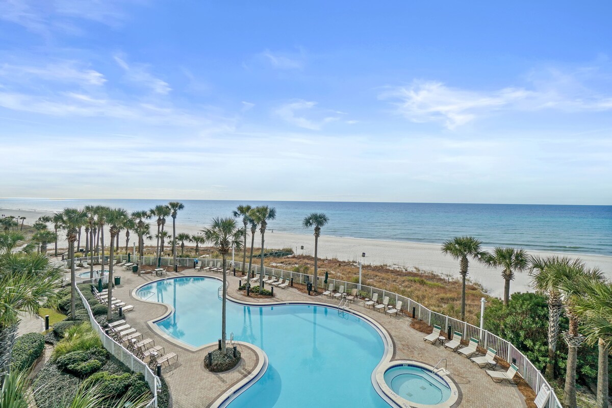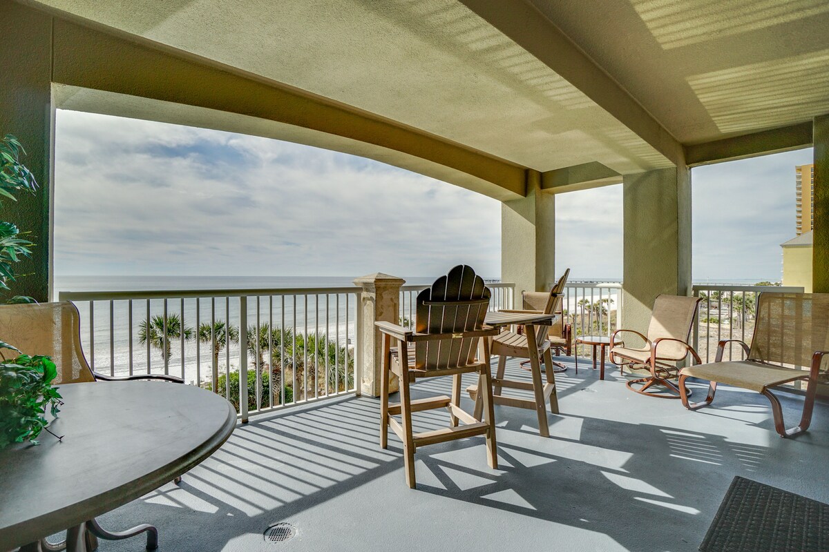 Be sure to check out our other 1-bedroom condo VRBO 1464829. Beautifully decorated luxury GULF FRONT end unit Condo at GRAND PANAMA BEACH RESORT is on the 4th floor overlooking the beautiful white sand and emerald waters of the gulf from our large, oversized balcony. Enjoy the view of the Gulf from our oversized balcony. Our beautiful Condo sleeps 9 to 10 comfortably with views from every bedroom. Free upgraded Wi-Fi included. Included for your stay is 2 Beach Rental Beach Chairs with Umbrella daily! Enjoy swimming in one of our 2 pools or hot tubs after a workout in our state-of-the-art gym. Then relax with a drink and a bite to eat at our Tiki Bars. We are within walking distance to M.B. County Pier and Shipwreck Island Water park as well as many great restaurants. Ring doorbell outside front door is used for guest safety and security. Step into our beautifully decorated 3-bedroom 2 bath condo with beautiful views from all of the bedrooms and living room. Step out on the large balcony and watch the waves and white sand beach. Or make a beautiful meal in our fully stocked kitchen to enjoy on the balcony. Our prices include all fees. No hidden fees.