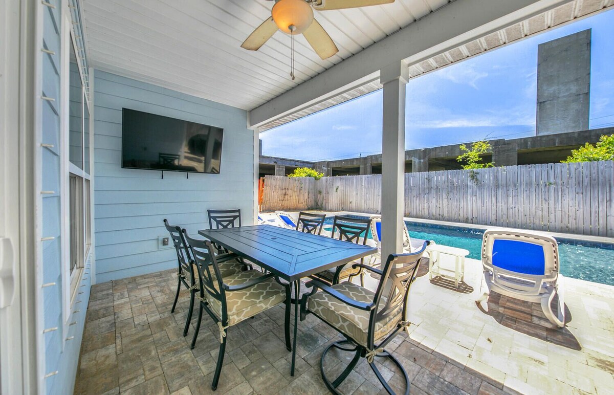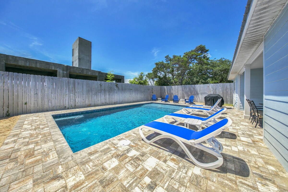 Living the Beach Life, a 4-bedroom beach house located in the heart of Panama City Beach. Featuring an expansive outdoor living space with private pool (heated for additional fee). Great location for your next beach getaway - just one block from the beach and Beach Access 44. Property can accommodate up to 12 guests. This property is pet friendly (for an additional fee). HOME HIGHLIGHTS: -Private Pool (heated for additional fee) -Pet Friendly (for additional fee) -Walking distance to the beach -Outdoor gas grill -Sleeps up to 12 lucky guests DETAILS: Featuring an open concept floor plan with granite counter tops throughout. The fully furnished kitchen boasts stainless appliances and includes an island that accommodates 3 bar stools, and the separate dining area includes a table for up to 8. Living area features a large sofa (queen sleeper), love seat, oversize chair, 75\ flat screen TV, private bathroom with two sinks, oversize walk-in shower, separate lavatory room, and huge walk-in closet. The private laundry room is located next to the master suite and features new, full-size washer and dryer. The other three bedrooms are located on the other side of the house. Bedroom 2 features a queen bed, ceiling fan and a 39\ flat screen TV. Bedroom 4 is perfect for the kids and features 2 sets of bunks, ceiling fan and accommodates 4. Bathroom number two features a deep soaking tub with a shower and vanity with a granite countertop. High quality bed linens, plush towels and amenities are provided throughout this property. A two-car garage in addition to large driveway will accommodate up to 5 vehicles. Boat or trailer parking is welcome on site. The garage is also perfect to store your kayaks, paddle boards and beach equipment. Also you will find a ping pong/air hockey table located in the garage. The private, oversize back yard is completely fenced in and is perfect to relax in the newly completed private pool (heated for additional fee). Outdoor area also includes a large patio with flat screen TV, gas grill, dining table with 6 chairs and several lounge chairs and a perfect location to enjoy a game of cornhole or other yard games. The property is also Pet Friendly (for an additional fee) Location, Location, Location... The location is in the heart of Panama City Beach. Easily accessible from Front Beach Road or Hutchison Blvd (Middle Beach Road) so traffic will never be a concern. Pier Park is less than a 5-minute drive. Shopping is close by with Publix and Walmart less than 2.5 miles. The best restaurants in Panama City Beach are located near the property and include Harpoon Harry's, Runaway Island, Jimmy Buffet's Margaritaville, Firefly and Nick's Slice of Brooklyn. Attractions close by include the Shipwreck Island Water Park, Sky Wheel, Rock-it Lanes, Just Jump, Go Carts and Putt-Putt Golf. PCB Certificate ID: 37576 Bay County Certificate ID: 36441 Our prices include all fees. No hidden fees.