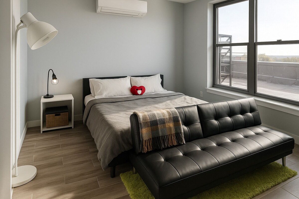 Experience elevated living in this stunning, modern Brooklyn penthouse. Nestled in a quiet, beautifully maintained neighborhood, this two-level retreat offers the perfect balance of style, comfort, and city convenience. Step into a sophisticated one-bedroom master suite, complete with two elegantly designed bathrooms and a private rooftop deck offering breathtaking skyline views. Enjoy your morning coffee on the balcony or unwind after a day in the city surrounded by curated decor and premium finishes. Located just minutes from major subway lines and public transit, getting to Manhattan or exploring Brooklyn’s best restaurants, galleries, and boutiques is effortless. Free street parking adds to the ease of your stay, and the property is pet-friendly, so everyone feels at home. Whether you're visiting for business or pleasure, this penthouse is your perfect sanctuary in the city—where luxury meets tranquility Our prices include all fees. No hidden fees.