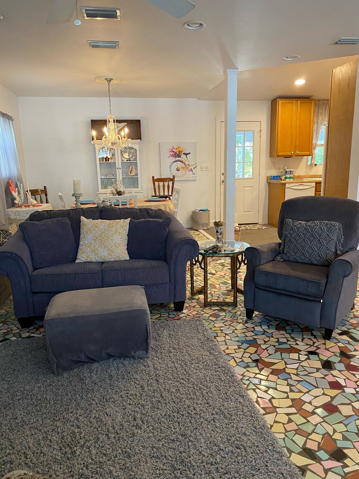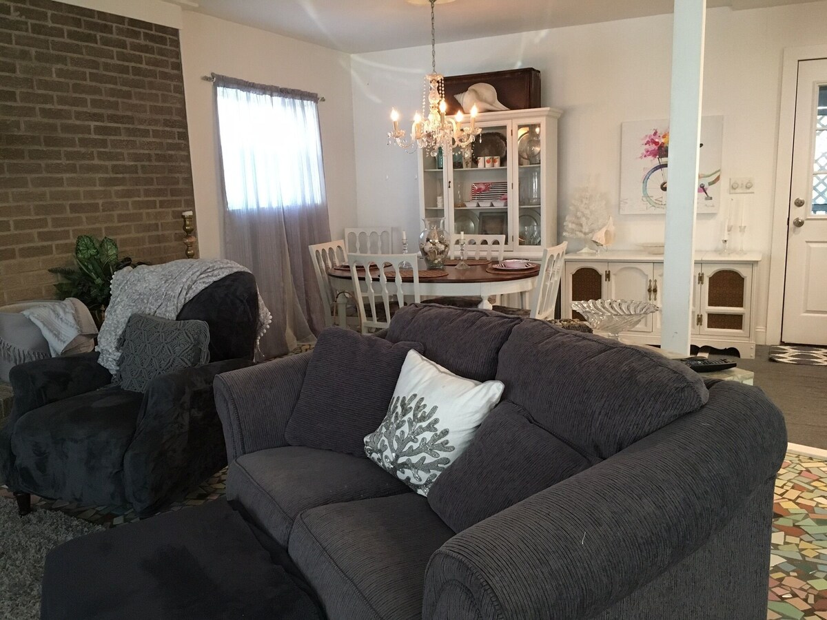 Private home since 1956. Renovated in 2010 with updated decor in 2019. Get a taste of “Old Florida with broken tile floors. Home contains 1600 square feet with large inviting open concept living room/ dining/kitchen. Gas fireplace for winter visitors. Screened porch with large fenced backyard, gas grill, and chiminea for those summer evenings. King master with 32 inch TV. Queen bedroom which opens into 3rd bedroom contains 2 sets of bunk beds. Ceiling fans in every room. One bathroom and outdoor shower. Laundry room with large washer/ dryer. Kitchen has coffeemaker, blender, toaster and dishes for 8. This is a completely non smoking home. If evidence of smoking found total damage deposited will be forfeited. Linens and towels for 8 provided. Beach chairs for 4 adults and 2 children, small beach umbrella, 4 beach towels available for guest use. Minimum rental age is 25. Responsible ( signing) party must be staying at the home for the length of the rental period. Violation of this policy will result in immediate eviction and forfeit of all rental payments. This is a FAMILY RENTAL Hope to have you enjoy our Family Home soon. Our prices include all fees. No hidden fees.