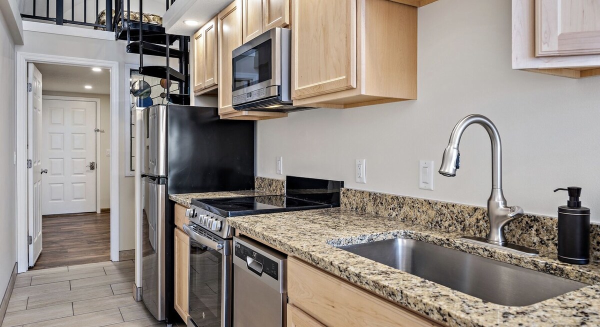 Top Floor Vaulted Ceilings Two King Beds and Leather Pull Out Pets allowed up to Two just need know type an size we have few restrictions There is PET FEES ELEGANT. Leather Mirrors GALORE Stainless GRANITE Tile /wood floors NO CARPET Pool/Hotub 1 1/2 Blocks east of Pier Park upper loft bedroom with King bed Full bath walk in Glass /tile Shower Across from Sckhums Oyster House balcony overhanging the Beach This is Real Deal LOCATED AT 15617 Front Beach rd Ambassoder Condo unit 325 across from Sckhums oyster House we will email access code four days prior to arrival we have push button code We are two floors Off parking lot so You have two flights of Stepps to walk up NO ELEVATOR Our prices include all fees. No hidden fees.