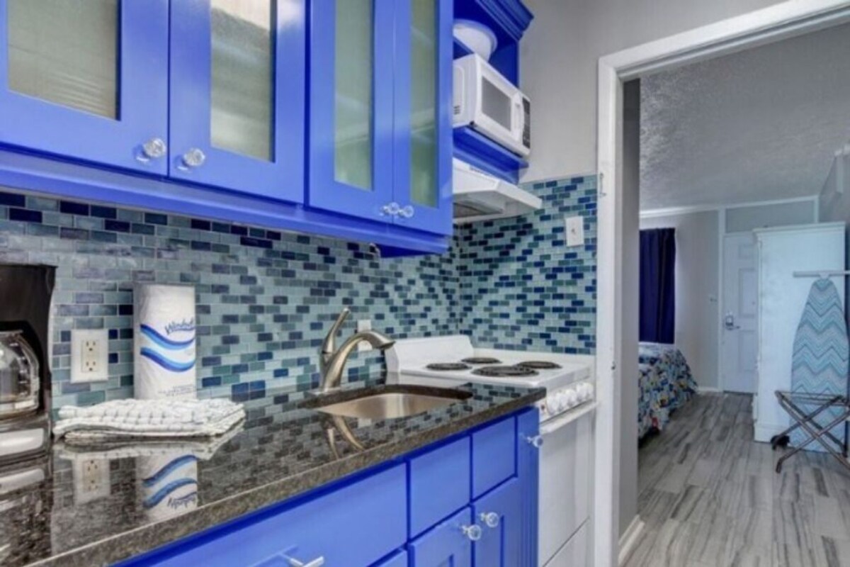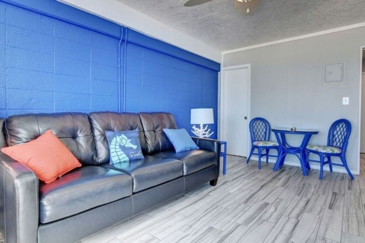 One Bedroom with two Queens in it Top Floor (3rd) but two floors off Parking level (NO ELEVATOR) It has complete bathroom with walk in Shower Kitchen has Granite With stove /micro wave/fridge Just Bring Food and Drink Living Room has tv with leather sofa(not sleeper sofa) And small dining areaPET freiendly Pet fee APPLYS two pets hopefully under 40 Lbs each Best of All this unit is Right on Beach Can walk to many eating places Across street from Sckhums Oyster House And East Pier Park Two Blocks PET Friendly we allow two pets just need some info on pets We have outdoor Pool/hottub And an Grassy area for Pets Its an Older unit so its NOT PERFECT its has a few Flaws But it has Hot water So dont book this if u want perfect its priced right and pet freindly Plan to redo it when I get time /funds Our prices include all fees. No hidden fees.