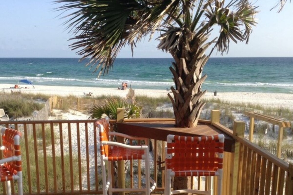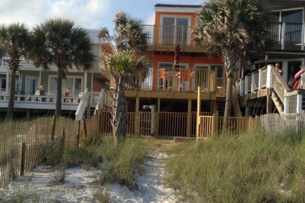 Two level townhome 2 master bedrooms 2 1/2 Baths park at Front Door parking for 4 cars Sliders with built in blinds End Villa so windows both on west and south side Granite Mirrors galore Tile/wood floors No carpet recess lighting /ceiling Fans Fenced in back yard for pets/kids Yes we are Pet Friendl yPet Fee Applys $149-$299 depending King Beds stain glass thru out west of Hwy 79 three blocks walk to grocery store/coconuts/shopping mall Our prices include all fees. No hidden fees.