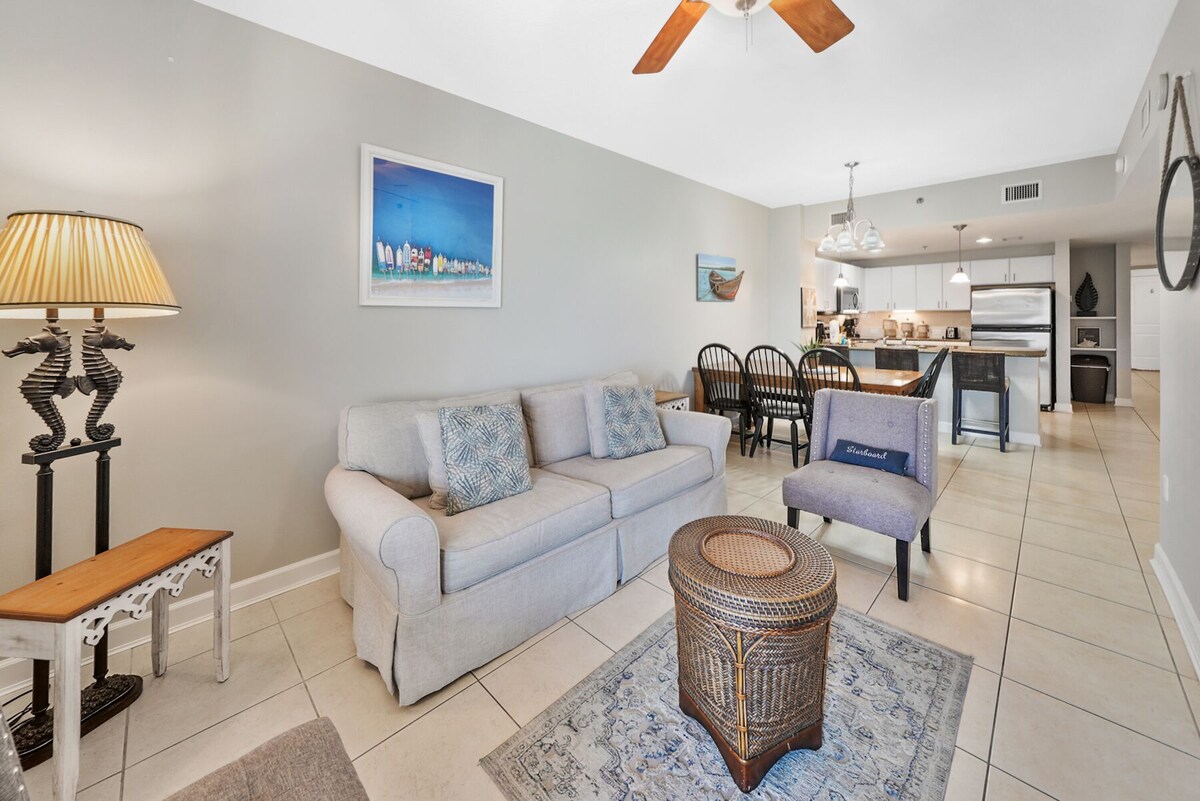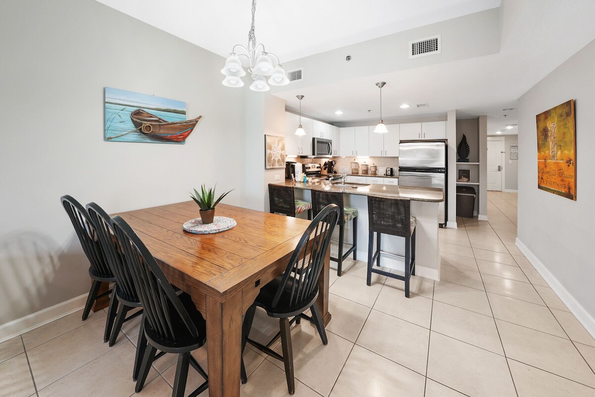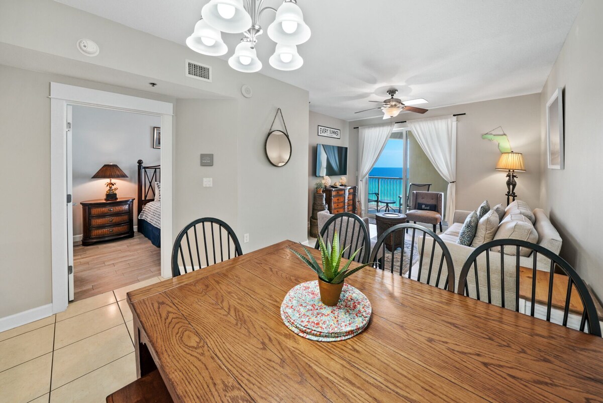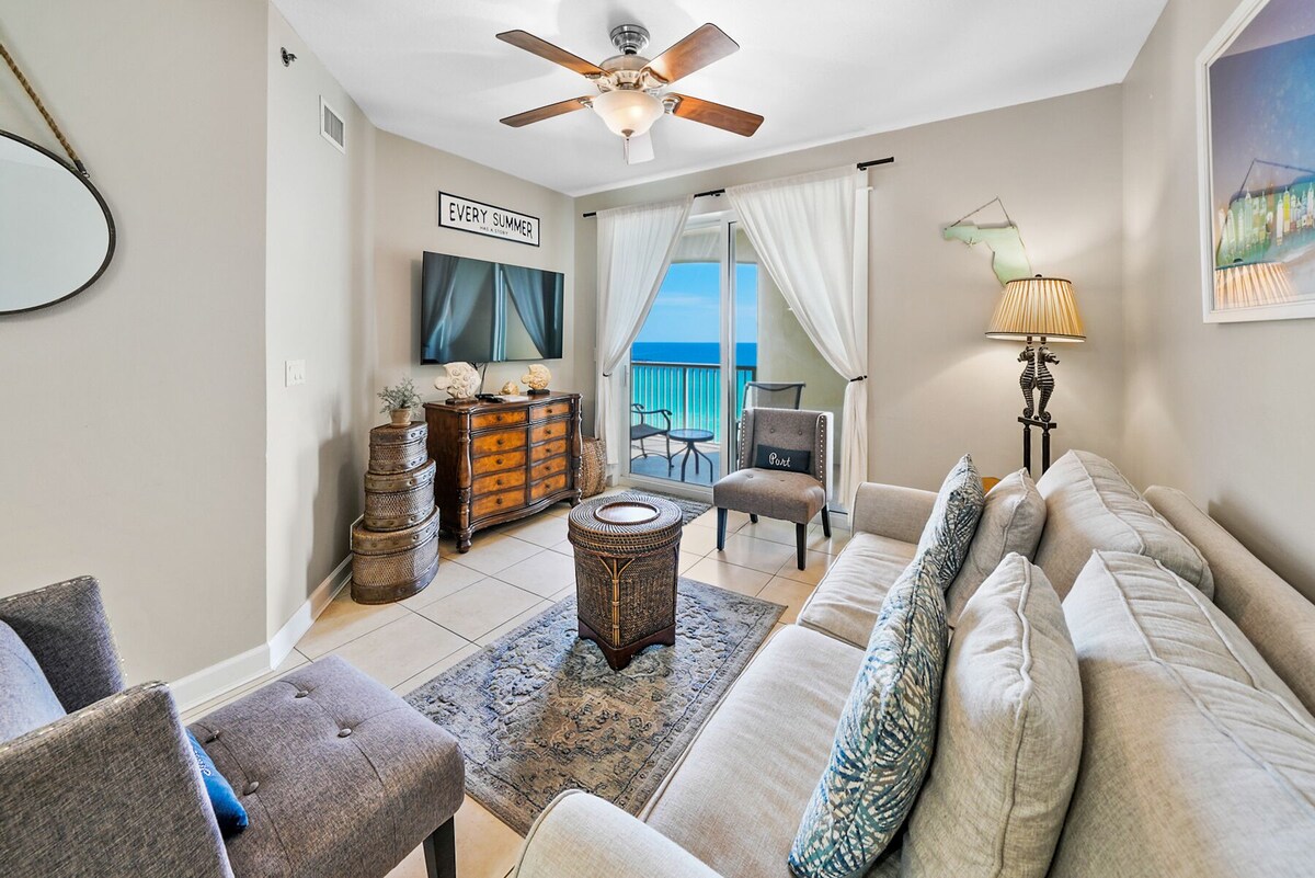 Welcome to Grand Panama 904!!! You will marvel at this fully renovated condo directly on the sparkling Gulf shores! Grand Panama Beach Resort is one of the newest and most luxurious resorts in Panama City Beach. Upon arrival at Grand Panama, you will notice the upscale quality and special touches that this fantastic property has to offer. Our beachfront unit #1-904 is on the 9th floor in the gulf front tower, with a direct view of the Gulf, pool, and white sand, just steps away from the beach, pools, tiki bar, and hot tubs. This unit has been completely redecorated this year with NEW and FRESH designer furniture and bedding. This is a fully-furnished 2 bedroom, 2 bath unit, with a bunk bed alcove area and queen-size sleeper sofa. This thoughtfully remodeled unit is brand new to the Warren Beach Rentals portfolio in March 2021.. Be among the first to enjoy 904. Enjoy free WiFi, cable, flatscreen smart TVs, and a fully-equipped kitchen with coffee maker, blender, and toaster. Watch the sun set right from your balcony while you enjoy dinner at your private patio table. Pets (dog only) considered up to 25 lbs with the exception of service pets. There is a $225 plus tax additional pet cost per dog and the pet must be registered in advance through the HOA. Grand Panama is the ONLY pet friendly modern condo on the gulf. Grand Panama HOA additional costs: The resort cost is $55.00 The resort cost includes 1 parking pass and wristbands for everyone in your reservation 13 and older. Wristband replacement is $10.00. Motorcycle parking is $55.00. Trailer Parking is $55.00 (only during bike week). An additional parking pass can be purchased for $35.00 during registration. Only two parking passes are allowed per unit. Guests bringing a pet to a Pet Friendly unit must register the pet in guest registration system. Pet Sleeves are $50.00 per sleeve. This upscale resort has all of the best amenities, including a massive pool and hot tub, an on-site fitness center, and a tiki bar with food and drinks right at your fingertips. This unit has a gulf front King Master with Balcony access and ensuite bath A guest bedroom with a queen bed and bath access Hall bunk alcove with twin over queen Queen sleeper sofa Generous balcony with commanding gulf views. This unit is located direct beachfront in tower one, on the 9th floor. unit 904 Saturday or Sunday check in/check out required in June and July WE STRONGLY ENCOURAGE TRAVEL INSURANCE DURING HURRICANE SEASON BETWEEN JUNE AND SEPTEMBER PLEASE NOTE….. STAYS BEYOND 14 DAYS ARE SUBJECT TO A NON-REFUNDABLE DEPOSIT… Our prices include all fees. No hidden fees.