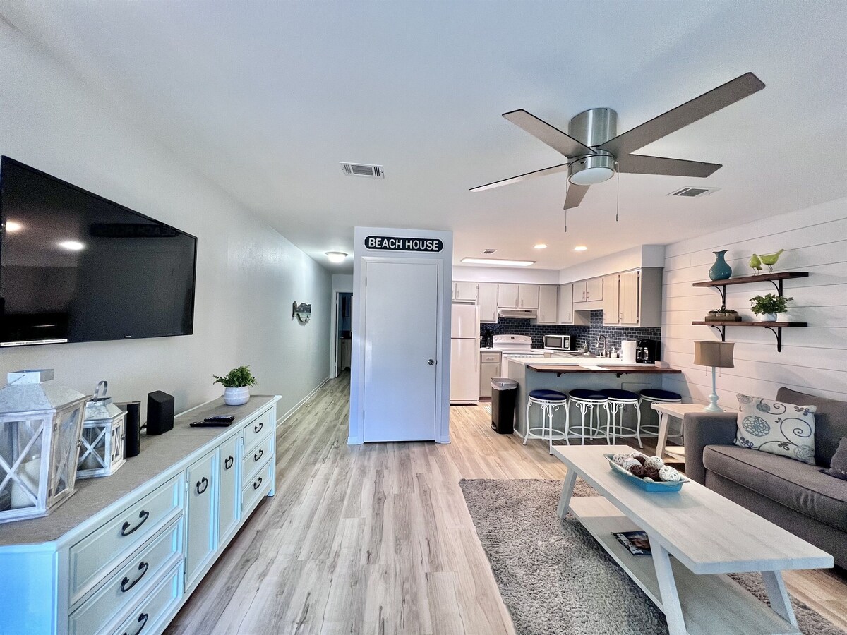 There is no better way to get some well deserved R&R than at Sunshine Villa! The condo is on the ground floor! You pull directly to your front door in the parking spot allocated just for you! No elevators or searching endlessly for parking! This cozy coastal retreat has everything you need to kick back and relax while just a 3 minute walk to the nearest beach access next to the Barefoot Tiki Bar so you'll have access to a full bar for refreshments while you lounge in the sun and watch the waves! There's also a green-space with a gazebo, great for picnics, and also a chair rental and water sports rental hut. Go play all dayand come back to Sunshine Villa to prepare a homecooked meal for the family and friends in your fully stocked kitchen and discuss the day's adventures and plan tomorrow's! This one bedroom condo easily and comfortably sleeps six while providing plenty of space for total relaxation, coastal vibes, and great community. The bedroom sleeps 2, there are 2 twin bunks in an alcove, and a queen sleeper sofa. There is a large green-space for a fun game of corn hole or to let the kids be kids. All within walking distance. Sunshine Villa is only a mile from Pier Park! You can't go wrong choosing Sunshine Villa for your vacation destination! WiFi, cable, Netfix, and Disney Plus with NO RESORT FEES! Don't delay and book today, We would love to see you at the beach! THIS PROPERTY ALLOWS 1 DOG. THERE IS A PET FEE OF $300.00. PLEASE LET US KNOW IN ORDER TO ADD THE PET FEE TO YOUR BOOKING. THANK YOU Our prices include all fees. No hidden fees.