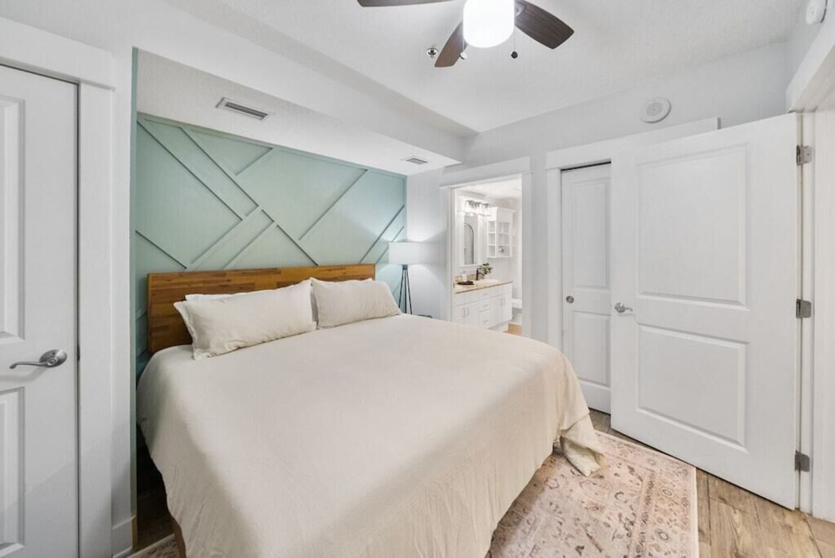 Emerald Overlook is a newly renovated condo that has gulf views from the over-sized balcony. It is also on the same floor as the heated pool, hot tub, and fitness center. No elevator wait! It makes it so easy to go back and forth to the condo. The beach is conveniently accessible by using the connecting air conditioned covered walkover. The private resort beach and emerald water is just steps away. The resort has 2 POOLS, HOT TUBS, KIDDIE POOL, a FULL SERVICE TIKI BAR, seasonal beach service, on-site fitness center, and retail shopping and coffee/ice cream shop all within the resort. The fishing Pier is also located within walking distance. The condo has 1 bedroom (King bed), 2 full baths, with a hallway twin bunk area. Sleeps 4 max. Ideal for a couple, or a family with kids. There are smart TV’s in the bedroom and in the living area. Cable and high speed Wifi provided in addition to Roku access to log into your favorite streaming apps- BYOP. The kitchen is fully furnished and has everything you need to stay home and cook, if you desire. NO SMOKING allowed. SMALL DOGS CONSIDERED (up to 2 dogs, under 25 pounds each). Pets must be up-to-date on vaccinations prior to the stay. There will be a non-refundable $100 pet deposit fee (Per pet, limit 2). Message owner to confirm breed and weight prior to booking as the resort does not allow certain breeds. We offer key-less entry check-in and check-out. The resort offers gated access with 24-hour security and covered parking. Upon arrival, a $50 Resort fee and $20 pet fee (if applicable) will cover your parking pass for the entire stay and wrist bands! Please register your stay with the resort prior to stay- host will send you instructions and more information prior to your stay. Need a bigger unit? check out my 2 bed/ 2 bath at vrbo.com/3303594 Our prices include all fees. No hidden fees.