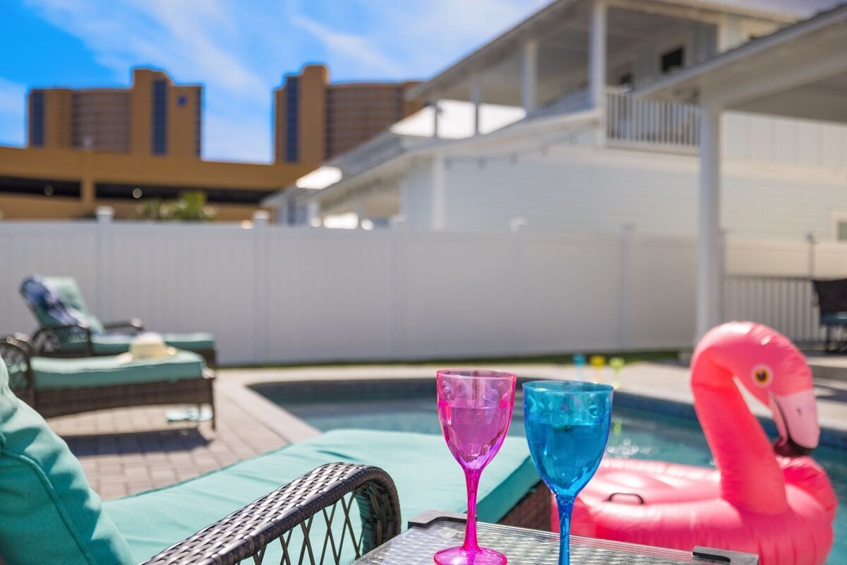 Welcome to \ - this 4 bedroom, 3.5 Bath House: Sleeps 12 and offers a private pool (heated seasonally), Outdoor Dining, Game Room & is just across from the beach, a short 5 min walk to the beach. This home is the perfect beach get a way for the entire family. Located on the quiet end of PCB & close to 30A, close to Beach access 80, a short 5 min drive to Pier Park, Frank Brown Park Sports Complex & Shipwreck Island. This home will be an amazing place to make great memories. This spectacular beach house features a private pool and large backyard. The large open concept floor plan allows for maximum enjoyment among all guests. All living areas overlook the lushly landscaped private pool and spacious backyard which is designed for entertaining or just relaxing or taking a nap. The spacious patio features dining table and 6 chairs. The stunning kitchen is a chef's dream. Stainless steel appliance, quartz countertops, pot-filler, farmhouse sink, and two coffee makers are just some of the features in this fabulous kitchen. Overlooking the pool and back porch, the dining area farmhouse table offers plenty of seating. The oversize kitchen island also has seating for an additional 2 guests. Meal Prep will be a breeze in this well stocked & large kitchen. The living area has exquisite craftsmanship including crown molding and tray ceiling. The inviting seating group in the living room offers plenty of seating. The private master suite, located on the first level overlooking the pool and adjacent to the open concept living space, features a king size bed, flat screen TV, ceiling fan and en suite master bathroom with granite counter tops, double vanities, full size walk-in shower, spacious walk-in closet, blow dryer, make-up mirror and separate lavatory room. The second master suite, located on Level 2 overlooking the pool, features a king size bed, flat screen TV, ceiling fan and en suite master bathroom with granite counter tops, double vanities, full size walk-in shower, spacious walk-in closet, blow dryer, make-up mirror and separate lavatory room. Bedroom 3 is located just down the hall and features a queen bed and flat screen TV, ceiling fan, spacious closet. Bedroom 4 has a Twin/Full bunk bed & chair that opens to a single sleeper and TV, ceiling fan, spacious closet. Bathroom 3 is located between bedroom 2 and 3 and features a tub/shower combination. There is also a separate sitting area on level 2 with 2 Arcade games, tv & sofa sleeper. The living area opens to the luscious outdoor pool complex which features the private pool, spacious walkways and large gathering deck which has a gas grill and abundant seating for the entire family and enclosed with a privacy fence. After a day at the beach, kick back and relax poolside in your private oasis. The house also includes a dedicated laundry room with a full-size washer and dryer. The property can accommodate up to 4 full size vehicles. Please do not park on the street. Located on the quiet West End of Panama City Beach and close proximity to 30-A, this house is perfectly situated to take advantage of everything the world class beaches of north Florida have to offer. Beach Access 80 is at the end of the street, just 1.5 blocks (0.2 miles) and leads to the secluded beach which provides more serenity compared to the beaches to the east. A close drive to Pier Park and scenic 30-A. Also a short drive (less than 5 miles) is Frank Brown Park Sports Complex and the New World Class Panama City Beach Sports Park which hosted its inaugural event in July. 2019. Shopping, world class restaurants, entertainment and Shipwreck Island Water Park. Please read before booking: Please note prior to booking there is a 25-age requirement to book this house. Person who books must be 25 at the time of booking & present during the entire stay. Please also, note everyone in the party must be 25 or older unless under 18 & accompanied by somebody 25 or older. This is strictly enforced. We do not allow 3rd party bookings. Failure to meet minimum age requirement of all guests upon check in guests will be evicted and will not be refunded for the stay. After booking a signed rental agreement, pool waiver, & a copy of the person driver's license who booked will be requested. Rental Agreement, pool waiver, & Driver's license must be sent back within 48 hours of booking to secure your reservation. If no signed rental agreement, pool waiver, & driver's license is sent back within 48 hours guests forfeit reservation & will not be refunded. This property does not allow Spring Breakers under 25 years of age. Please do not inquire asking if exceptions are made there are no exceptions made to this policy. This house is dog friendly – 1 dog: 25 lb. weight maximum, with a $150.00 nonrefundable pet fee, being requested after booking, once you register the dog on the reservation. No puppies or cats. Absolutely no exceptions. Your pet is not allowed on furniture or beds and all waste must be cleaned up prior to check out. Additional fees will apply if waste is not cleaned up, damages occur, or extra cleaning is required by housekeeping. Your dog will not be allowed to use the bathroom in the fenced in back yard. The backyard has fake grass so your dog using the bathroom in the back will damage the grass. There is a designated area in the front where your dog should go. This rule must be followed, or additional charges will apply. Please do not allow you dog in the pool. Dog hair causes filters to clog. If you do you will be responsible for the trip charge for our pool tech to come out. Please keep your dog out of the pool. If the dog is left alone inside the home the dog must be crated. No exceptions. If an emergency or a maintenance issue were to arise our team will need to be able to access the home safely. Absolutely no exceptions. No unregistered guests allowed in the property; violation of this rule will result in immediate eviction with no refunds given. We do not allow extra guests