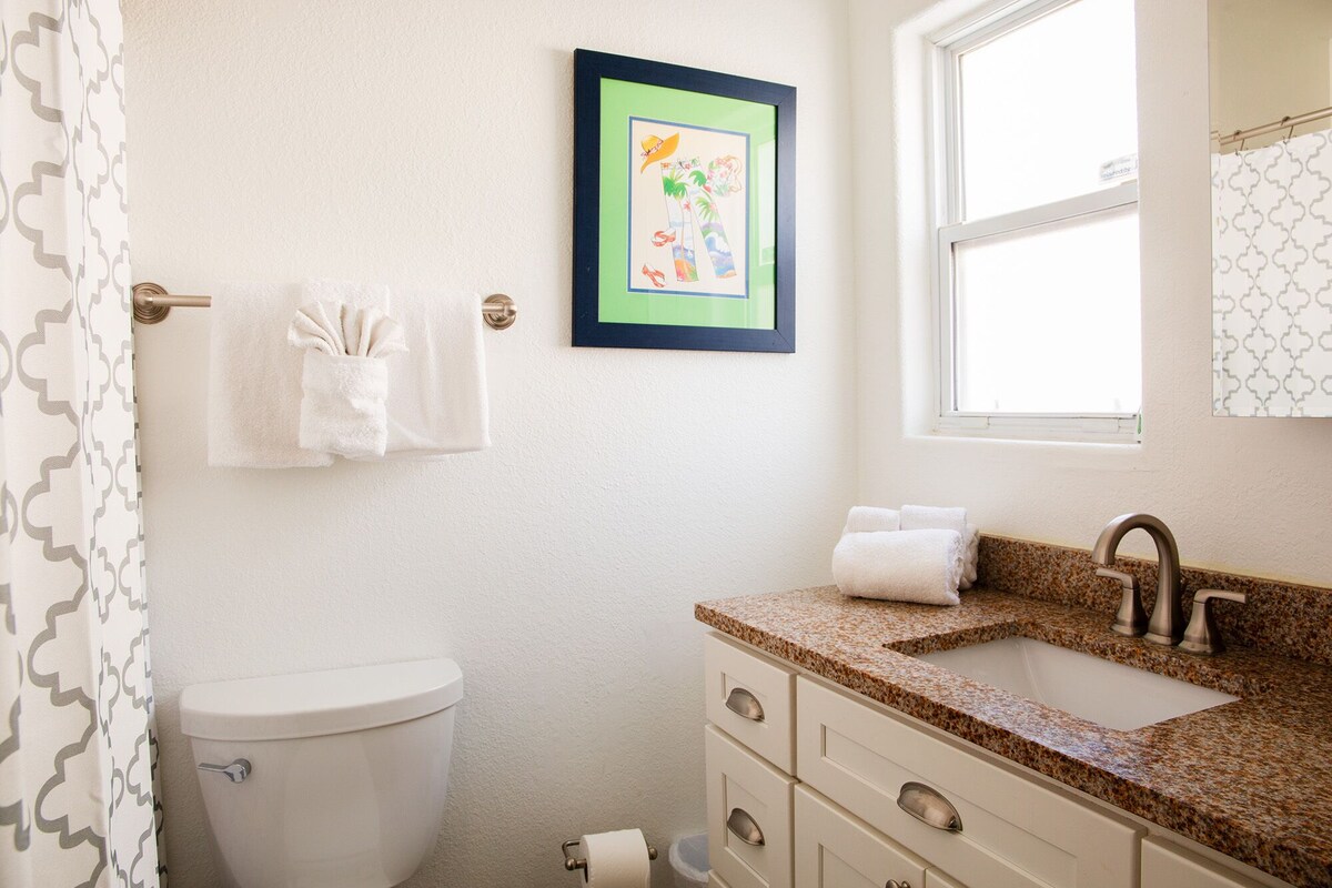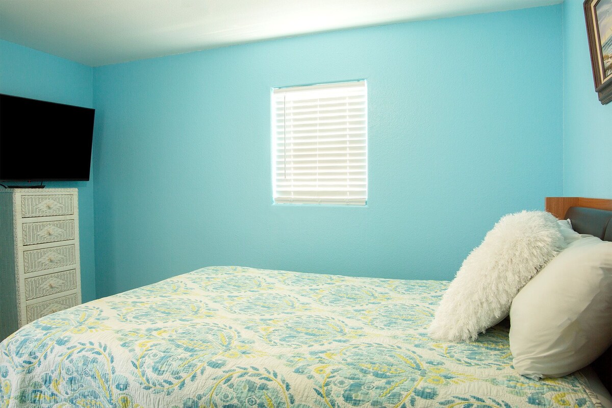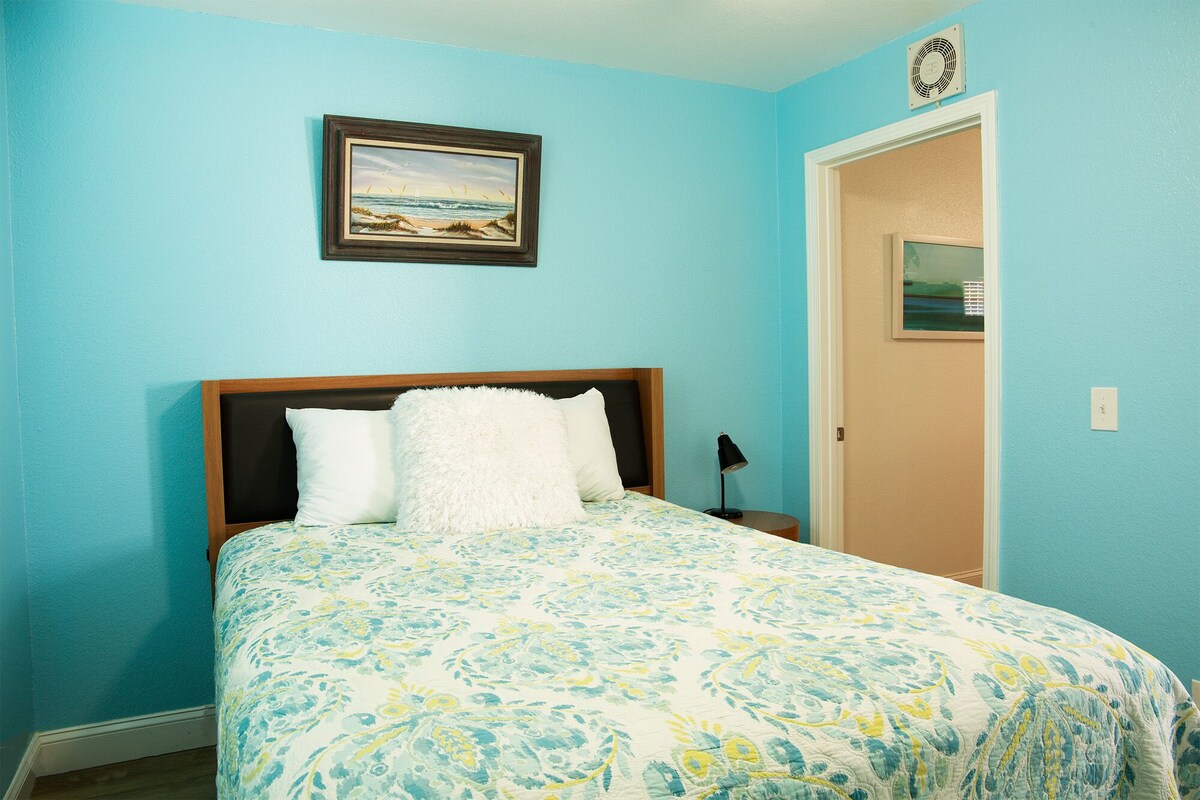 Welcome to your cozy downstairs charming one-bedroom vacation rental condo, tucked away from the hustle and bustle of the high-rise resorts. This hidden gem condo is perfect for those seeking a peaceful and private getaway. The spacious one bedroom boasts a comfortable queen-size bed full bathroom and plenty of natural light, perfect for catching up on some much-needed rest and relaxation. The living room area includes Flat screen TV, FREE WIFI and a queen-size sofa bed, creating additional sleeping space for up to two extra guests. The full kitchen is equipped with everything you need to whip up your favorite meals during your stay. You'll find a stove, oven, refrigerator, microwave, coffee maker, and all the utensils and cookware you need to prepare delicious homemade meals. One of the best features of this vacation rental is that it is pet-friendly, so feel free to bring along your furry friend to enjoy your vacation with you. The complex includes a shared pool for guest only, perfect for taking a refreshing dip or lounging in the sun with a good book. When you're ready to hit the beach, you'll be just a short walk away from the sparkling blue waters and sugar-white sands. Imagine waking up in the morning, sipping your coffee on the porch, and walking down to the beach for a peaceful and serene start to your day. This vacation rental is located on a quaint and quiet street, away from all the high-rise resorts and crowded beaches. Instead, you'll enjoy a more relaxed and tranquil atmosphere, perfect for unplugging and unwinding. Although you're away from the hustle and bustle, you're still close enough to all the local attractions and restaurants. Enjoy a day of exploring the local boutiques and shops, or treat yourself to a delicious meal at one of the nearby restaurants. In summary, this one-bedroom vacation rental is the perfect spot for those seeking a peaceful and private getaway, away from the crowds and high-rises. With a full kitchen, pet-friendly policy, pool, and easy beach access, you'll have everything you need for a relaxing and unforgettable vacation. Book your stay today and start planning your perfect beach getaway! Coin laundry available in the pool area. Our prices include all fees. No hidden fees.
