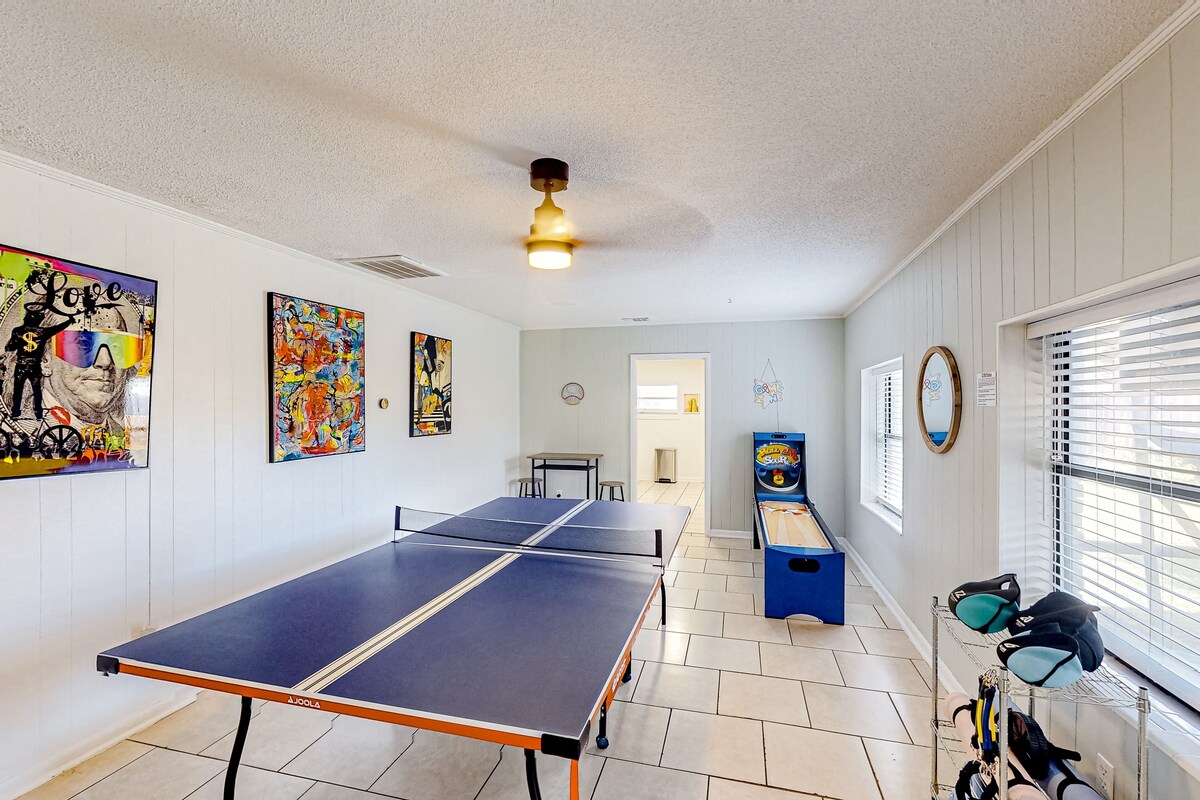 Beach Life Our calendar is updated in real-time & our nightly rates are accurately displayed. Simply enter your desired dates and click 'Book Now!' Location, location, location — you’re a three-minute walk to three separate beach access points when you stay at this spacious home in Panama City Beach! Inside, you’ll find plenty of room to spread out over the 3,000 square feet of living space. Grab a cup of coffee and hang out together on the screened lanai in the morning before heading out to explore. A furnished rooftop deck offers another outdoor space to breathe the coastal air. At breakfast time, there are two full kitchens — and three refrigerators — so you can easily whip up a meal to feed a crowd. Both kitchens feature a full suite of appliances and one of which has been recently upgraded. Two dining tables for four provide plenty of seating space for the whole group to eat together. After you eat, it’s time to head to the beach. You’re less than 0.1 mile away, and you’ve got three public access points to choose from. And best of all, you’re close enough to run home during the day for lunch, snacks, or a nap. You’re also walking distance to lots of shops, bars, and restaurants. As the evening comes to a close, gather together in one of two seating areas – one featuring a sectional, and one with matching double futon couches – to watch a little TV. Kids and adults alike will appreciate the game room, complete with Ping-Pong and skee ball. You'll also love the brand-new dressing room with two vanities, and at bedtime, you'll have four comfortable rooms to choose from. A Pack 'n Play is provided for those traveling with little ones. House Rules Check-in time: 4:00 PM. Check-out time: 10:00 AM. All guests shall abide by Vacasa’s good neighbor policy and shall not engage in illegal activity. Quiet hours are from 10:00 PM to 8:00 AM. No smoking is permitted anywhere on the premises. If you are bringing a dog on your trip, the pet fee is already included in your quote when selecting ‘Yes’ to pets. If you would like to add more dogs, please contact us. Parking notes: There is free parking available for 6 vehicles. Please note: this home resides in a noise-sensitive area and the owners participate in our Good Neighbor protection program. Our smart home technology will alert our team if excessive decibel or occupancy levels are detected, allowing us to reach out directly with a reminder of maximum occupancy and quiet hours. This technology is privacy compliant, and only monitors the presence of decibels and devices-not any personal conversation or information. Thank you for supporting our efforts to be good neighbors! Damage waiver: The total cost of your reservation for this Property includes a nightly damage waiver fee, plus tax if applicable (the “Damage Waiver”). (A discount may be applied for stays of 28 nights or longer, if permitted.) The Damage Waiver covers you for up to $3,000 of accidental damage to the Property or its contents (such as furniture, fixtures, and appliances) as long as you report the incident to the host prior to checking out. The Damage Waiver fee eliminates the need for a traditional security deposit. More information can be downloaded from the \ on the checkout page. Due to local laws or HOA requirements, guests must be at least 25 years of age to book. Guests under 25 must be accompanied by a parent or legal guardian for the duration of the reservation. Our prices include all fees. No hidden fees.