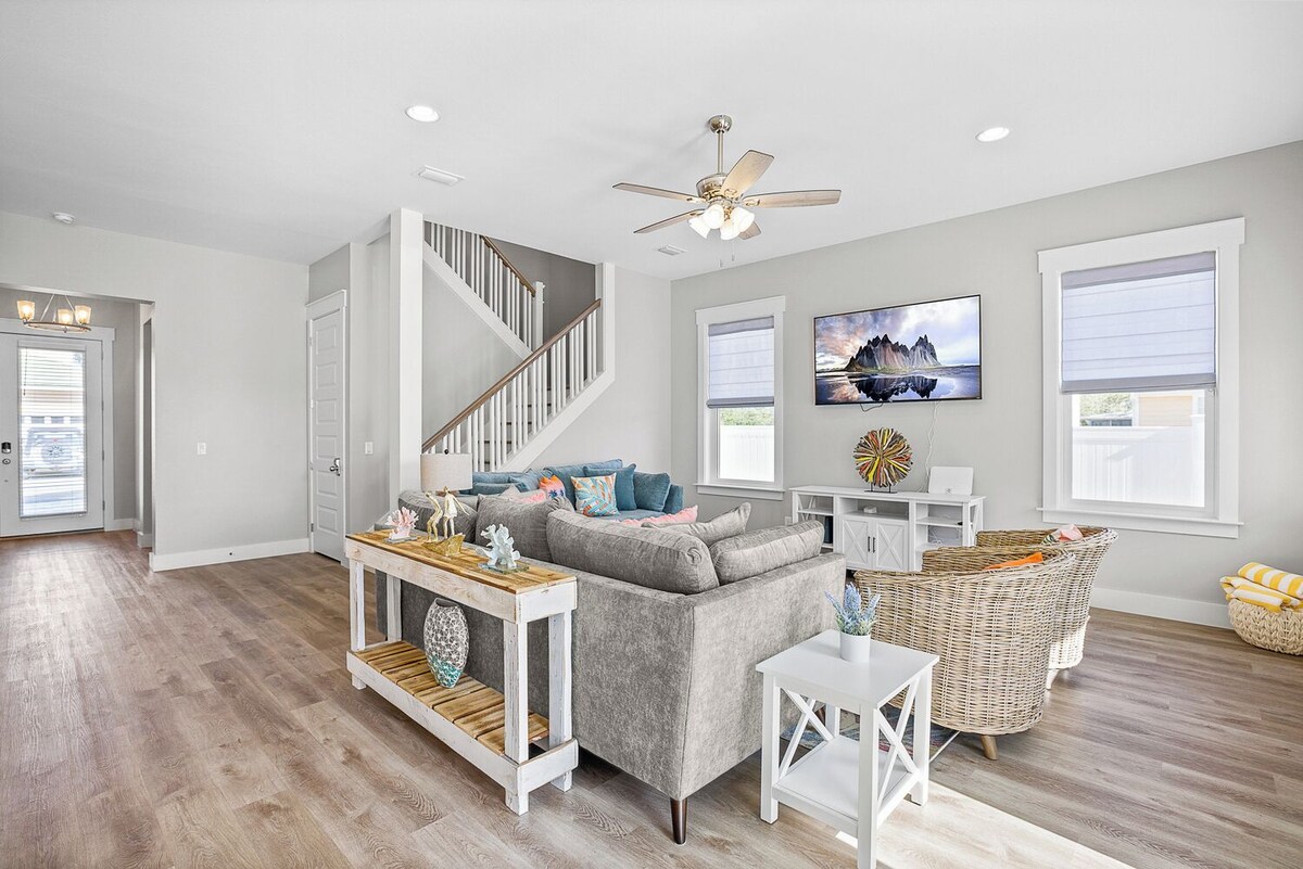 OCT PROMO: Book 3+ nights in October, get additional 8% off nightly rate. Must inquire before booking. New bookings only. Treat yourself to the ultimate beach escape at MIGHTY SEYCHELLES, Mighty Vacay's brand-new home located just a steps from the beach in PCB! * Newly construction beach home * Private, heated salt water pool * 1 block to beach * Walk to shopping and restaurants * 6 Bedrooms and 4.5 bathrooms * Lux, modern decor & furnishings * Brand-new chef's kitchen * TV family room with 55\ Flat-screen Smart TV | Queen sleeper sofa (2) *ALL TVs have Roku/Smart technology for you to watch all of your streaming accounts, including Netflix, Disney+, and more! ENTERTAINMENT + FAMILY ROOM 55\ x24 deep | 3 lounge chairs | charcoal grill | patio dining table and lounge (6) | outdoor shower PARKING: * Private parking for up to 2-3 cars in the front driveway, depending on vehicle size. * All cars must be parked in driveways, out of any public right of way or lawn areas. The City of Panama City Beach enforces local ordinances to stop illegal street parking and overcrowded parking conditions. Fortunately, the city offers 3 overnight paid parking lots you can use during your stay. OTHER KEY FEATURES: * Laundry: NEW side-by-side, full-sized washer + dryer located in the upstairs hall closet. * Fast WiFi. STARTER KIT OF ESSENTIAL SUPPLIES 1 roll of toilet paper per bathroom | hand soap | 1 paper towel roll in kitchen | dishwashing soap + sponge | 2 trash liners | basic seasonings *We provide this "starter" set of supplies to get you started on your stay. Please plan on bringing or purchasing extra supplies, as needed. PERSONAL SUPPLIES While we are happy to offer our home at a more affordable rate than at a hotel, there are some features we don s room fee. PROPERTY USAGE Use all furniture, appliances, home goods as intended | no parties or large events | no smoking/vaping indoors | no illegal uses allowed | no drugs allowed | no fireworks allowed onsite MINIMUM AGE Must be 25+ years to book this house. MAXIMUM CAPACITY Mighty Seychelles sleeps up to 14 guests. Guests above the maximum capacity will be charged extra per night. PETS CONSIDERED Up to 2 non-aggressive breed dogs only. Pet fees are required for pet and emotional support dogs. If you would like to explore bringing your dog(s) on your trip, be sure to contact us PRIOR to booking in order to learn about Mighty Vacay ,