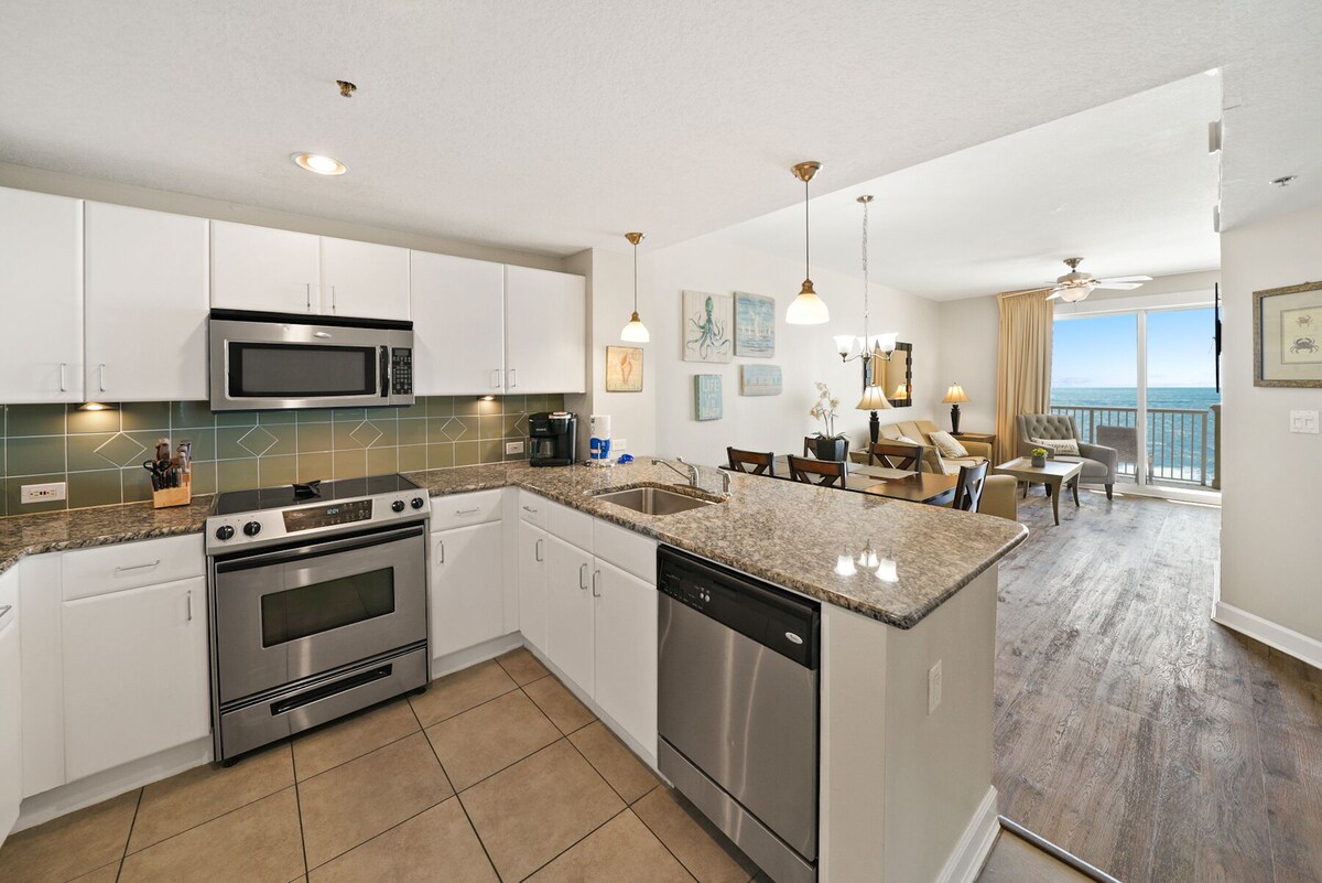 🌊 Beachfront Family Escape at Grand Panama 1405 – Incredible Views + Resort Amenities! 🏖️ Warren Beach Rentals is proud to present Grand Panama 1405, a family-favorite beachfront condo with unmatched Gulf views, stylish decor, and access to resort-style amenities. Located in the heart of Panama City Beach, this 14th-floor Gulf-front condo is just steps from the sand, pool, tiki bar, and hot tub – perfect for your next beach getaway! 🛏️ Sleeps 8 Comfortably – Perfect for Families! Gulf-front King Master Suite – Wake up to ocean views + balcony access + ensuite bath Queen Guest Room – Private & cozy with bath access Bunk Alcove – Kids LOVE the twin bunk beds tucked away for fun & privacy Queen Sleeper Sofa – Extra space for teens or additional guests 🛁 2 full bathrooms, spacious and updated 🍽️ Fully equipped kitchen – Includes coffee maker, blender, toaster, and everything you need 📺 Flat-screen TVs, FREE WiFi & cable throughout 🌅 Private balcony – Enjoy unobstructed views of the beach and breathtaking sunsets 🐶 Pet charge of $225 plus tax for dogs up to 25lbs. Two dog per unit per stay 🌟 Why Families Love Grand Panama 1405: ✅ Located in Tower 1 – Direct Gulf Front ✅ Massive resort-style pool, bubbling hot tub, and tiki bar with food & drinks ✅ Fitness center, BBQ grills, and quick beach access ✅ Modern décor & cozy coastal vibe – just remodeled and newly added to Warren Beach Rentals ✅ Spacious layout for families or two couples with kids 📍 Unbeatable Location: Right in the center of Panama City Beach, near family-friendly restaurants, shopping, mini golf, and attractions like Shipwreck Island Waterpark, Pier Park, and Gulf World Marine Park. 🐾 Pet Policy Small dogs only (25 lbs or less) Additional Pet charge of $225 applies and pets must be registered with HOA in advance Grand Panama is the ONLY modern, pet-friendly Gulf-front condo in PCB! 🚗 Resort & Parking Info: Grand Panama HOA charges for Parking at the Resort. $55 (includes parking pass + wristbands for guests 13+) Additional parking pass: $35 Motorcycle & trailer parking: $55 (available only during bike week) Pet registration sleeve to the HOA: $25 🚭 House Rules: Primary renter must be 25+ No smoking or vaping in the condo No parties or events 📅 Book now and make lifelong memories at Grand Panama 1405! Whether you're planning a summer beach trip, fall break, or winter escape, this family-friendly condo is your perfect home away from home on the Gulf. Our prices include all fees. No hidden fees.