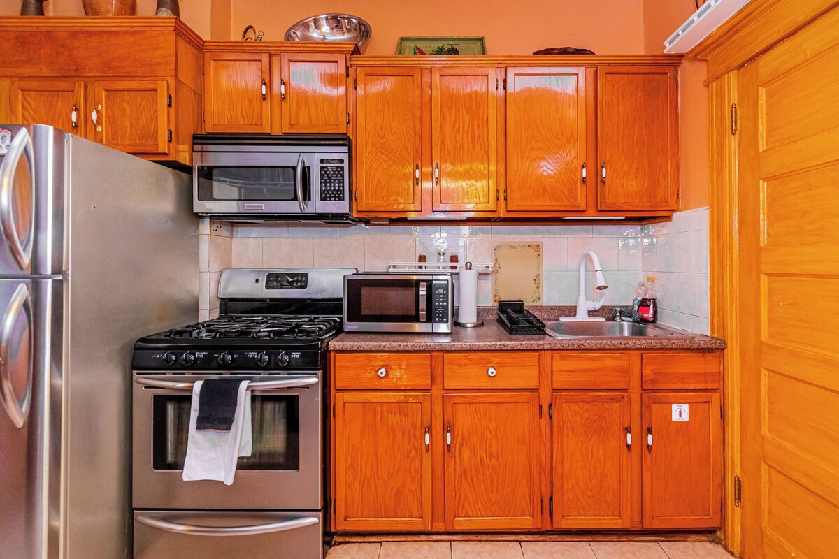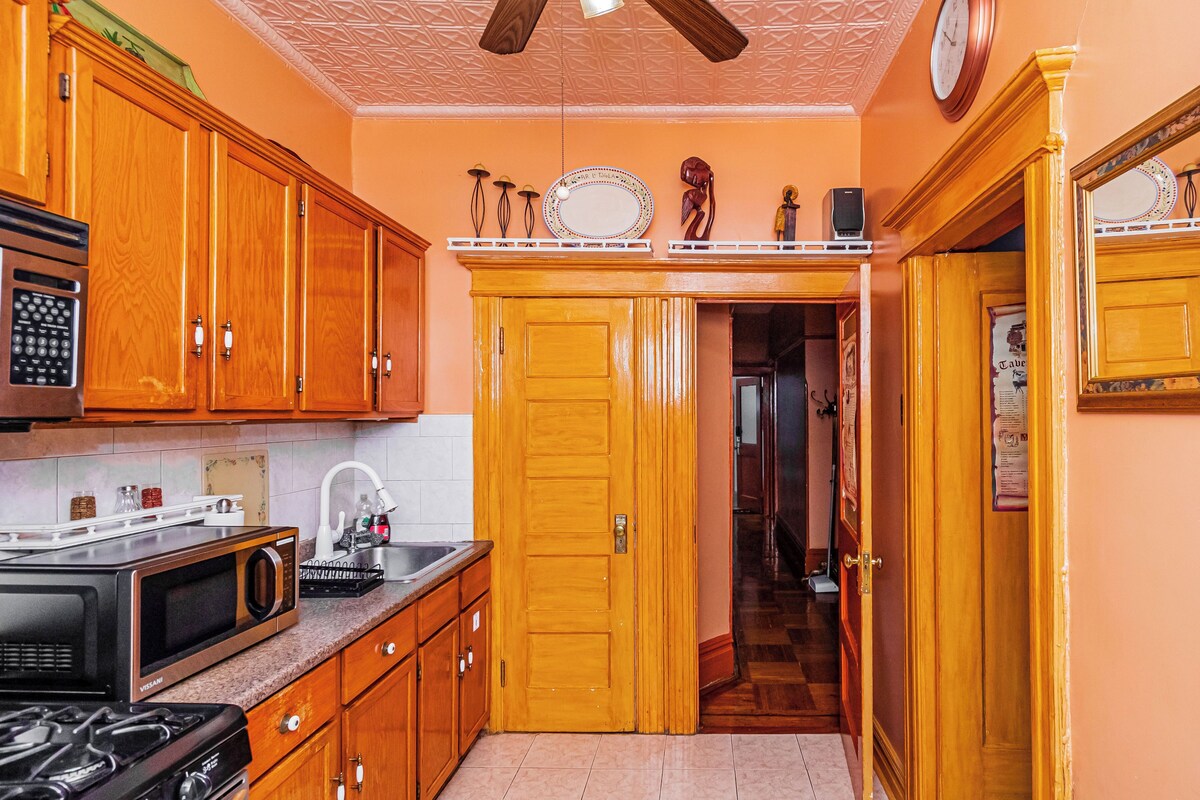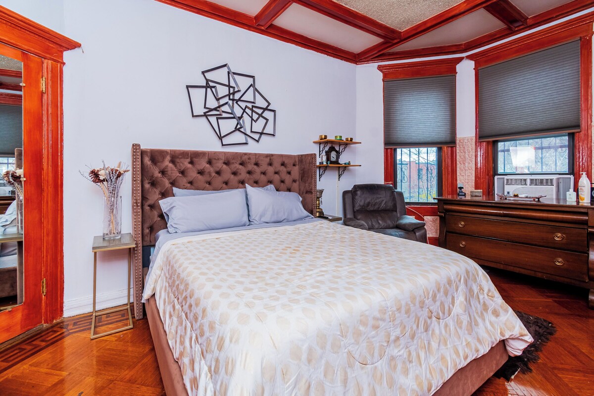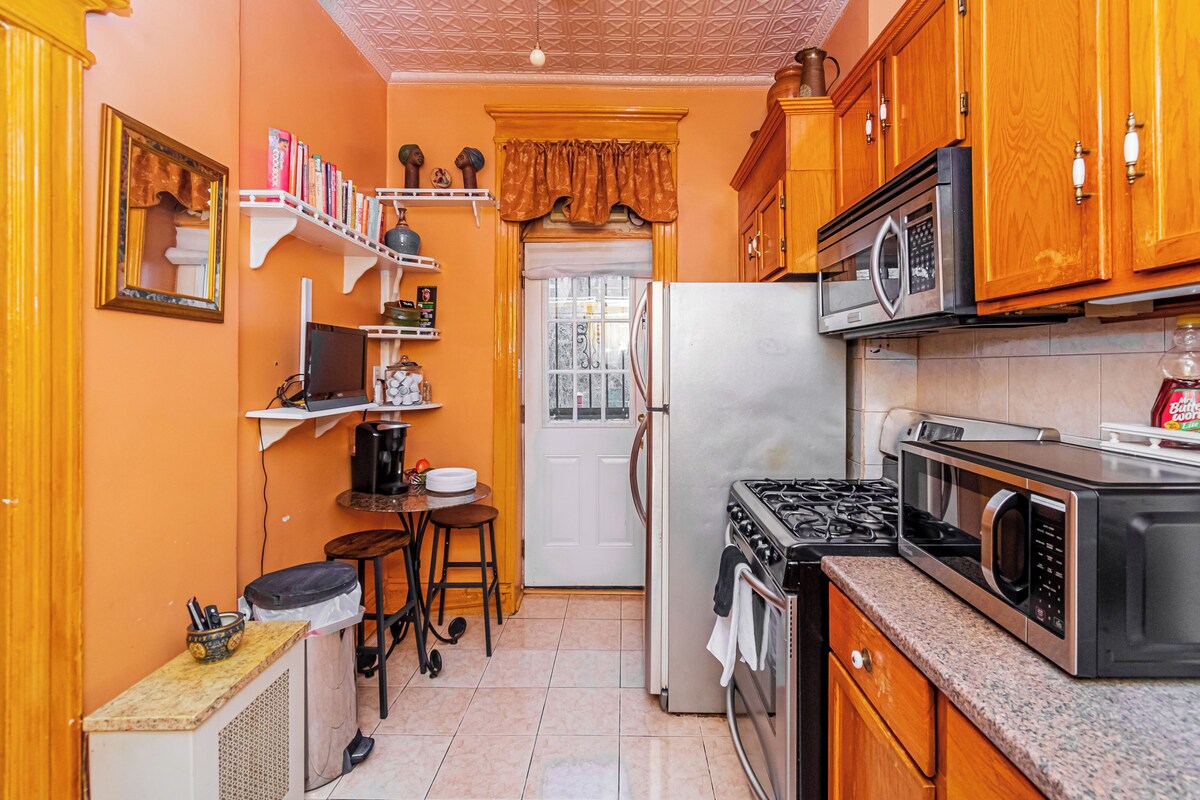 Make some real memories at our beautiful Brooklyn Brownstone! Relax with the whole family at this peaceful place to stay. Beautiful two bedroom, one bath with all amenities included. Own entry, big beautiful ceilings and windows, custom made bar and balcony with grill, hammock and patio set. Our prices include all fees. No hidden fees.