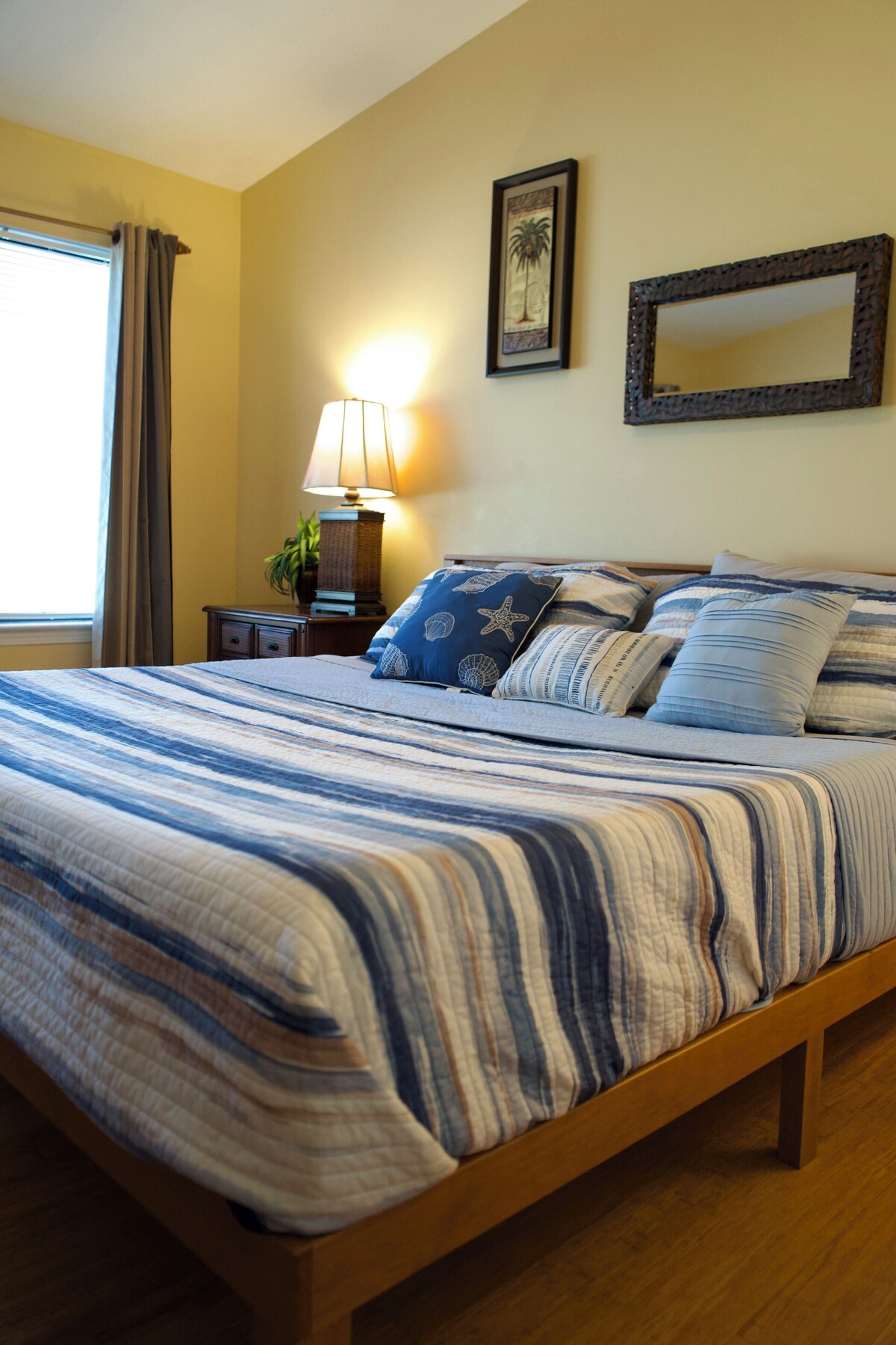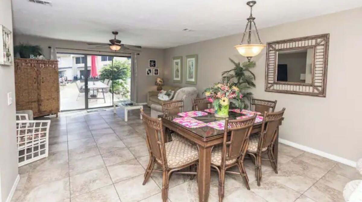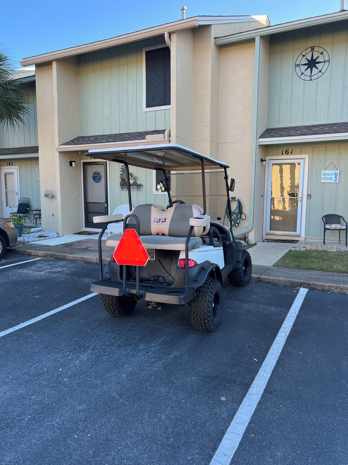 Flip-Flop Time! Enjoy your relaxing stay at this spacious, recently newly renovated modern beach bungalow. This townhome features a two story layout with two bedrooms and their connected full bathrooms upstairs with a full living room, kitchen, and half bath downstairs. The unit comes fully furnished with a king bed in master bedroom with full bath, two queen beds in second bedroom with full bath, and a pull out couch downstairs with a half bath. Also a GOLF CART for use in the resort and you can bring your furry friends too as we're PET FRIENDLY TOO! As we're just a few minutes from the most beautiful sandy beach, you'll sure be glad you came! The Resort Includes the following: Gated Community (24/7) Shuffleboard Courts 11 pools (5 heated seasonally) Fitness Center Putt-Putt Course Pickle Ball Courts Playground Beach front pool Beach front restaurant and bar Free Wi-Fi 2 assigned parking spaces Business License number 53180 Our prices include all fees. No hidden fees.