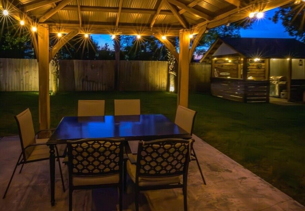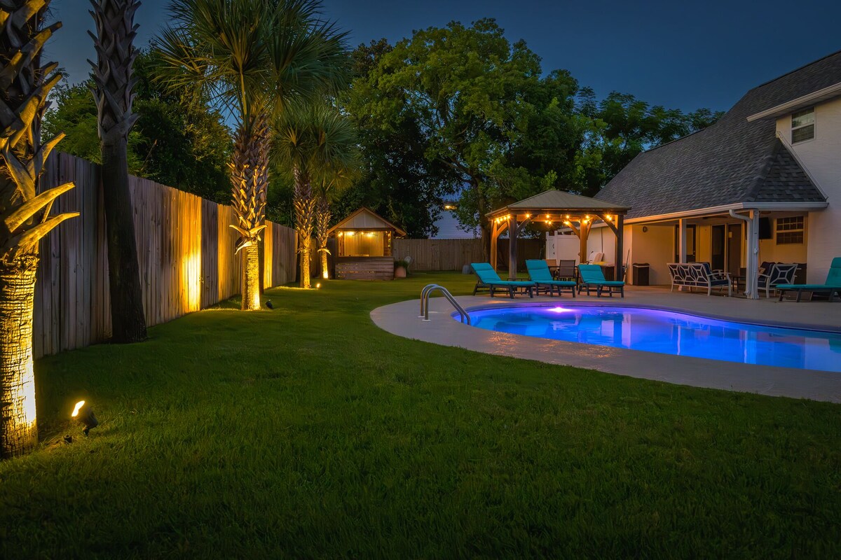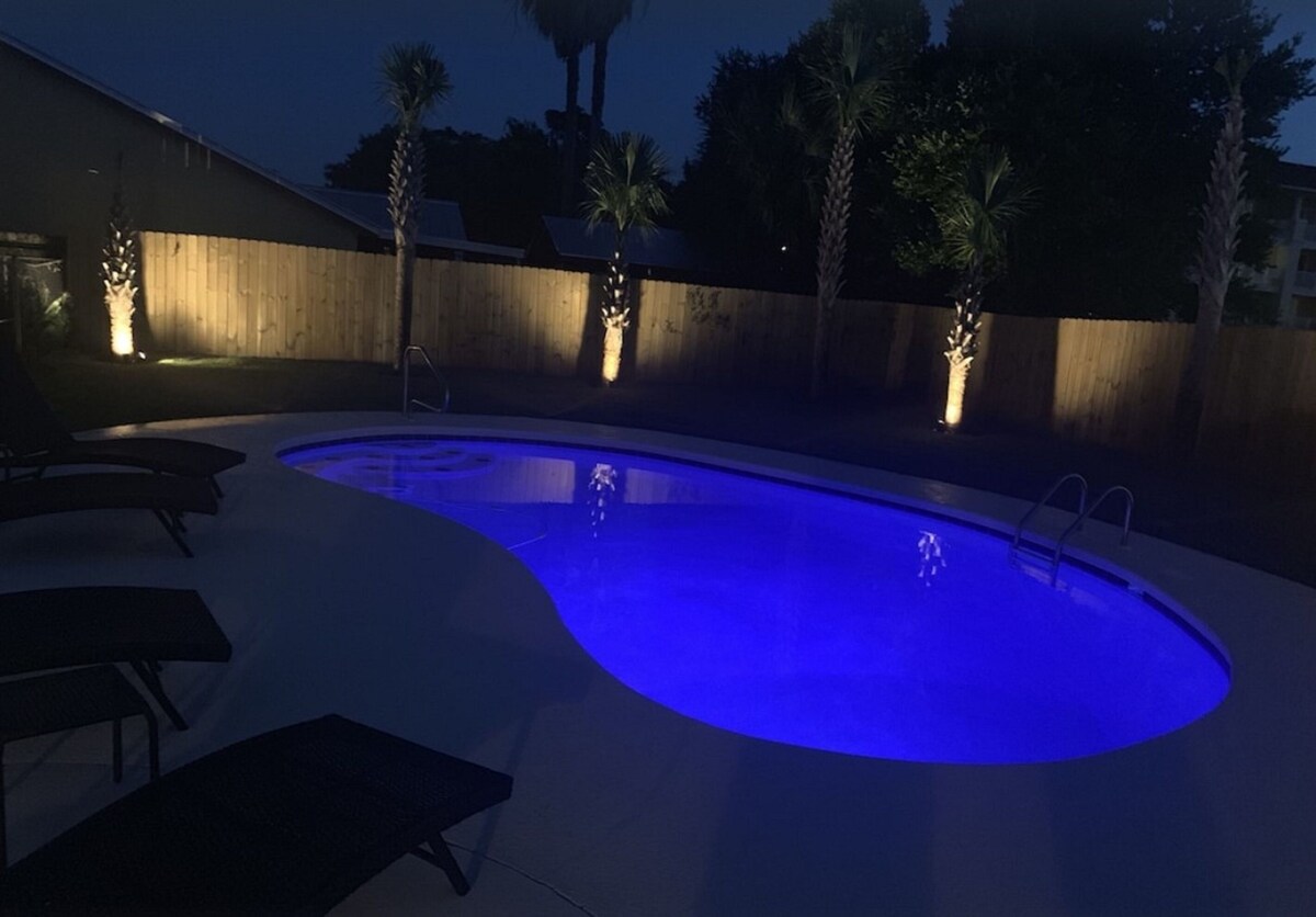 Welcome to the FLIP FLOP STOP! This large 4 bedroom home is located in the quiet west end of Panama City Beach and is dog friendly, you can have 2 dogs with a limit of 25 pounds each for a nonrefundable fee. Far from the hustle and bustle yet close to the beach and Pier Park. The perfect place for a family beach getaway! The owners have just completed a complete renovation with new paint, furnishings, and outdoor fire pit and much more. Carefree check in is easy. You’ll get an access code for the home so that you can go directly to the house without checking in at some office. Plus, there’s room for up to three vehicles. Let’s take a tour: Outside You’ll really enjoy the outdoors of Flip Flop Stop. From the heated private pool (which you can heat for a small extra charge) to the outdoor kitchen and bar and fire pit there’s plenty to enjoy here. And there’s room for rover to room too. And if you want to catch the latest game while you’re outdoors there’s a 55” SMART TV on the patio! But that’s just the beginning. For all you bikers, car enthusiasts, and fishermen, there’s enough parking space for your boat or your enclosed trailer. First Floor When you step in the downstairs area, you’ll see the large living room with 55” SMART TV mounted on the wall and the seating surrounding it so there’s plenty of room to relax and watch your favorite shows after a day at the beach. There’s also a queen sleeper for extra sleeping space. From there check out the large dining table with seating for 10. Family dinners every day! Next to that the large kitchen with new stainless appliances, granite counters and refreshed cabinetry. It’s ready for you to fix the family meals whenever you want. When the kids are done eating, they can head to the game room that’s equipped with both a pool table and an air hockey table. Let the games begin. The master suite downstairs has a king bed, large SMART TV and an ensuite bath with tub/shower combination. The second bedroom has a Queen bed. Second Floor Head upstairs where the second master has a king bed 46” SMART TV and a balcony for outdoor relaxing when you’re not around the pool or the firepit in the backyard. The loft bedroom has 3 queen beds and a 55” SMART TV. There’s a bath equipped with a tub/shower combination for everyone upstairs. Make sure you book your vacation early! FLIP FLOP STOP is booking up for spring break and summer. You must be at least 25 years of age to rent this property. During Spring Break , the minimum acceptable ratio is one (1) person 25 years of age for every two (2) persons under 25 years of age. Our prices include all fees. No hidden fees.