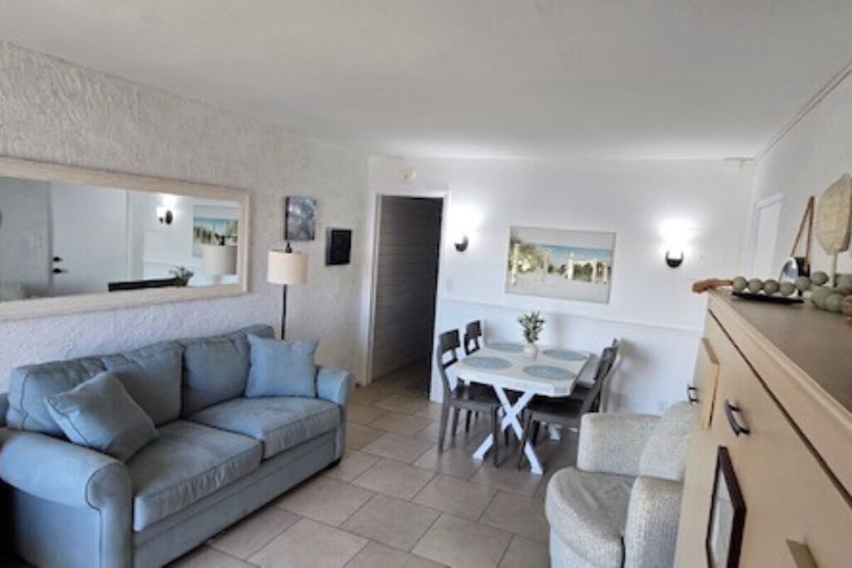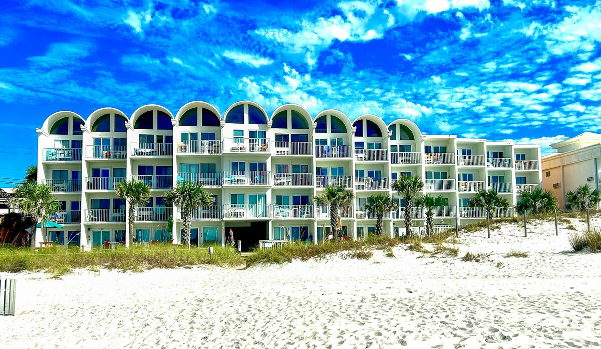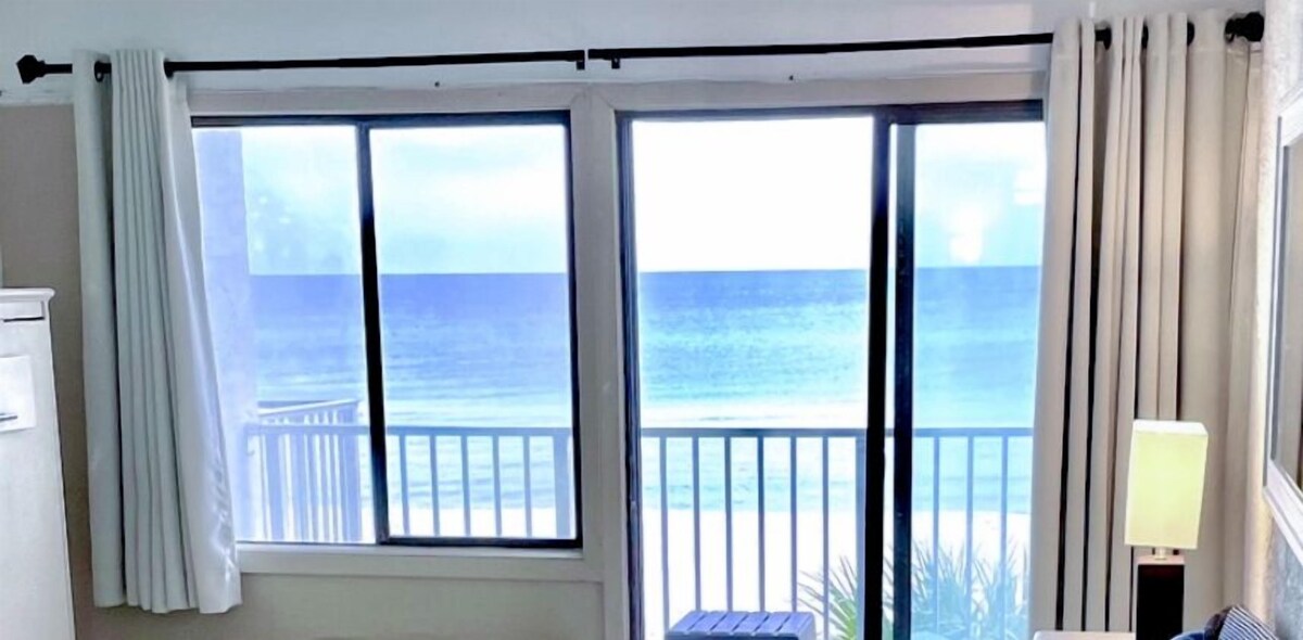 Imagine walking out to the patio each day and admiring the stunning views of miles and miles of beaches and white sand. This condo is also equipped with a full kitchen, one full bath, one king bed, and a Murphy bed. A laundry room is also available, but not in the condo. This condo is a non-smoking unit and small dogs are permitted in the condo but no cats please. Sorry, there is no elevator available, but we are on the second level so only one flight of stairs up. If a prime location is what you are looking for, then you have found the right spot. This cozy oceanfront condo is perfectly located on the West End of Panama City Beach. We are located right across the street from Shuck'ems Oyster Bar and Grill with many other fabulous restaurants right around the corner. This condo is located in a trendy area just minutes from Pier Park shopping and entertainment complex, Frank Brown Sports and Aquatic Center, Walmart, City Pier, and Gulf World Marine Park. Free Parking - There is only one parking spot per stay. Your parking pass will be in the condo upon arrival. Make sure to have your pass visible in your car at all times. Other amenities include a pool, a hot tub, 3 BBQ grills, and a volleyball net which are all located on the condo premises. A non-refundable pet deposit ($50) for those who have their 4-legged friends traveling with them. Also, for anyone who is under 25 y/o, we will require a $100 deposit for any damages. This is also fully refundable upon inspection after your stay. Our prices include all fees. No hidden fees.