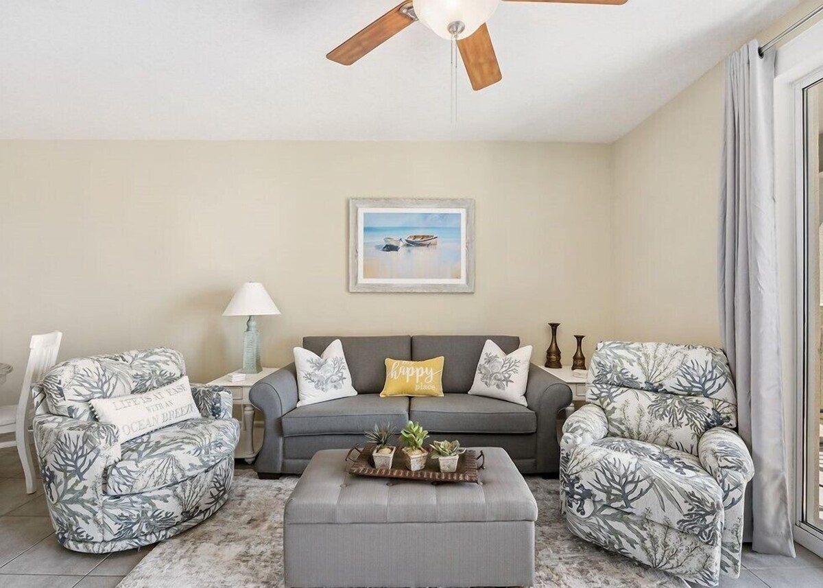 Welcome to Grand Panama 2 - 204. If you are looking for a Panama City Beach vacation rental that offers you incredible views of the world's most beautiful beach, our 2 bedroom, 2 bath vacation rental condo that sleeps up to 8 is just the spot for you and your family. The balcony here gives you the best spot for beautiful beach and gulf views as well as seeing all the action on Front Beach Road. And get ready to enjoy the magnificent sunsets in the evening. Plus, everything is so close. Taking your fur baby for a walk or enjoying the beautiful swimming pool hot tub or grilling out is just a short elevator ride from the 2nd floor to the first. Or only a few steps down to the first floor. Can have 2 dogs up to 25 lbs only. (Pet fee is $150 per dog and resort has strict policy for weight limit and small breed only.) Starting Sept 1st 2024 the resort will require a $20 fee to bring your pet. You’ll also find many attractive features in our cozy beach residence: • Carefree check in so that you go right to this home • Beautiful living space on the 2nd floor • Covered balcony overlooking the gulf and so close you’ll hear the waves • 5th Floor walkover for easy access to the beach and all the amenities Grand Panama offers • The living room features a queen sleeper sofa and NEW 50” SMART TV for movie nights!! • Fully equipped Kitchen with NEW refrigerator with icemaker and in-door dispenser and dishwasher plus blender, coffeemaker, toaster and more! • Master Bedroom has NEW King bed and a 50” SMART TV!! • Master Bath has jetted tub and separate shower • Guest Bedroom has a NEW King bed and a 50” SMART TV!! • There’s a kid-friendly bunk area with sturdy twin bunks • Second Bath has a Tub/Shower combination • There is wireless internet access throughout the residence • There is a washer and dryer located in the unit If you are looking for the beach rental with the best views of the world's most beautiful beaches and plenty of space for a couple or small family, Grand Panama 2 - 204 is just the place to enjoy a truly memorable beach vacation. This condo is so popular, it rents most of the year. So, if you want to be sure your family has the luxury beach vacation they deserve, reserve it now, because it won't be available later. Starting Dec 1st 2024 the pool and hot tub will be closed for minor repairs until Dec 6th You must be at least 25 years of age to rent this property. During Spring Break , the minimum acceptable ratio is one (1) person 25 years of age for every two (2) persons under 25 years of age. Note: Guests must register with the resort for parking passes and pool bands. The registration fee is $55 . This fee includes up to (1) one parking pass and armbands for each member of your party an extra pass is $35. Motorcycle parking is available at $55 per motorcycle. Adults and children 13 years of age and older are required to wear armbands while on property. GRAND PANAMA PET STIPULATIONS: Pets are only allowed in rental properties marked pet friendly and must be disclosed at time of booking. A non-refundable pet fee is charged for anyone bringing a pet, including Emotional Support Animals. Guests who wish to bring a pet to Grand Panama must apply for a conditional license and receive a pet tag, which is to be displayed on the pet while on property. Guests must complete their animal registration form, provide proof of vaccinations, and applicable documentation for service animals to receive a pet tag. Pet tags are picked up at the front desk of tower 2. The leash law applies at all times besides in your condo. The beach, pool, and pool deck are not pet friendly areas. Conditional licenses can be revoked if the association finds the pet without a tag, is vicious, or a nuisance to guests. A pet or any evidence of a pet found on the property that was not previously disclosed by the guest is cause for eviction with forfeiture of moneys paid plus additional cleaning charges. DOGS ONLY 2 pet maximum, 25 lb weight limit Our prices include all fees. No hidden fees.