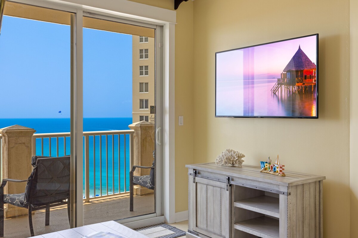 Immerse yourself in luxury within this exquisitely appointed two-bedroom, two-bathroom condominium that offers stunning views of the World's Most Beautiful Beaches. Enjoy the spacious floor plan and vibrant decor, creating a welcoming ambiance for up to 6 individuals with all the comforts of home. The refined yet relaxed atmosphere instantly puts you at ease from the moment you enter. Master bedroom offers a king bed. Bathroom connected that offers a tub & a walk in shower. Bedroom two offers a queen bed, with a connecting bath that offers a shower/tub combo. In the hallway you will find the twin/twin bunk beds. The bunk beds are meant for children only. Please note this unit offers a gulf view but is not gulf front. The fully equipped kitchen boasts elegant granite countertops and modern stainless-steel appliances, complemented by a dining area featuring a generously sized table and chairs. Unwind in the living room, whether you're enjoying a movie on the wall-mounted flat screen or capturing the breathtaking sunset after an extraordinary day on Panama City Beach. This condo strikes the perfect balance between room size and value, making it an ideal choice for families. Indulge in the unparalleled view of the Gulf of Mexico from the private balcony, where you can relax and take in the awe-inspiring panoramic scenery. Please note prior to booking there is a 25-age requirement to book this condo. Person who books must be 25 at the time of booking & present during the entire stay. Please also, note everyone in the party must be 25 or older unless under 18 & accompanied by somebody 25 or older. This is strictly enforced. We do not allow 3rd party bookings. Failure to meet minimum age requirement of all guests upon check in guests will be evicted and will not be refunded for the stay. After booking a signed rental agreement & a copy of the person driver's license who booked will be requested. Rental Agreement & Driver's license must be sent back within 48 hours of booking to secure your reservation. If no signed rental agreement & driver's license is sent back within 48 hours guests forfeit reservation & will not be refunded. This property does not allow Spring Breakers under 25 years of age. Absolutely no exceptions. No more than 2 vehicles are allowed. No exceptions. Per the resort only two vehicles allowed per condo. Resort Fees & Parking: Grand Panama will collect a resort fee of $55.00 as well as a $50.00 pet fee (per pet) which includes a parking pass for 1 vehicle, wristbands, and dog sleeves. The new pet fee will be $50 for a 1-7 night stay and $5 for each additional night. A second vehicle parking pass may be purchased for an additional $35.00. Motorcycle passes can be purchased for $55.00. Two vehicle limit per unit. Parking passes, along with wristbands, can be obtained at the parking registration desk in the lobby of Tower 2. Parking passes must be displayed with the info visible in the front windshield of the vehicle. Towing is strictly enforced for vehicles that are not registered, or their parking pass is not displayed properly. Please note trailers, scooters, micro cars, and golf carts are not allowed to be parked on the property. Replacement cost for any lost parking tag will be $30. Replacement cost for a lost wristband will be $10.00. In the case where a guest/renter arrives after 11:00 p.m., a short-term parking authorization will be issued by security allowing the person to park. The appropriate parking pass must be obtained at the registration desk in the lobby and displayed in the vehicle no later than noon the following day. Any renter that violates the parking rules will be subject to booting and/or towing and a $150 fine. This unit is dog friendly. This unit allows 2 dogs under 25 pounds. The resort only allows dogs under 25 pounds. A $250.00 nonrefundable pet fee will be requested after booking. No cats or puppies absolutely no exceptions. Dogs are not allowed on the furniture or any of our beds. All dogs must be picked up after. If the dogs are left inside of the unit alone both dogs must be crated. If an emergency or maintenance issue were to arise our team will need to be able to access the unit safely. Absolutely no exceptions. Failure to abide by these rules will result in additional charges. Pet owners desiring to bring a dog on property must complete & submit a form & obtain approval prior to bringing their pet. Failing to do so is subject to denial of the animal being allowed on the property. A pet tag will be given & must be displayed on the animal while on the property. Pets on the list of dangerous breeds are band which includes Pure or mixed breed Akita; American Pit Bull Terrier; American Staffordshire Terrier; Catahoula Leopard; Chow; Doberman Pinscher; German Shepherd; Husky; Malamute; Pit Bull; Presa Canario; Rottweiler; Staffordshire Bull Terrier; Wolf. Guests must provide the completed animal registration form, proof of vaccinations, applicable documentation for emotional dogs/cats or service to receive a pet tag at front desk located in the Grand Panama Tower 2 Lobby prior to bringing the pet on premises. Service animals must meet the requirements of a legally recognized disability under the Americans with Disability Act. Emotional support animals owners must provide a letter, dated before check-in, from his/her physician, psychiatrist, social worker, or another mental health professional who is the registered health care provide stating that the person has a disability and that the animal alleviates one or more of the identified symptoms or effects of the person's disability. Any service animal or emotional support animal must be in compliance with the resort's animal registration requirements. Beach Chair and Umbrella Rentals – Beach chairs and umbrellas can be rented at the beach kiosk in front of the resort. Contact the beach service team for advance rentals. No smoking if any signs of smoking are documented, the renter agrees to pay a $300