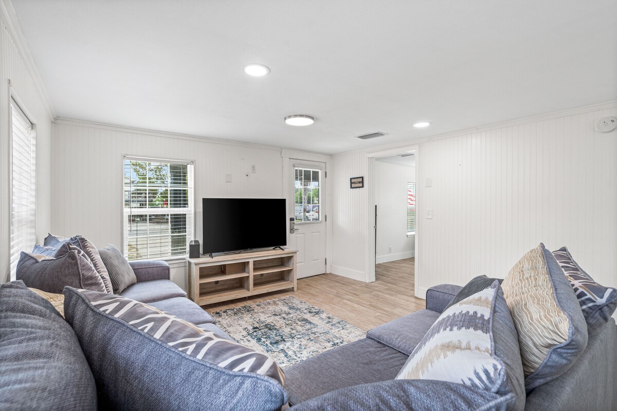 Snowbird Friendly! Monthly Rates Available! Welcome to the Seahorse Cottage in Panama City Beach, Florida. This charming two-bedroom, one-bathroom house offers a fantastic opportunity to experience the best of beach living. Located just two blocks away from the pristine sands of the Gulf Coast, this property is perfectly situated for those who love spending time by the water. Whether you enjoy swimming, sunbathing, or simply taking long walks along the shore, you'll find everything you need right here. The house itself is filled with character and has been thoughtfully designed to provide a comfortable and inviting living space. With 800 square feet of interior space, there's plenty of room for everyone to spread out and relax. The living area features a cozy sofa and a smart TV, perfect for movie nights or catching up on your favorite shows. You'll also find high-speed wifi throughout the house, so staying connected is never an issue. The kitchen is fully equipped with everything you need to prepare delicious meals at home, including a grill outside for summer barbecues. The dining area at the bar seats four people comfortably and offers a great spot to enjoy meals together as a family or with friends. Both bedrooms are bright and airy, with plenty of space for all your belongings. The master bedroom features a comfortable queen-size bed, while the second bedroom has two twin beds that are perfect for kids or guests. The bathroom features a walk-in shower. One of the highlights of this property is the outdoor space. There's a fire pit where you can gather around with friends and family on cooler evenings, roasting marshmallows and sharing stories late into the night. And when you want to soak up the sunshine during the day, there's plenty of outdoor seating available as well. Parking will never be an issue either, as this property comes with two dedicated parking spaces right outside the house. In summary, if you're looking for a cozy and comfortable beach house in Panama City Beach, this property ticks all the boxes. With its prime location just steps from the sand, fantastic amenities, and inviting living spaces, it's the perfect place to call home for a relaxing beach vacation. Book your stay today and start making memories that will last a lifetime. Pet Friendly up to 2 dogs for $250 additional fee Security systems/cameras: For the security of our guests and the safety of our home, we have external security cameras. Our prices include all fees. No hidden fees.