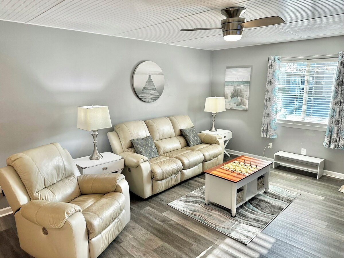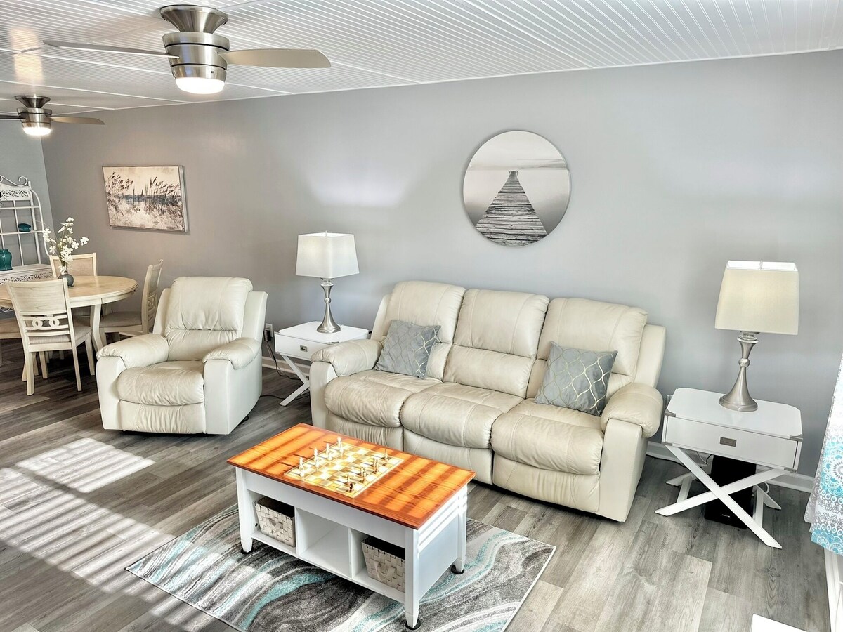 🌴 Welcome to “Surfs You Right!” – Ground-Level Townhome in Gulf Highlands | Walk to Beach Discover the perfect blend of comfort, fun, and convenience at Surfs You Right! — a beautifully renovated 2-bedroom, 1.5-bath townhouse just a 5-minute stroll from Panama City Beach’s sugar-white sand. Tucked inside the secure, family-friendly Gulf Highlands Beach Resort, this bright coastal getaway sleeps up to 6 guests and is pet-friendly, making it the ideal escape for families and couples alike. 🏖️ Your Beach Retreat Spacious Living Area: Coastal décor and an open layout make it easy to relax after a day at the beach. Fully Equipped Kitchen: Cook with ease using stainless appliances, cookware, and a breakfast bar. Bedrooms: • King bed in the master bedroom • Queen bed in the second bedroom • Bonus loft with twin bunk beds — perfect for kids! • Bathrooms: One full bath upstairs and a convenient half bath downstairs. • Private Patio & Florida Room: Enjoy outdoor dining or unwind in the screened-in space with a cool coastal breeze. • Ground-Level Entry & Free Parking: Two private, numbered spaces right outside your door — no stairs, no elevators, no wristband fees! 🌴 Resort Perks Located in the sought-after Gulf Highlands Beach Resort, guests enjoy access to: • Private beach access with clubhouse & pool deck • 11 swimming pools (5 heated) including beachfront pool • 4 tennis courts & shuffleboard • 2-acre mini-golf course • On-site fitness center & security • Gated community with reserved parking 🐾 Pet Friendly Bring your furry friend along! • 1 dog – $75 | 2 dogs – $150 (non-refundable + tax) • Must be crate trained & cleaned up after • No unattended pets outside or in the unit 📋 Rental Rules & Info • Must be 25+ to book (rental agreement required) | Maximum 6 guests • No street-legal golf carts or scooters (on-site golf cart rentals available) • No smoking inside 🧳 What to Bring We provide a starter supply of essentials to get you through your first day — including toilet paper, paper towels, hand soap, laundry pods, dish pods, and trash bags. For the rest of your stay, please plan to bring or pick up additional items, such as: ☀️ extra paper products and trash bags ☀️ toiletries and personal care items ☀️ condiments, spices, and cooking oil ☀️ dish soap, laundry detergent, coffee & filters ☀️ beach towels, sunscreen, umbrella, and beach toys Some items may already be in the home from previous guests, but we recommend coming prepared or making your trip to the store AFTER checking in so you can check out what you really need. Our prices include all fees. No hidden fees.