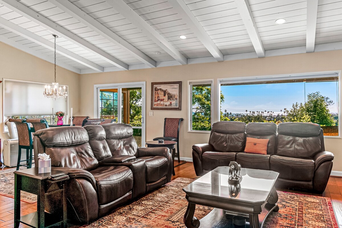 Peaceful Terrace, Long Term Rental Our calendar is updated in real-time & our nightly rates are accurately displayed. Simply enter your desired dates and click 'Book Now!' Dazzling ocean views will fill your vision daily when you book a stay a this adorable Santa Barbara home! Nestled in a prime location, the home is located minutes away from the Santa Barbara Zoo, Santa Barbara Museum of Natural History, Leadbetter Beach, Shoreline Park, Butterfly Beach, Santa Barbara Bowl, and the Santa Barbara Golf Club. Exploring the California Coast is made easy with your central location. When a break from the sun is warranted, the home's comfortable furnishings, high ceilings, and modern appliances will welcome you in with open arms. The heart of the home, the stone-lined wood-burning fireplace effortlessly warms the living room. When you aren't hanging out here, the plant-lined terrace boasts ample outdoor seating and unforgettable views. When you aren't indulging in the city's food scene, play chef in the full kitchen. Displaying stainless steel appliances, granite countertops, and a coffee bar - this space makes cooking a breeze! When it's time to eat, gather at the formal dining table under the radiant glow of the chandelier. Both of the home's bedrooms are bright and spacious. No matter the temperature outside, you'll love having the option to click on the partial air-conditioning. A private washer/dryer ties together the stellar list of interior amenities. Things to Know Check-in time: 4:00 PM. Check-out time: 10:00 AM. All guests shall abide by Vacasa’s good neighbor policy and shall not engage in illegal activity. Quiet hours are from 10:00 PM to 8:00 AM. No smoking is permitted anywhere on the premises. There is a separate unit downstairs where renters live. If you are bringing a dog on your trip, the pet fee is already included in your quote when selecting ‘Yes’ to pets. If you would like to add more dogs, please contact us. Parking notes: There is free parking available for 2 vehicles. Security camera details: Ring Camera Damage waiver: The total cost of your reservation for this Property includes a nightly damage waiver fee, plus tax if applicable (the “Damage Waiver”). (A discount may be applied for stays of 28 nights or longer, if permitted.) The Damage Waiver covers you for up to $3,000 of accidental damage to the Property or its contents (such as furniture, fixtures, and appliances) as long as you report the incident to the host prior to checking out. The Damage Waiver fee eliminates the need for a traditional security deposit. More information can be downloaded from the \ on the checkout page. Due to local laws or HOA requirements, guests must be at least 25 years of age to book. Guests under 25 must be accompanied by a parent or legal guardian for the duration of the reservation. Our prices include all fees. No hidden fees.