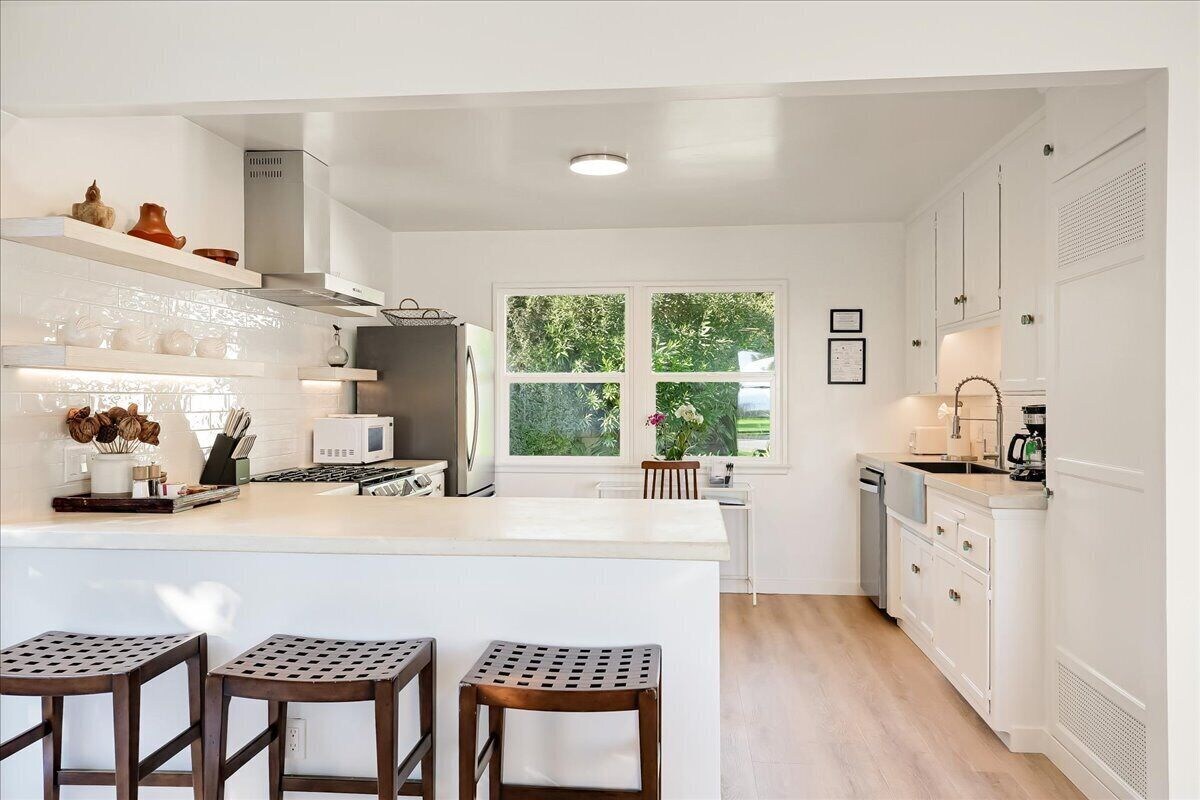 Discover the ultimate waterfront retreat at this recently remodeled property, Shoreline Cottage. Nestled in one of the Mesa's most awe-inspiring locations, this 3 bedroom, 2 full bathroom residence boasts unrivaled vistas of the ocean and islands. Awaken to breathtaking sunrises at your doorstep or gaze out at the ocean from the living room. Just a brief stroll to Leadbetter Beach, this home is as close as you can get to the waterfront and be adjacent to famed, Shoreline Park. Surrounded by a charming waterfront neighborhood envied by most locals, this cottage is an ideal haven for beach enthusiasts and outdoor adventurers. Immerse yourself in the coastal lifestyle with leisurely lunches at Shoreline Cafe, Brophy Bros or enjoy a bike ride to downtown. With its open concept floorplan, updated living room, kitchen and bathrooms, as well as outdoor patio complete with seating for 6 and fire pit, this cottage caters to those who appreciate both panoramic views and the ocean as the backdrop. Providing ample space both indoor and outdoor for activities and perfect relaxation, Shoreline Cottage is sure to please all guests that wish to be centrally located with ocean views. Cozy up to the fire pit, grill some local fish on the BBQ or take a walk along Shoreline Park, right across the street...this prime Mesa location ensures easy access to the beach, restaurants, hiking trails and an organic grocery store nearby. Whether you spend a day at the beach or relax with a new book, this property embodies the Santa Barbara local experience. Tastefully furnished, Shoreline Cottage captures the essence of our local culture and is perfectly situated for those looking to immerse themselves in one of the most desired areas of Santa Barbara. Marvel at ocean views during the day, watch the sailboats go by and return in the evening to stargaze at night all from the living room and backyard. Ready to explore? Head down to these great places while you are here: the harbor, wharf, shops, restaurants and downtown...all a short drive or bike ride away! All linens, cookware and supplies are provided to all of our guests, all of the time. We care about your stay and hope to have you as our guest very soon! We also provide a pack and play portable crib and high chair for guests traveling with infants and small children. One non-shedding, potty trained dog is also welcome at this home, with additional pet fee however pets can never be left unattended in or outside the home. Guests acknowledge that some homes provide central A/C while others provide portable rolling high efficiency A/C units. Please inquire first. This property may or may not have surveillance cameras installed in common areas for security purposes only. Any such cameras (if applicable) are strictly limited to public common areas and are expressly prohibited in any location where a reasonable expectation of privacy exists, in accordance with California Penal Code 647(j). Good Neighbor Policy and city regulations require the use of decibel monitoring devices when located in residential areas. These are not listening or recording devices. How are we different at HALLER COASTAL HOMES? We are a locally owned and operated family run company for over 15 years here in Santa Barbara. We care about your stay and are available 24/7 in the event of emergency or other urgent matter. All our properties are registered with the city and remit the city taxes, a legal requirement to operate. We love our guests and strive to provide exceptional vacations and lifelong memories...without numerous added fees! HALLER COASTAL HOMES / PROPERTY OWNER POLICIES & HOUSE RULES: * Guests must complete 2 easy steps within 24 hours of booking - Digitally signed rental agreement and Secure Guest Verification * Minimum age to rent is 25 years old, per homeowners insurance policy * Arrival and Departure Times are shown above. * No smoking / no vaping policy - at no time in or on the premises. * Strict no party, social gatherings policy - only guests listed on the rental agreement are permitted on premises * Good Neighbor Policy in effect (quiet times are between 10:00pm and 8:00am) which may require decibel meters in outdoor areas in residential zones. These are not listening devices. * Cancellation Policy - listed above and shown prior to booking. We highly recommend purchasing trip insurance! * Rates change daily - until booking is confirmed * Property owner and/or Haller Coastal Homes reserves the right to deny any reservation * One non-shedding, potty trained dog is also welcome at this home, with additional pet fee. Our prices include all fees. No hidden fees.