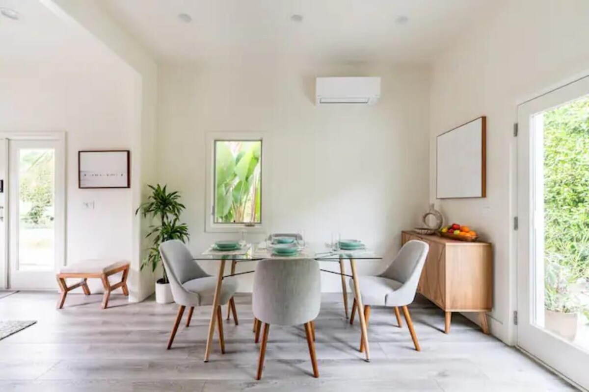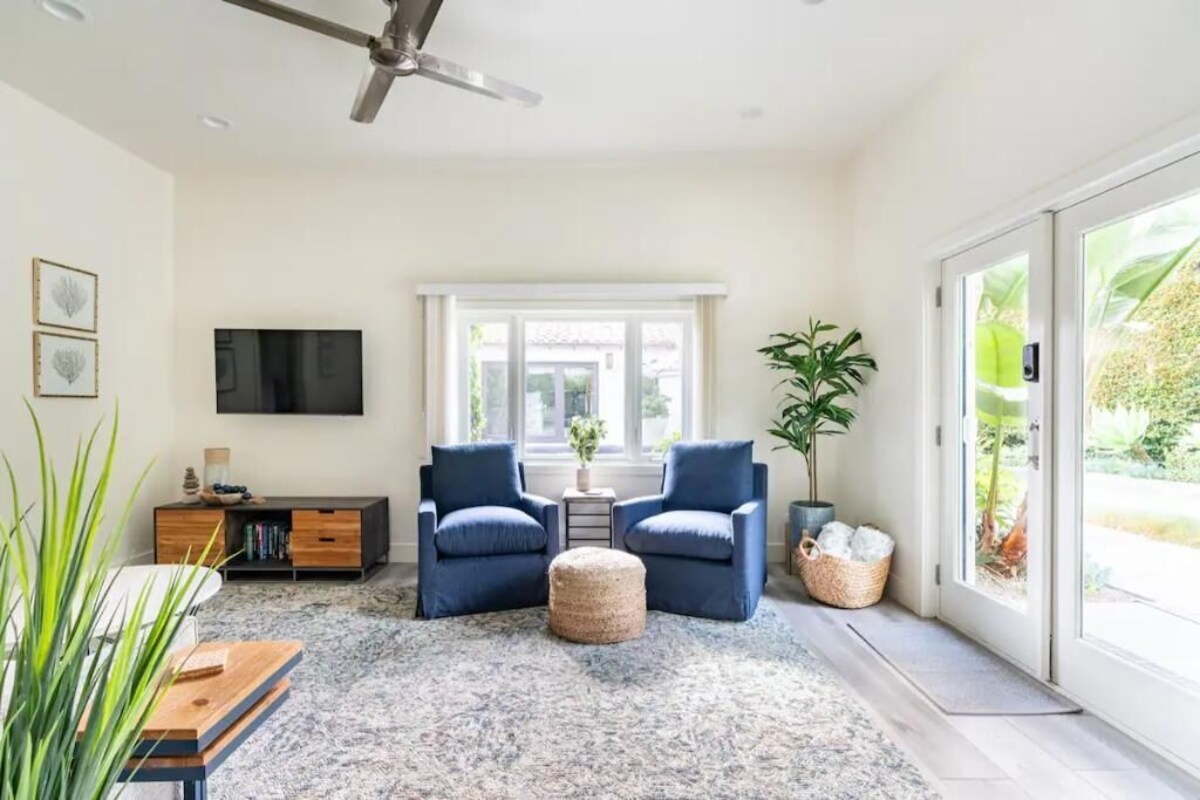 Welcome to Casita Manzanita! This contemporary guest house captures a resort-like ambiance that’s perfect for your next getaway, business trip, staycation, or home base while exploring everything the town has to offer. Centrally located in the heart of SB, you’ll be just a few blocks from popular State Street, amazing restaurants, cafes, bars, much more. Unbeatable location: Beaches, Shopping, Endless Hiking/Biking Trails/Paths, Breweries/Wineries, SB Harbor & Wharf, SB Mission & more nearby. THE SPACE Bright and airy with high ceilings and a private keyless entry, this Spanish-style detached guest house was recently remodeled with amenities that will make you feel right at home. Spacious queen-size bed with new premium bedding that will accommodate up to two people comfortably. Or the queen-size memory foam sofa bed makes a comfy optional 2nd bed. Washer/Dryer unit in bedroom closet. You'll have access to high-speed internet and SmartTV with all major streaming services. The full-size kitchen is equipped with full-size appliances and all the necessities, allowing you the space to make anything from cocktails before your dinner downtown or for nights in cooking your favorite meal. Enjoy the breathtaking outdoor space: sun-soaked pool with sunbathing shelf, cozy lounge area with firepit, putting green and bocce ball court. And of course, you may have a few friendly greetings from our dogs, Darby & JJ. DETAILS -Reliable High Speed Internet -Close to Downtown State St. and less than 3 miles from the beach. -Smart TV in Living Room -Fully Equipped Kitchen -Quiet and Safe Residential Location -Heating and A/C unit with controllable thermostat. Ceiling fans in living room & bedroom. -Washer/Dryer -Outdoor patio features pool, fire pit, lounge chairs -Putting green and bocce ball court -Pets are welcome with a nonrefundable $100 pet fee (per pet) GUEST ACCESS Guest house located at the back of property, accessed via the driveway with an automatic gate (we will provide the code). There is a keypad located at the front door for a simple key-less entry. Entry code will be provided to you prior to arrival. The code is changed after every guest. You will have private access to the entire guest house and shared access to the pool and back patio/firepit OTHER THINGS TO NOTE: ENTRY: There is a keypad located at the front door for a simple key-less entry. Entry code will be provided to you prior to arrival. The code is changed after every guest. PARKING: Ample street parking always available INTERNET: The house has reliable high speed internet throughout the entire space. You can access your Hulu, Amazon Prime, Netflix, etc. accounts with the Smart TV BEDROOM: There is 1 bedroom with queen bed and the living room sofa folds out to a queen-size memory foam bed. We allow 2 guests. BATHROOM: Private bathroom with walk-in shower and large vanity with ample storage space. We provide hairdryer, towels, hand soap, toilet paper, shampoo/conditioner. KITCHEN: Fully equipped with a refrigerator, stove, oven, microwave, dishwasher, coffee maker, and all basic kitchen essentials: pots/pans, plates, cups, utensils, spices/oil, coffee, dish towels, hand soap, paper towels, dishwasher soap, & trash can liners. POOL: Pool is not gated and no lifeguard on duty. Guests assume all risks of use. PET FRIENDLY: This property is dog-friendly. We allow 1 dog, as long as they are friendly and well-behaved (Sorry no cats) and the below Pet Agreement is signed. There is an additional, non-refundable charge of $100 per dog. This helps us ensure we can properly clean the home for future guests who may have allergies. Please message us prior to booking if you plan to bring your dog with you. If we do approve your dog, we will send you the Pet Agreement for signature. Once you sign the agreement and book we will request the additional pet fee from you. If we discover that there is an undisclosed pet in the home, you will be charged an additional fee. PET AGREEMENT: -The dog must be healthy and up to date (required every 3 years) on rabies and DHPP (vaccines for Distemper, Adenovirus (Hepatitis), Parainfluenza and Parvovirus). -The dog must be flea and tick free and current on prevention treatment. -Guests are responsible for cleaning up any and all dog refuse, as well as cleaning dog before he/she comes indoors. Large towels are provided or Guests may bring their own. Please do not use bath towels. -Dog waste bags are provided. Please bag and dispose of waste in the can behind the guest house. -Guests will use either the Casita Manzanita backyard or the road outside to walk the dog to urinate and defecate. There is also MacKenzie Park off-leash dog park a few blocks from the house. Guests will not let the dog relieve itself in the neighbors’ yards. -A dog bed is provided. The dog is not allowed on the guest bed, chairs or couch at any time. This helps keep the guest house as clean as possible for future guests. Evidence any pet soiling/damage on bed or bedding may incur extra cleaning or replacement fees. -As responsible pet owners, Guests agree to accept full and complete responsibility for any personal injury or property damage caused by the dog or suffered by any person during Guests’ stay at Casita Manzanita. -Any guest staying for more than 13 days will be required to use Casita Manzanita’s cleaning service. This service must be used once every two weeks at a charge of $150 per cleaning. -Guests understand that Casita Manzanita will charge accordingly for the repair of any damages, additional cleaning requirements, or flea treatment caused by dog’s presence or behavior. Our prices include all fees. No hidden fees.