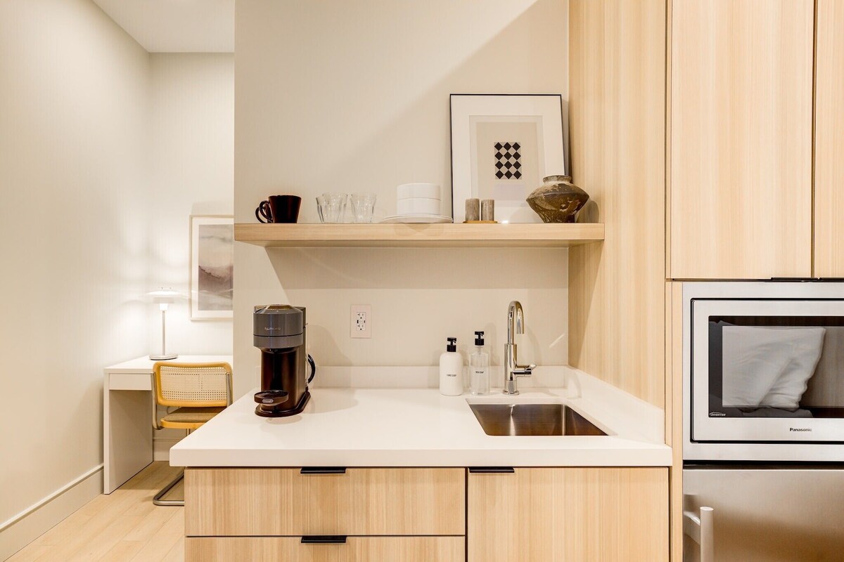 ## Space Immaculately renovated downstairs studio with its own exterior access in a multi-unit building only two blocks from downtown Santa Barbara & State Street. The original Spanish architecture has been preserved while offering modern upgrades & conveniences. Enjoy the stunning rooftop terrace with breathtaking mountain views, open for guests between 8 am and 10 pm. This 282 sqft queen-bed unit is ideal for 2 guests and has a flat-screen Sony Smart TV with streaming, casting, or Airplay features and a Samsung split heating/AC system for ultimate comfort. A private en-suite bath with a shower/bathtub and a kitchenette with Nespresso Vertuo coffee maker, microwave & mini-fridge complete this stay in Santa Barbara. Pets are welcome with a $75 fee per stay. Studio units include remote controlled skylights to ensure full room darkness. *NO PARTIES: We have a strict 'No Party' policy-parties or events are not allowed. Quiet hours are enforced from 10 pm to 8 am.* *PETS: ONLY 1 PET ALLOWED (N/A to service animals, applicable to ESA's). A pet fee will apply; pets can not be left unattended in your room. Please add your pet to the reservation, or disclose your pet to our hospitality team after booking. Pets will enjoy fresh water from the SIBAYS pet fountain with filtration system, located next to the ice machine in the covered garage. *LIVING WAGE PLEDGE: Our cleaning fee includes cleaning the unit and outdoor space, professionally. As part of The Living Wage Pledge, we are committed to paying our cleaners fairly. A living wage is a minimum income necessary for someone to meet their basic needs and participate in their community.* *SUSTAINABILITY: To support sustainable tourism and reduce our carbon footprint, we provide Public Goods toiletries and green cleaning products.* ## Access This is a self-serve stay. We provide contactless self-check-in. The doors are all equipped with smart locks, and a unique code matching the last four digits of your phone number on file will be generated and sent to you on check-in day via SMS. We do not provide daily cleaning, however we are happy to refresh rooms for stays longer than 5 days, upon appointment. Please reach out to our hospitality team to switch out towels or request extra supplies. Parking and EV charging (shared amenities): Casa De La Vina offers free guest parking in its private parking lot and additional parking spots in the covered garage on the right side of the building. One parking spot per unit on a first-come, first-served basis. Free street parking is available if the lots are full. 5 EV chargers are available for guests to use during their stay; logging into the Tesla pay app is needed to charge ($0.30/kW). Casa De La Vina staff does not monitor parking spot use, and we are unable to request guests to move their vehicles. ## Interaction This is a self-serve stay. We are off-site hosts; there is no front desk or office, and we provide contactless self-check-in. We have a dedicated hospitality phone line in case of emergencies (24/7) and our team is available on call, text, or chat during 5 am - 1 am to help assist you during your stay! ## Neighborhood Located within walking distance to nearly all restaurants and retail stores on the State Street corridor, 20+ tasting rooms, 10+ breweries, and countless choices for eating or drinking make this an ideal location for anything that may bring you to the world-renowned Santa Barbara Coast. ## Transit Santa Barbara Transit Center is five blocks away. ## Notes For security, there are cameras on the exterior of the building. This complex does not have live TV service. Instead, all TVs have apps (Netflix, Hulu, YouTube TV, and Amazon Video) for your streaming pleasure. The property has gigabit wifi, and the unit has a private network for guests to cast directly onto the TV. Cancellation policy: Full refunds are available up to 24 hours in advance. A 4% credit card charge is assessed for cancellations made through direct sites and VRBO. Our prices include all fees. No hidden fees.