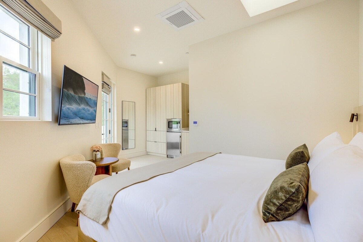 ## Space Immaculately renovated downstairs studio with its own exterior access in a multi-unit building only two blocks from downtown Santa Barbara & State Street. The original Spanish architecture has been preserved while offering modern upgrades & conveniences. Enjoy the stunning communal rooftop terrace with breathtaking mountain views, open for guests between 8 am and 10 pm. This 279 sqft king-bed unit is ideal for 2 guests and has a 55\ No Party s). A pet fee will apply; pets can not be left unattended in your room. Please add your pet to the reservation, or disclose your pet to our hospitality team after booking. Pets will enjoy fresh water from the SIBAYS pet fountain with filtration system, located next to the ice machine in the covered garage. *LIVING WAGE PLEDGE: Our cleaning fee includes cleaning the unit and outdoor space, professionally. As part of The Living Wage Pledge, we are committed to paying our cleaners fairly. A living wage is a minimum income necessary for someone to meet their basic needs and participate in their community.* *SUSTAINABILITY: To support sustainable tourism and reduce our carbon footprint, we provide Public Goods toiletries and green cleaning products.* * BABY / CHILD AMENITIES: pack n ,