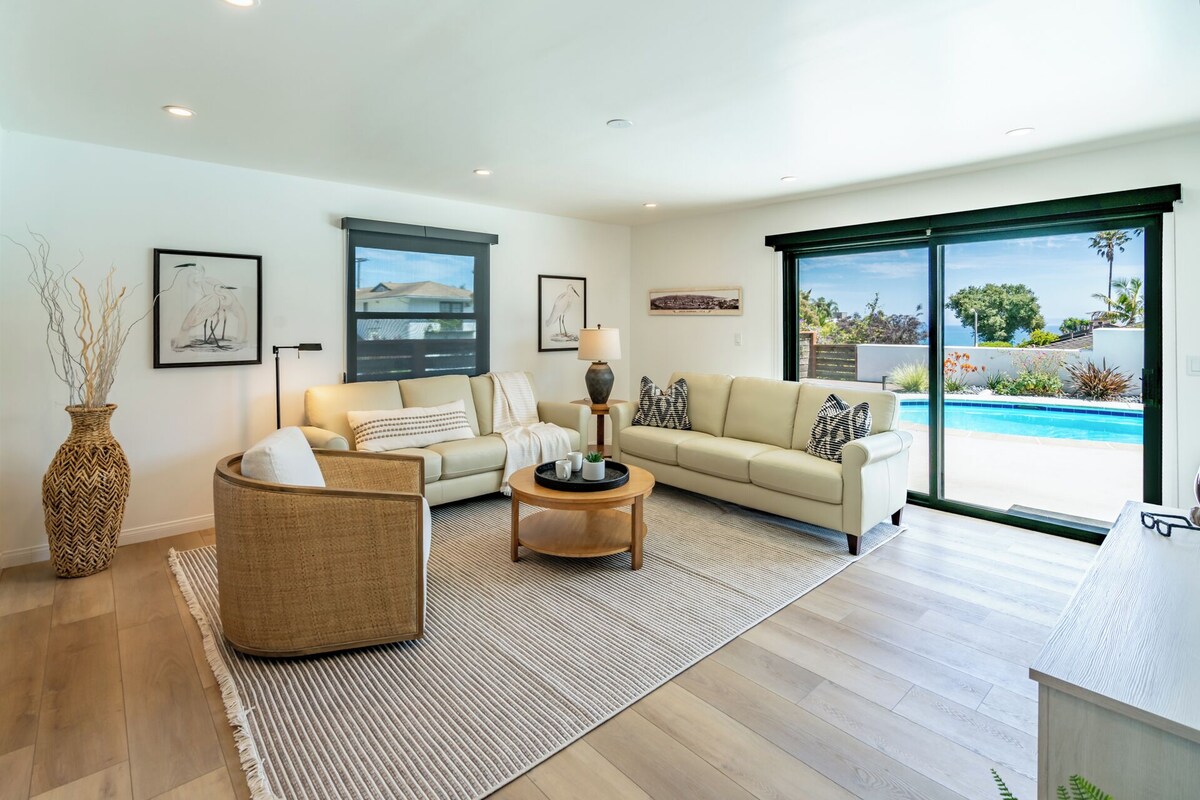 3 BEDROOMS | 2 BATHROOMS | 6 GUESTS Just steps away from the salty sea breeze of Shoreline drive, this spacious and renovated home from Paradise Retreats is perfect for those looking to live it up outdoors while enjoying the property's beautiful interiors as well. Start your morning with a run along the green grass with ocean views at Shoreline Park, savor an afternoon picnic on the grass, or take a quick walk down to Shoreline Beach for a refreshing dip in the Pacific. Enjoy all of the amenities the Mesa has to offer including excellent tapas and cocktails at Alcazar, an ice cream treat at Sweetie's, or a healthy lunch to-go from the bountiful local grocer, Lazy Acres. For little errands, CVS, the post office, and artisanal coffee shop, Lighthouse couldn't be easier. Abundant natural wonders and tasty food and beverage options make this spot the ultimate vacation home. With three bedrooms and two bathrooms, this remodeled property has everything a family or friend group could need to thrive on the Mesa. A luxurious pool perfectly maintained by Paradise Retreats makes the charming backyard a perfect place for entertaining. Complete with a grill, a dining table, and lots of cozy outdoor nooks, it's the ideal setting to enjoy a glass of wine or lunch date with friends. Big bright windows allow the sunshine to pour in and further illuminate the clean white aesthetic of the living room and kitchen. Modern fixtures and cool hardwood floors give this airy home an added freshness, and make it a tranquil post-beach oasis of relaxation. HIGHLIGHTS: - Ocean Views - Pool - Hardwood Floors - Outdoor Grill POLICIES: - Minimum Age of Primary Guest: 30 years or older. - Quiet Hours: 9:00pm-9:00am. Please respect our neighbors. - No Smoking on Property. - Pet Policy: Call us! Considered w/additional fees. - No Party Rentals or Hosted Events. - Check-in: 3:00pm or later. - Check-out: 10:00am or earlier. - Manager/Homeowner Reserves the Right to Deny Reservation. - Until Confirmed, Rates are Subject to Change. PLEASE NOTE: We require an eSigned short-term rental agreement before finalizing your reservation. PET POLICY: Pets may be considered at this home but require written authorization and additional fees. Our prices include all fees. No hidden fees.