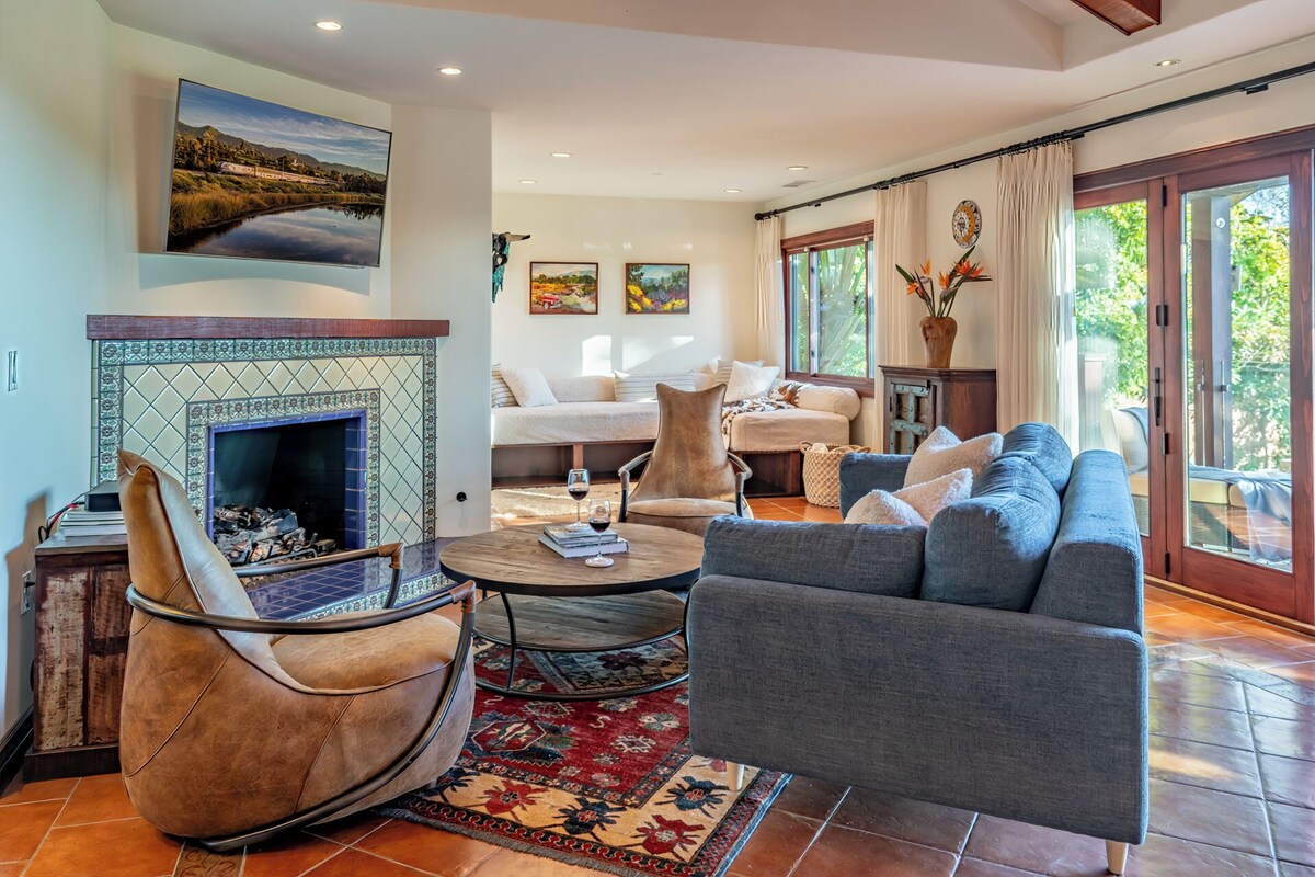 2 BEDROOMS | 2.5 BATHROOMS | 4 GUESTS Nestled on the Montecito Country Club golf course, this beautifully designed Paradise Retreats two bedroom, two and a half bathroom home offers a serene retreat with stunning golf course and ocean views. The open-concept living space is flooded with natural light and has an indoor outdoor feel, showcasing expansive windows that frame the picturesque surroundings. A well-equipped kitchen, spacious living area, and a cozy fireplace create an ideal atmosphere for both relaxation and entertaining. Large tri-fold glass doors off the living room lead to the outdoor deck and patio, perfect for enjoying sunset views over the green fairways and sparkling coastline. The primary bedroom is a true sanctuary, featuring a luxurious ensuite bathroom, and a balcony where you can unwind while taking in the breathtaking fairway vistas. The second bedroom is generously sized and offers its own ensuite bathroom for added privacy. This home also includes a convenient half bath for guests. Located in a sought-after neighborhood, this property offers the perfect blend of tranquility and proximity to Montecito's shops and fine dining and Santa Barbara's vibrant culture and beautiful beaches. HIGHLIGHTS: - Ocean View and Golf Course View - Outdoor Fire Pit - 2 BBQ's NOTE: Outdoor patio fireplace is non operable. **GUEST AGREES TO ELECTRONICALLY SIGN OUR RESERVATION AGREEMENT within 2 days of booking. (Emailed to Guest upon booking.)** POLICIES: - Minimum Age of Primary Guest: 30 years or older. - Quiet Hours: 9:00pm-9:00am. Please respect our neighbors. - No Smoking on Property. - Pet Policy: Call us! Considered with additional fees and weight restrictions. - No Party Rentals or Hosted Events. - Check-in: 3:00pm or later. - Check-out: 10:00am or earlier. - Manager/Homeowner Reserves the Right to Deny Reservation. - Until Confirmed, Rates are Subject to Change. Pets may be considered at this home but require written authorization and additional fees. Our prices include all fees. No hidden fees.