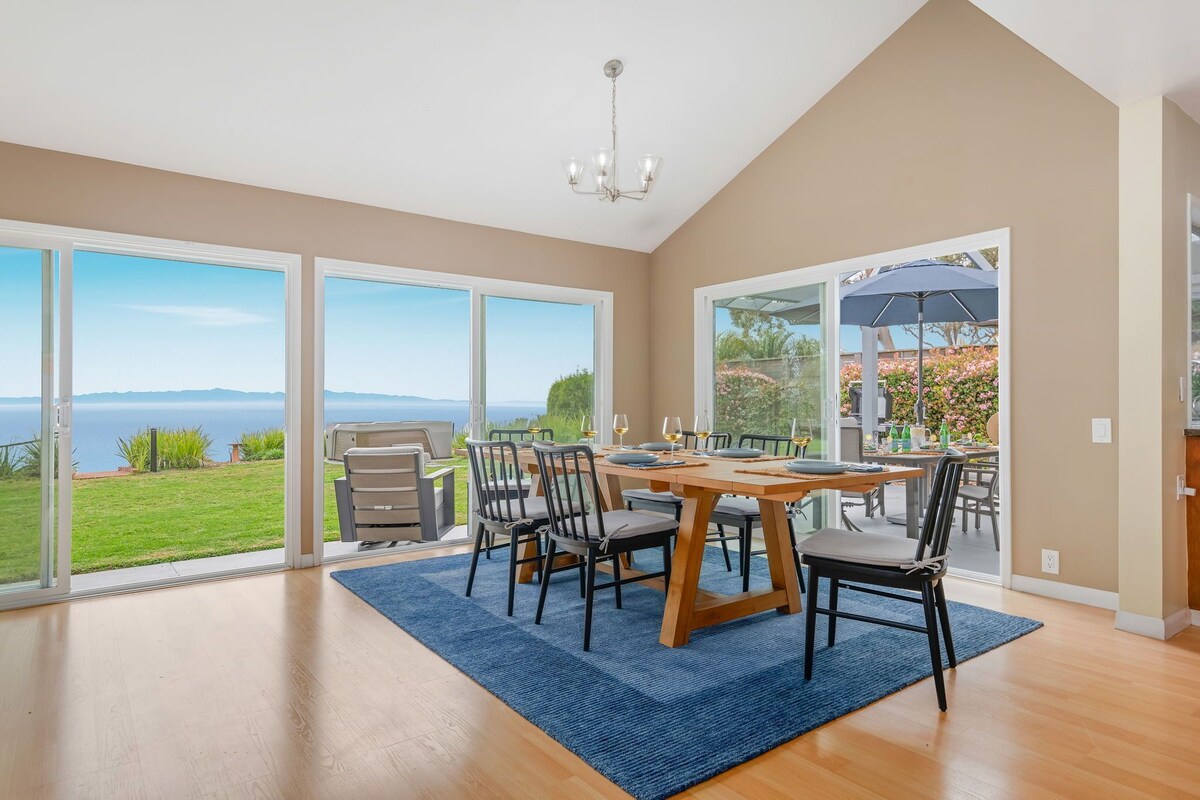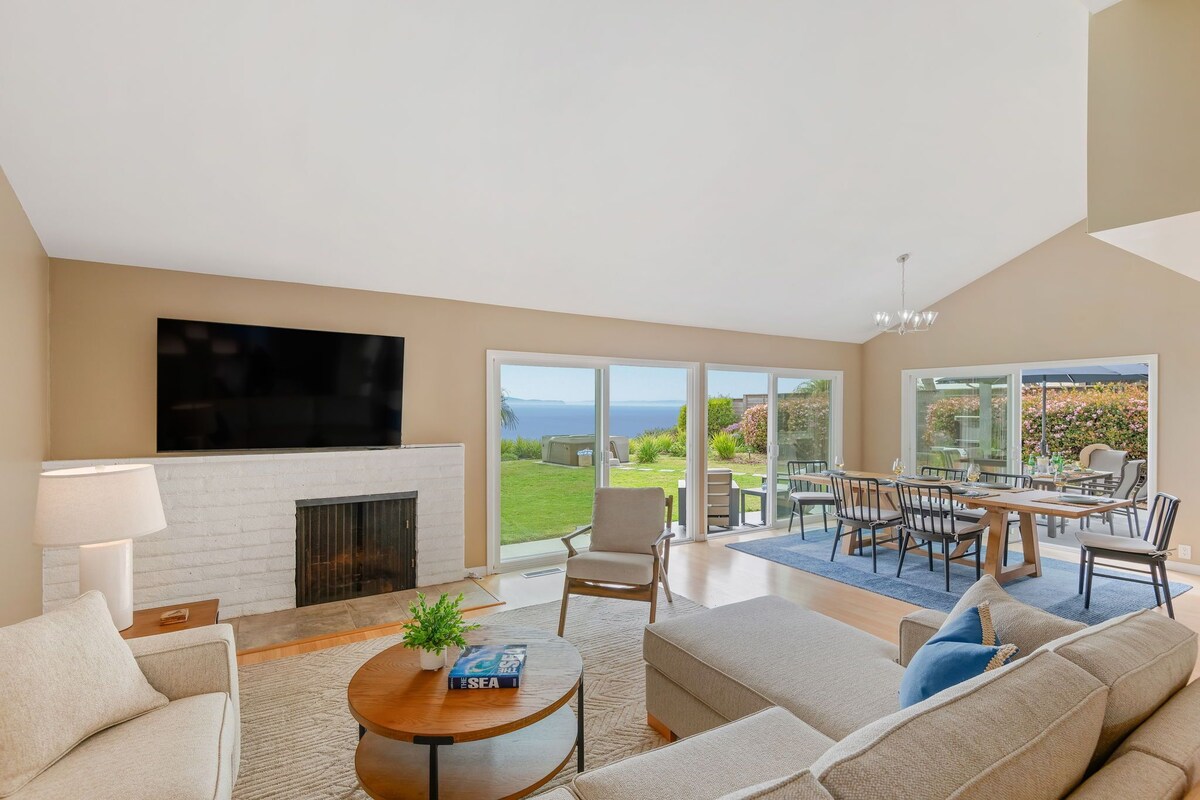 3 BEDROOMS | 2 BATHROOMS | 6 GUESTS Nestled on a scenic oceanfront bluff in the Mesa Shoreline neighborhood, this 3 bedroom, 2 bathroom home, brought to you by Paradise Retreats, offers the perfect blend of comfort and convenience. Just steps from Shoreline Park, the beach, and local favorites like Lazy Acres Market, Corner Tap, Lighthouse Coffee, and plenty of eateries, you'll have everything you need for an effortless getaway. The bright and open layout offers panoramic views of the Pacific Ocean and Channel Islands from almost every room, a signature experience from Paradise Retreats. The outdoor space is a true retreat, featuring a hot tub, dining area, BBQ, and deck with loungers—the ultimate spot to unwind while taking in the ocean air and sights, which often include dolphins and whales! Whether you're strolling to the beach or taking a quick drive to explore downtown or the Funk Zone, this home offers the ultimate location for your Santa Barbara experience. HIGHLIGHTS: - Panoramic Ocean and Island Views - Oceanfront Bluff Location - Hot Tub, Outdoor Dining and Seating - Stroll to Parks, Beach, Dining, Coffee, Shopping PLEASE NOTE: Fireplace is non operable. PET POLICY: Pets may be considered at this home but require written authorization and additional fees. GUEST AGREES TO ELECTRONICALLY SIGN OUR RESERVATION AGREEMENT w/in 2 days of booking (emailed to Guest upon booking). Our prices include all fees. No hidden fees.