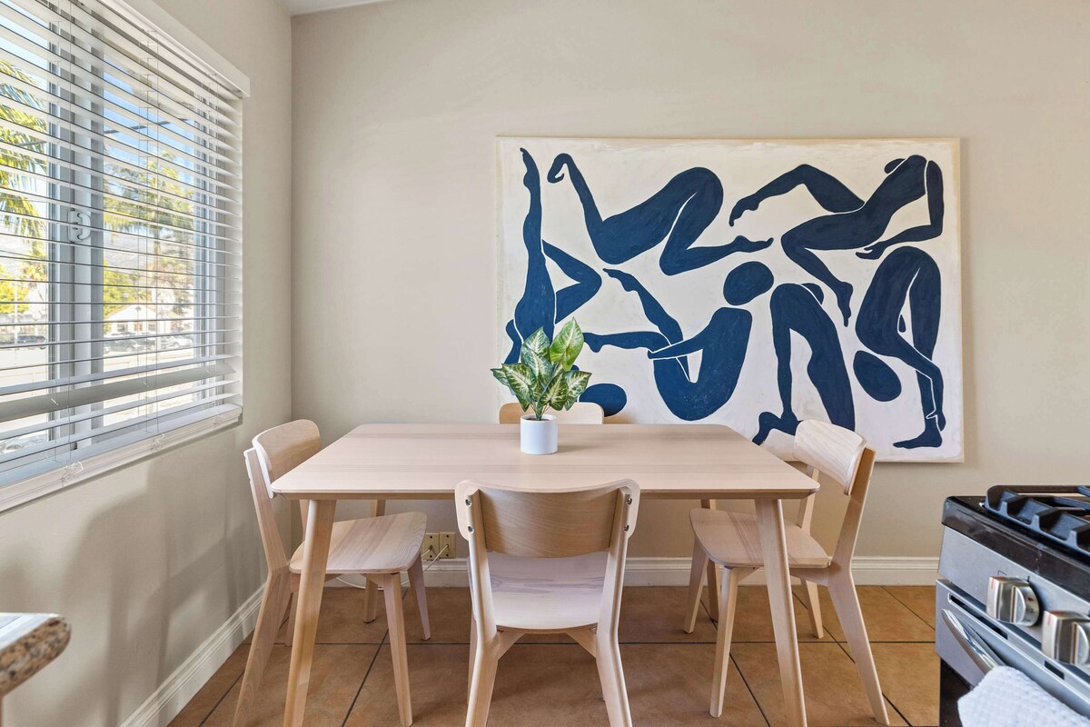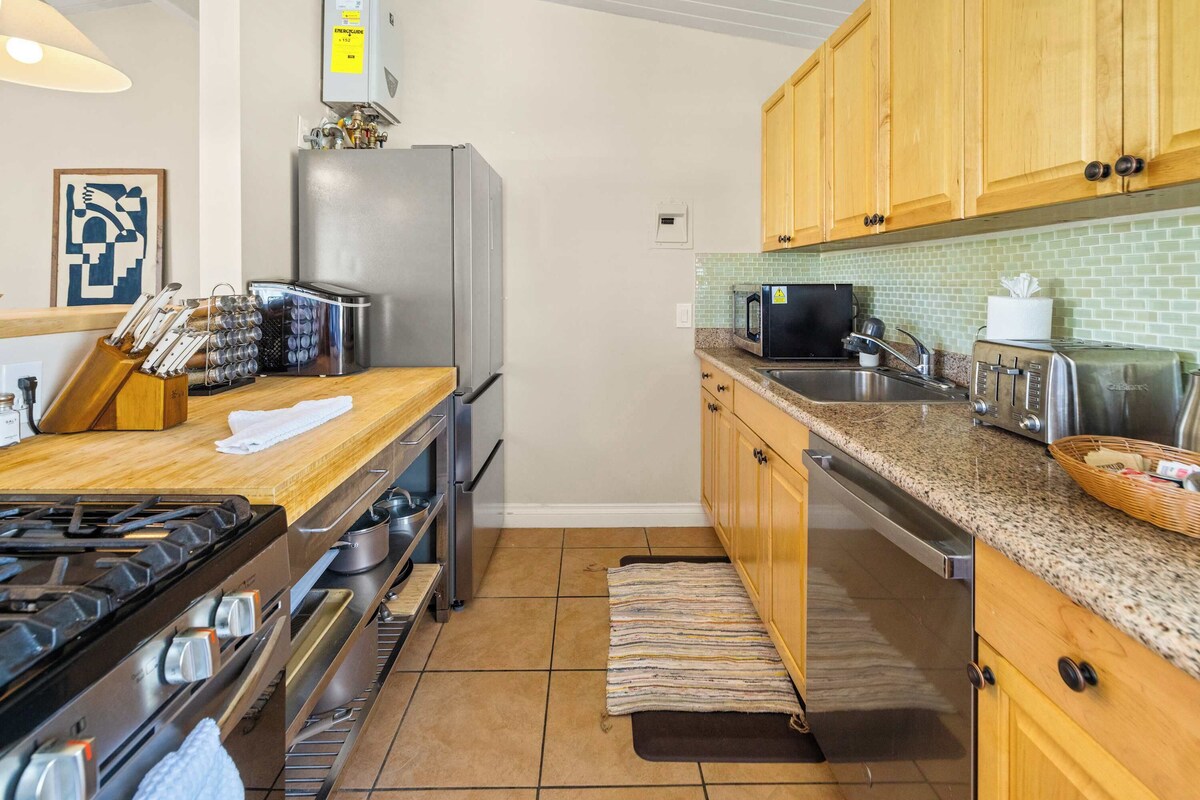 Summary: Welcome to our private 2-bedroom apartment nestled in the picturesque West Beach neighborhood, just a stone's throw away from Santa Barbara’s pristine beaches. With high ceilings and thoughtful amenities, this 2-bedroom unit offers you a truly exceptional stay. Enjoy restful nights on plush Casper California King beds, complemented by Parachute linens and towels. The building’s common areas feature a BBQ, bike storage, and covered, off street parking. The Space: Featuring a state-of-the-art WiFi-6 router and desk, this apartment is an ideal choice for those seeking a comfortable rental well equipped for remote work. Discover the magic of Santa Barbara's beautiful West Beach neighborhood and book your stay with us today! Guest Access: Guests will be able to access their individual apartment as well as the common courtyard and BBQ area, which includes outdoor picnic table, fountain, and overhead string lighting. The Neighborhood: This listing is located in Santa Barbara's West Beach neighborhood. One of the most walkable and desirable areas of Santa Barbara, you are just a few block walk from West Beach, Stearn's Wharf, and right on the edge of the hippest area of Santa Barbara, the Funk Zone. The property is also conveniently located right across from the Train Station, making it extremely convenient for utilizing public transportation. Getting Around: The apartment is centrally located close to downtown and the beach. Our prices include all fees. No hidden fees.